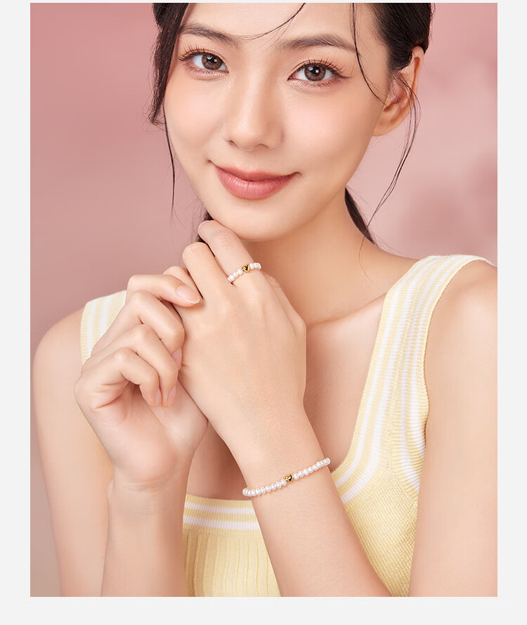 Saturday blessing yellow 18K gold pearl ring for women love gold ring birthday gift X0111071 ring