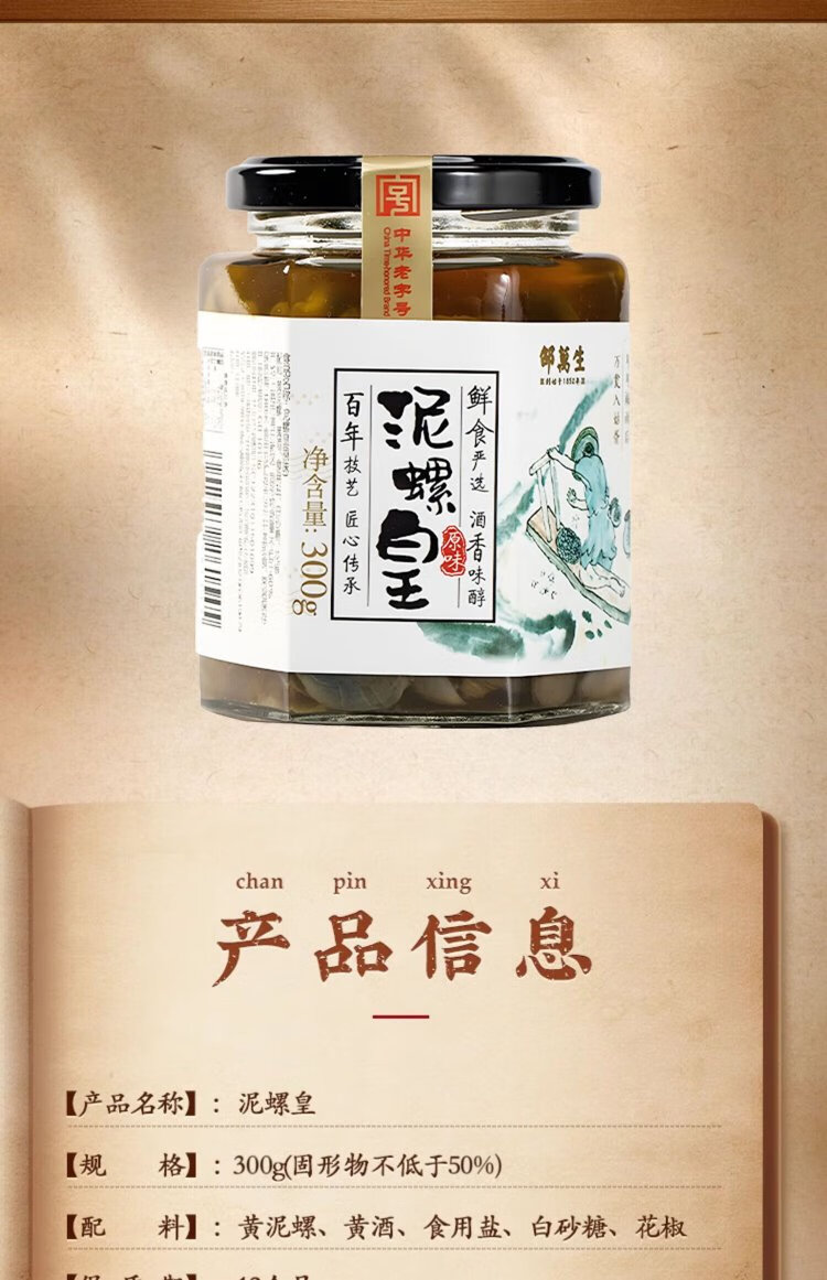 Shao Wansheng's time-honored yellow mud snail ready-to-eat drunken mud snail canned raw pickled seafood with rice and wine canned mud snail emperor 300g