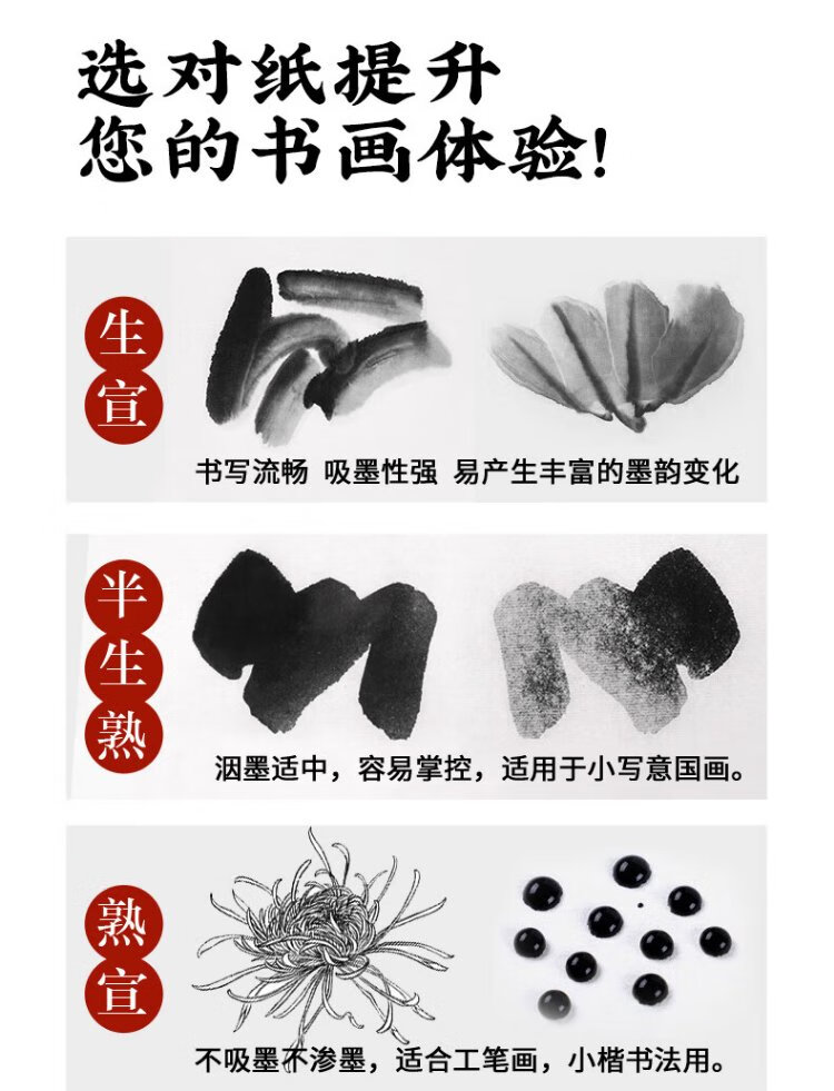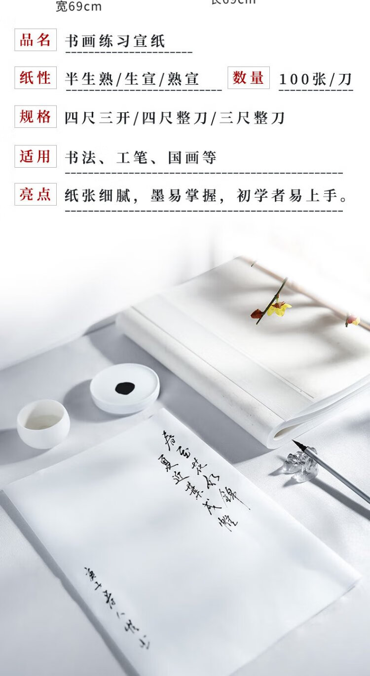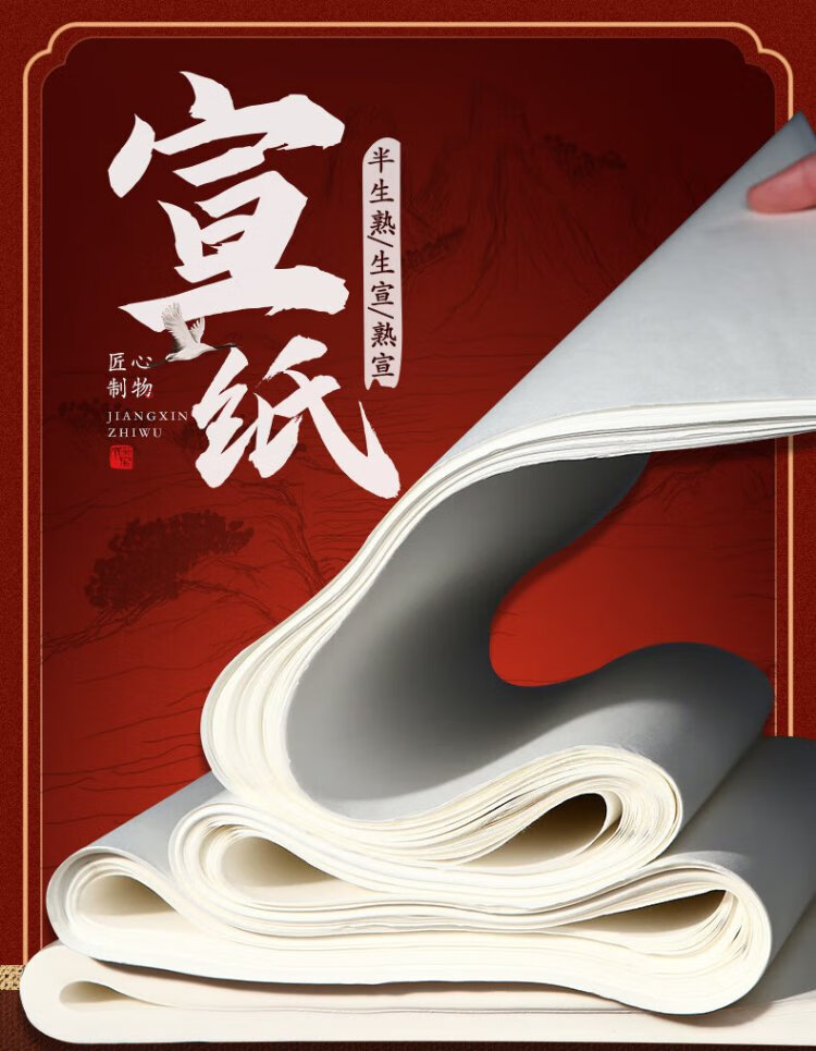 Rongbaozhai calligraphy and painting paper, rice paper, half-cooked calligraphy and French painting special paper, brush for beginners to practice creation, four-foot-to-single opening, student introduction, half-cooked-four-foot-to-four opening