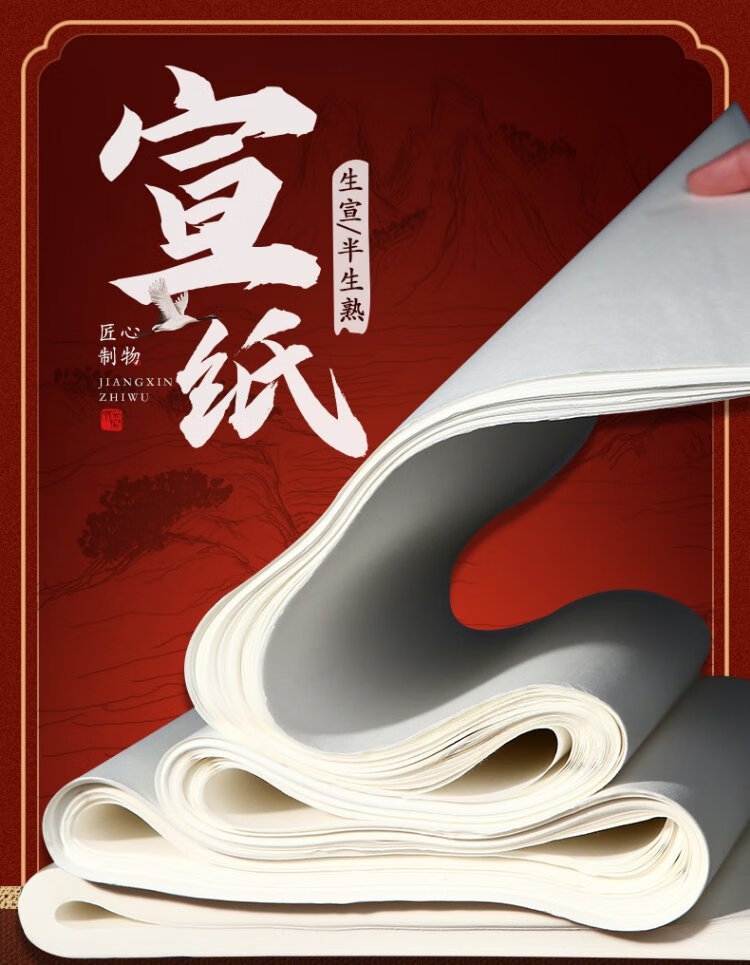 Lowest price on the whole network Rongbaozhai calligraphy and painting paper rice paper student Xuan Shu French painting special brush beginner practice creation four feet in single for students entry Sheng Xuan - four feet in four open 100 sheets