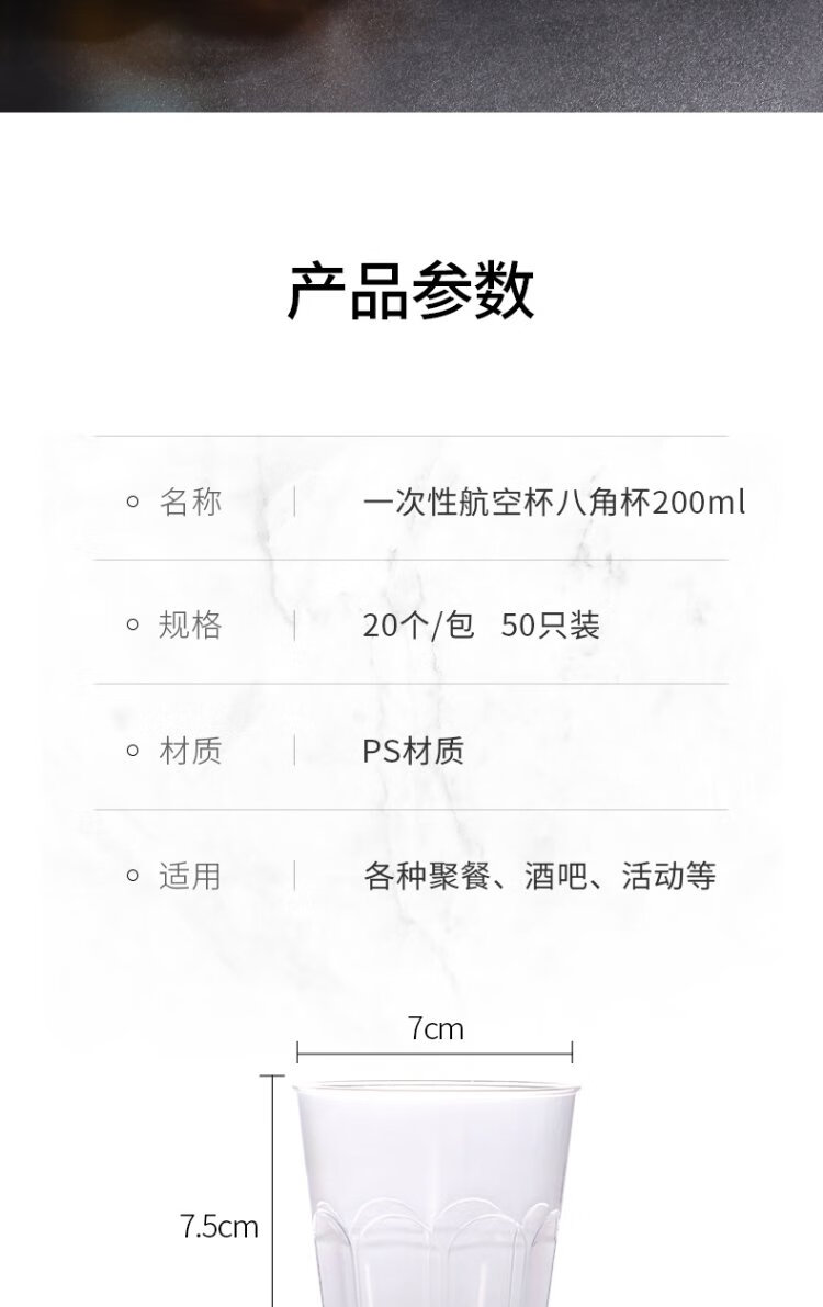 Badger disposable cup aviation cup drinking cup beer liquor cup hard plastic tea cup octagonal cup 200ML*50 pieces
