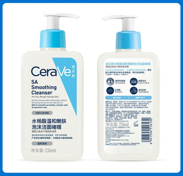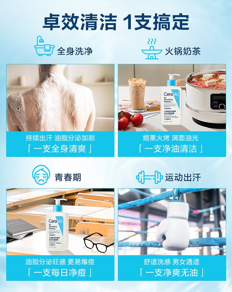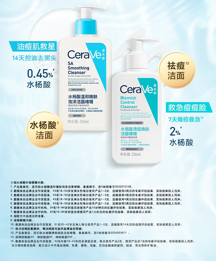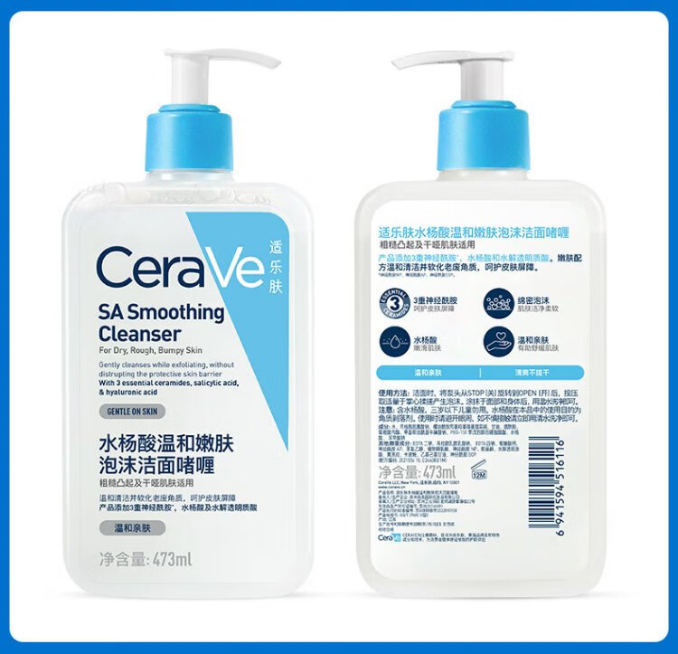 CeraVe salicylic acid cleansing gel 473ml oil control exfoliating blackheads amino acid skin care facial cleanser for men and women