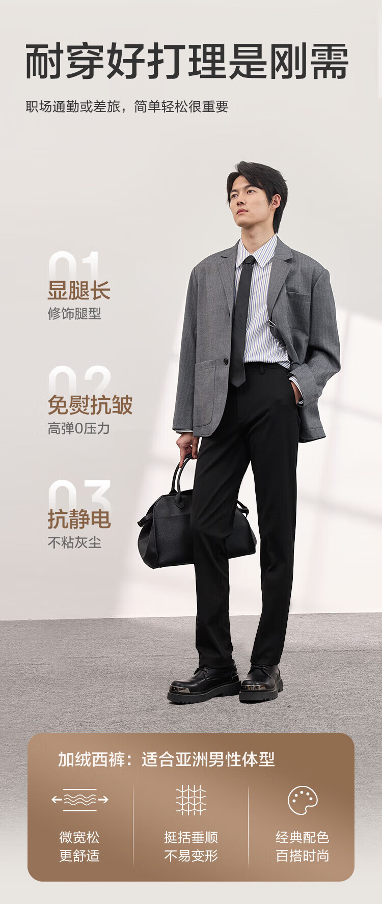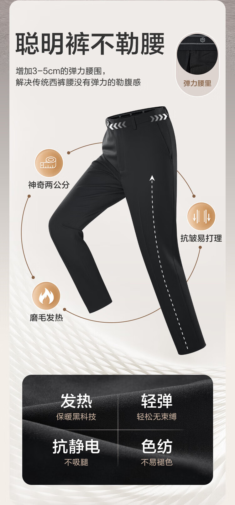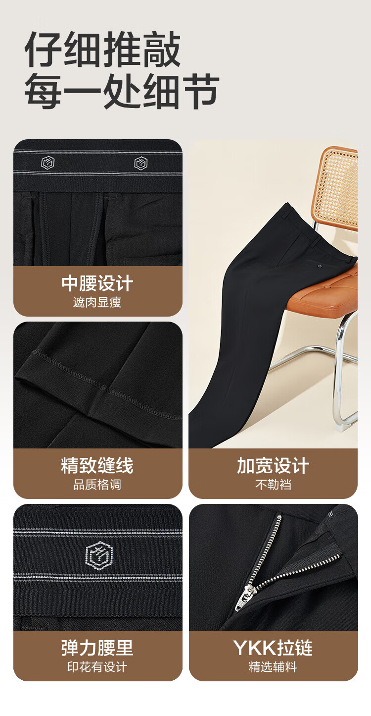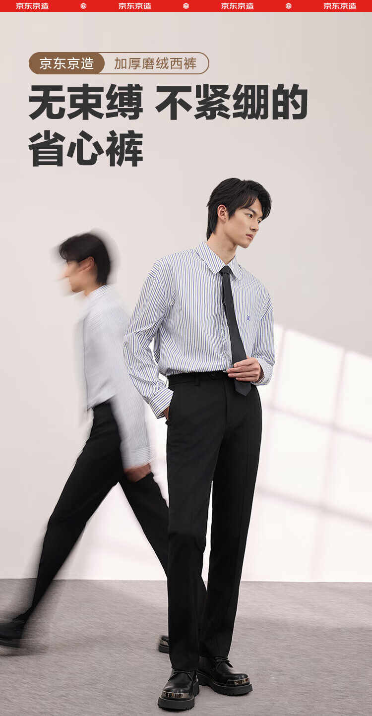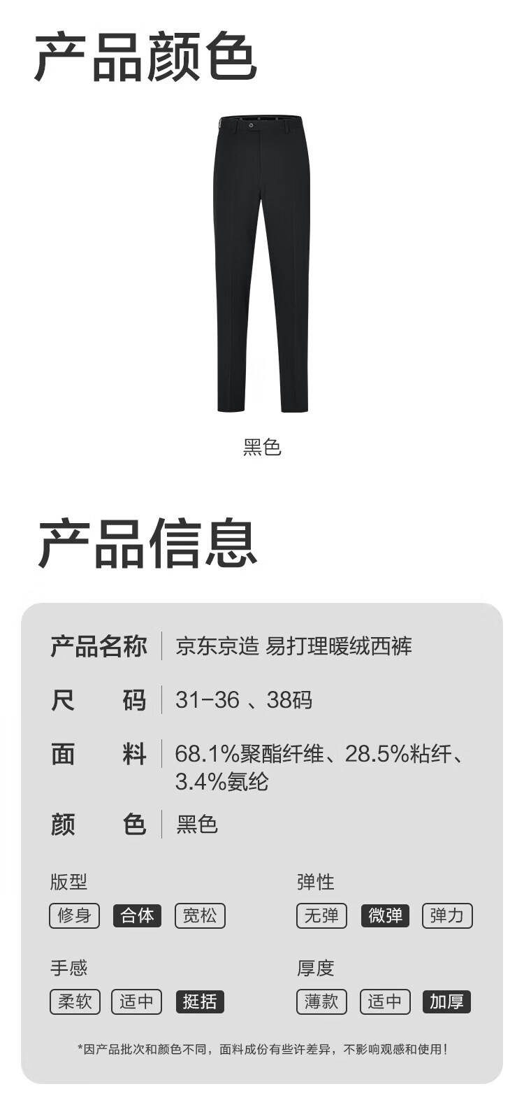 Jingjing Tokyo-made trousers men's casual trousers straight anti-wrinkle plus velvet suit men's trousers gift black 34