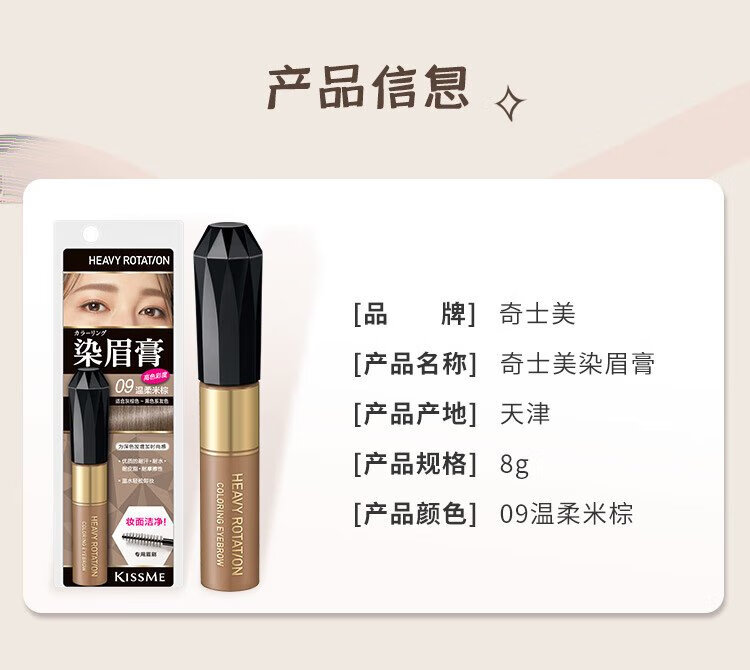 Kiss Me Eyebrow Cream 09 Gentle Beige 8g (Suitable for gray-brown and black hair color, sweat-resistant and water-resistant, not easy to smudge)