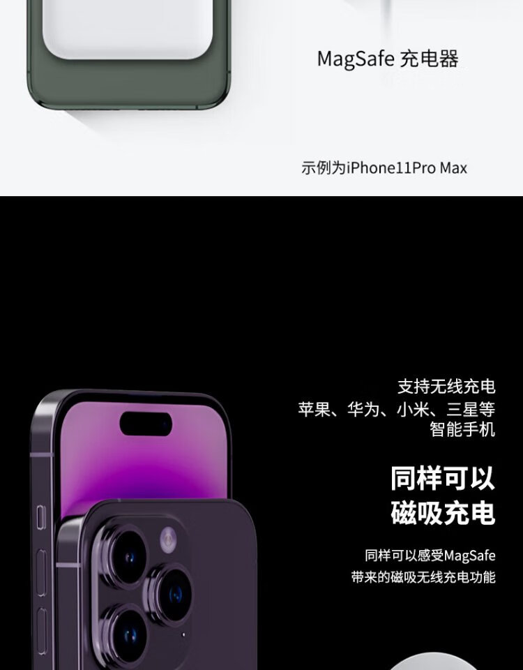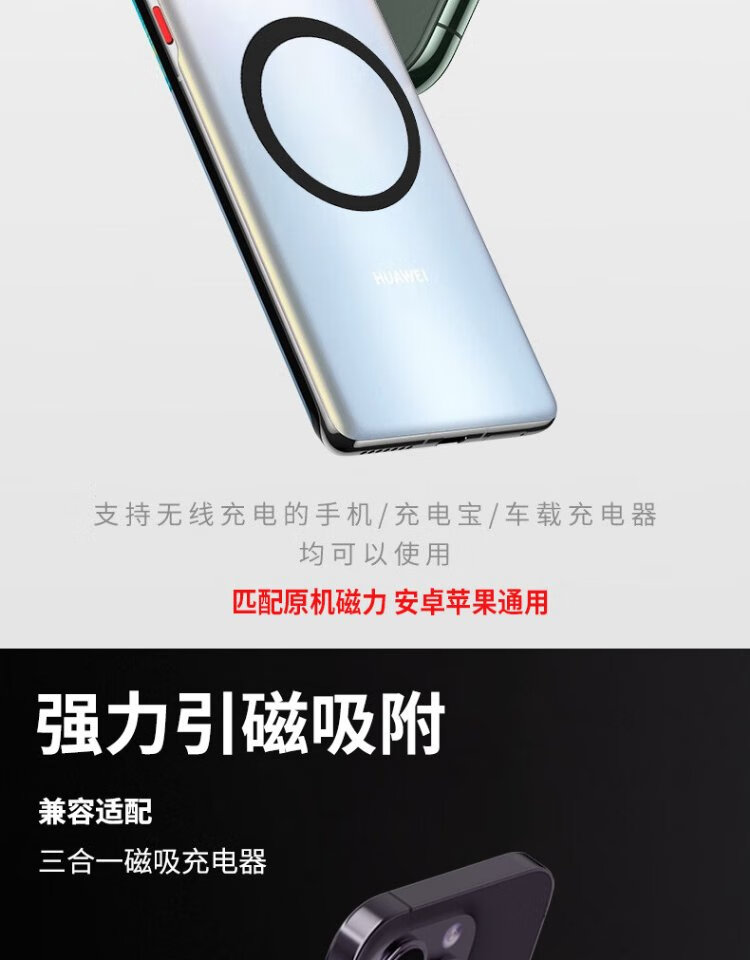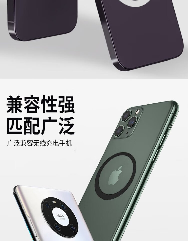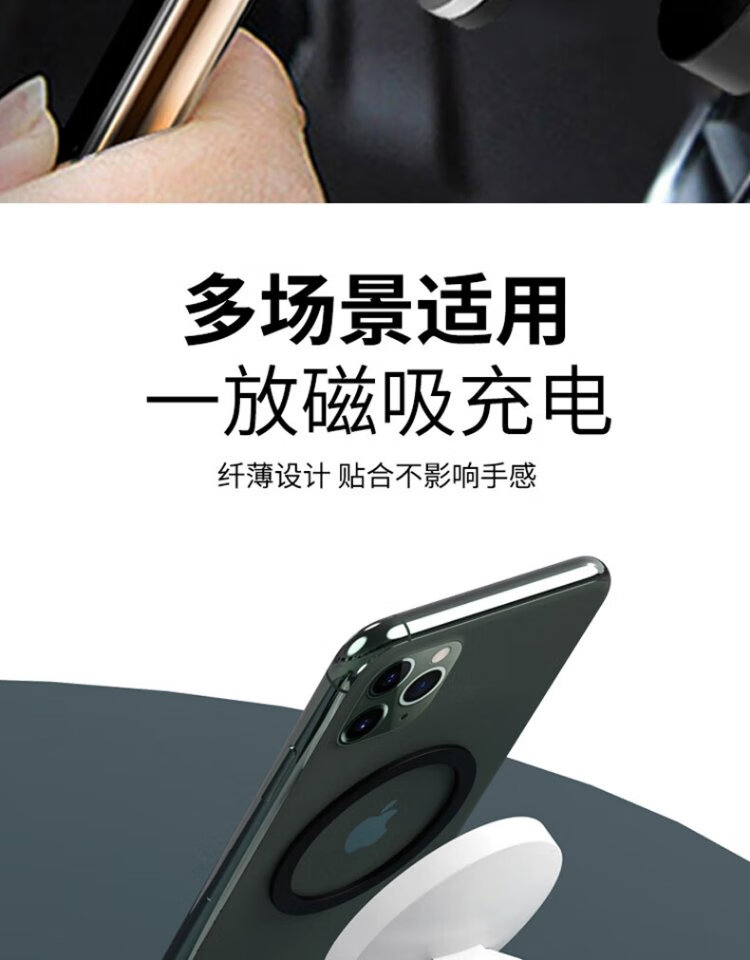 ESCASE three-piece set, wireless charging magnetic patch, magnetic ring, magsafe mobile phone holder, ring magnet, back sticker suction cup, universal Apple 14 Samsung mobile phone, white
