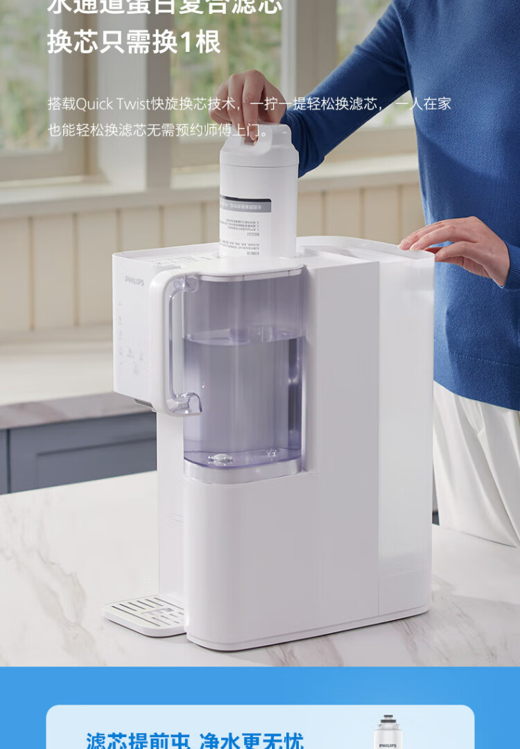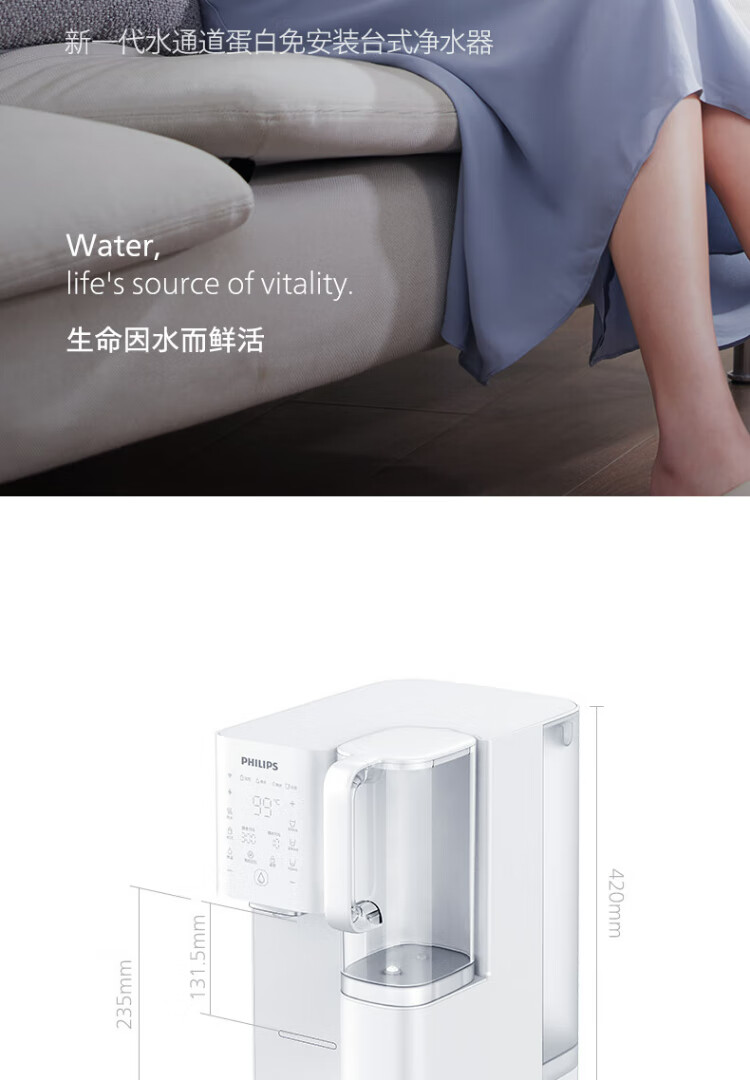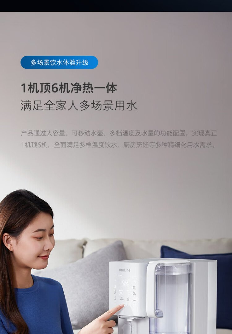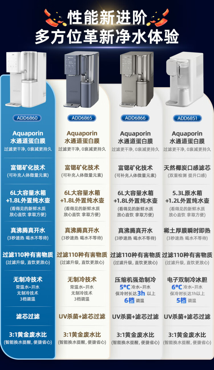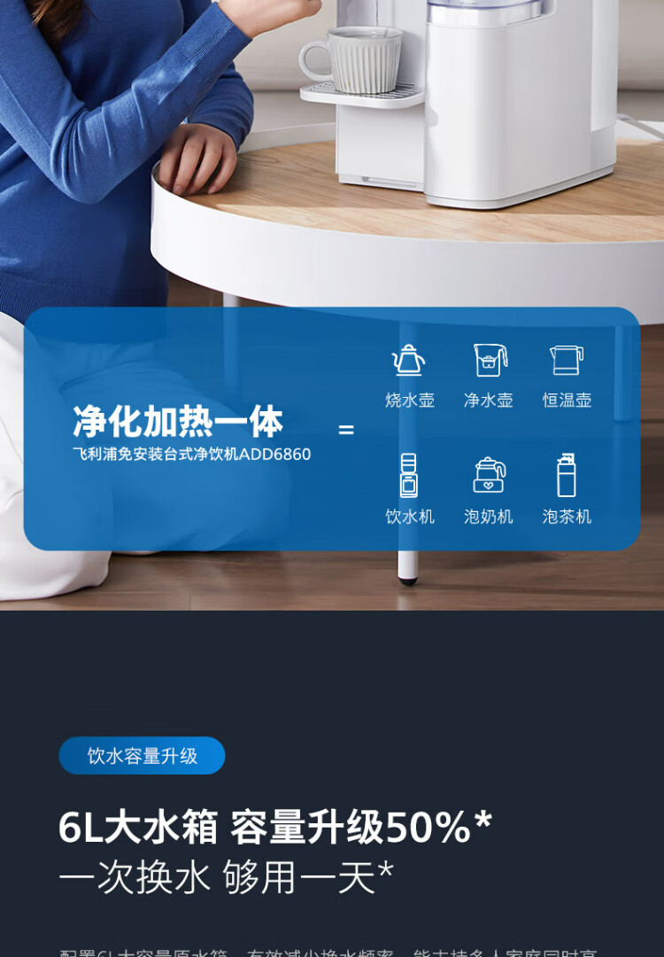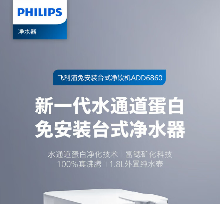 Philips (PHILIPS) water purifier household RO reverse osmosis desktop instant hot water dispenser rich strontium mineralization installation-free purifier ADD6860