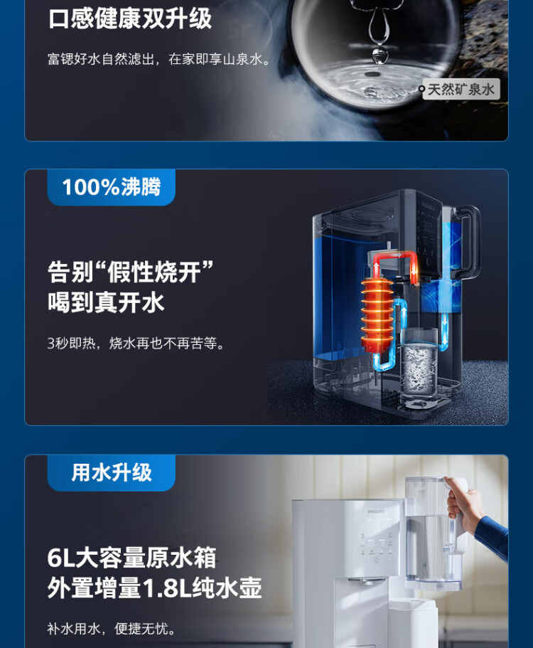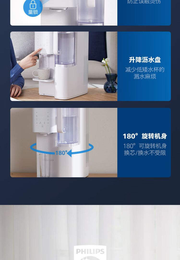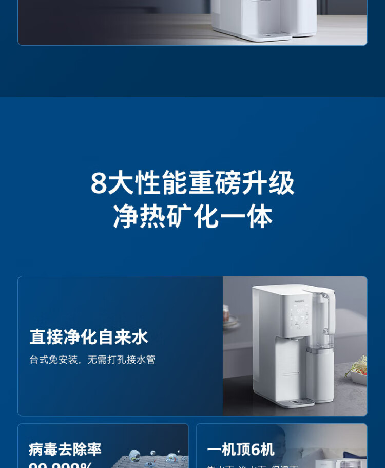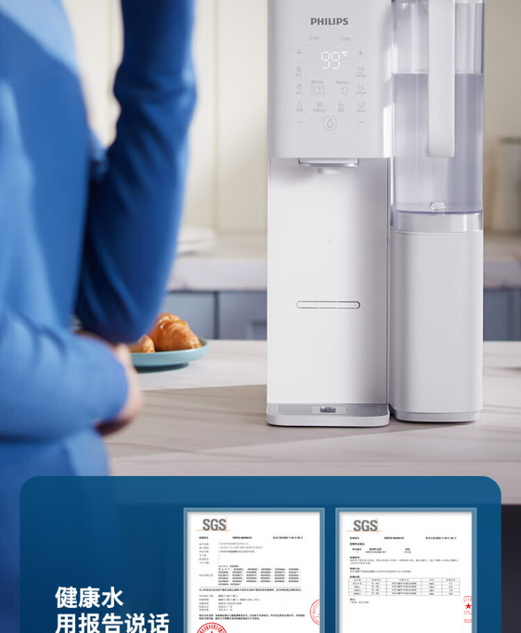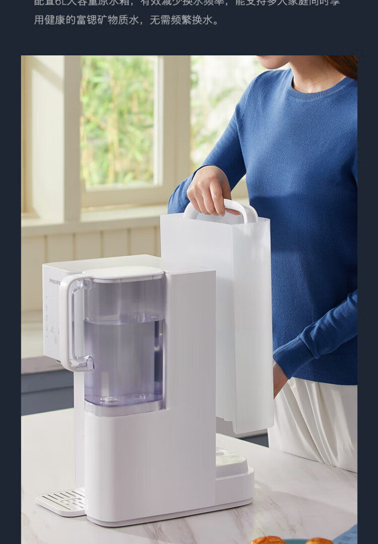 Philips (PHILIPS) water purifier household RO reverse osmosis desktop instant hot water dispenser rich strontium mineralization installation-free purifier ADD6860