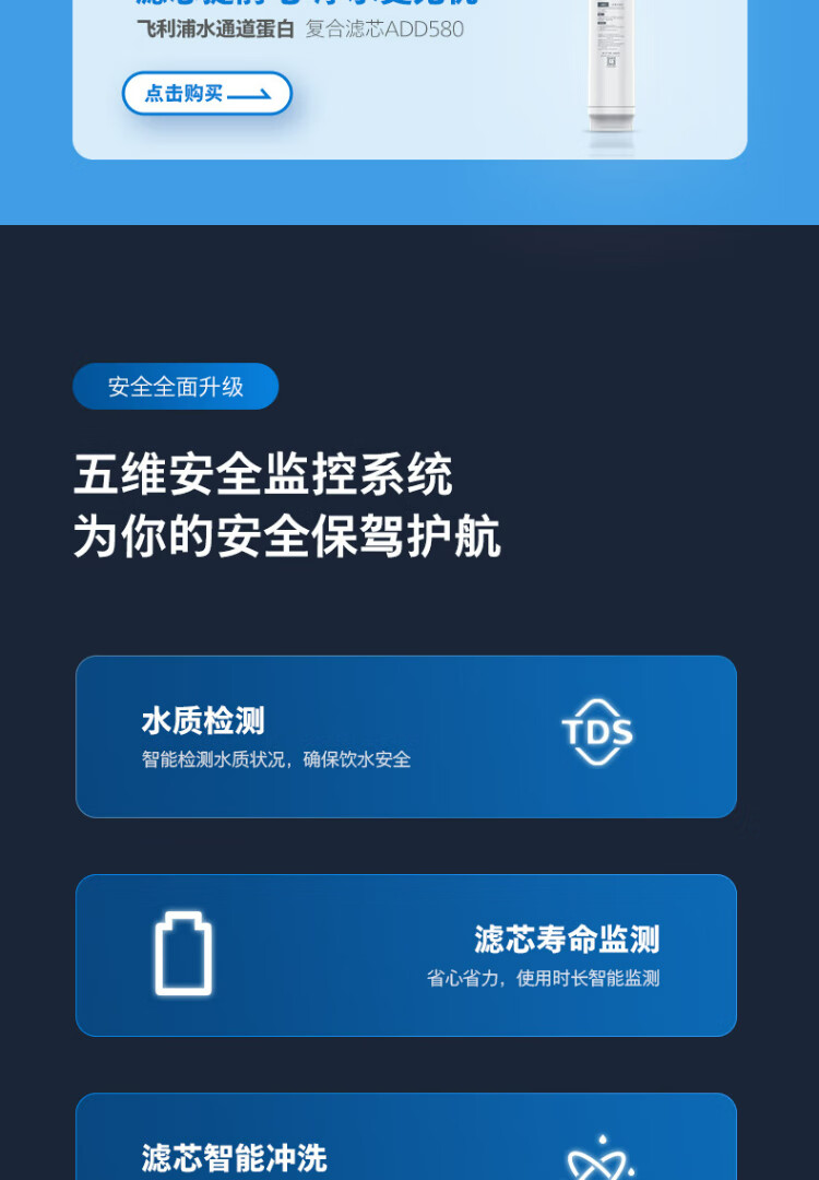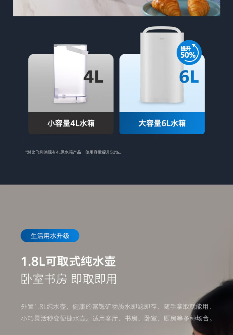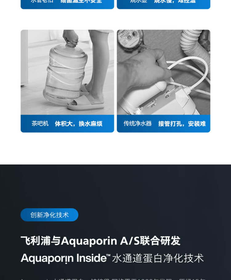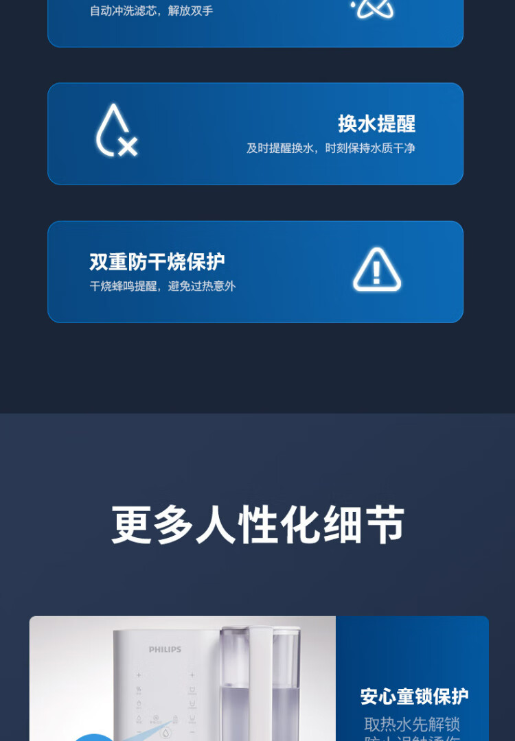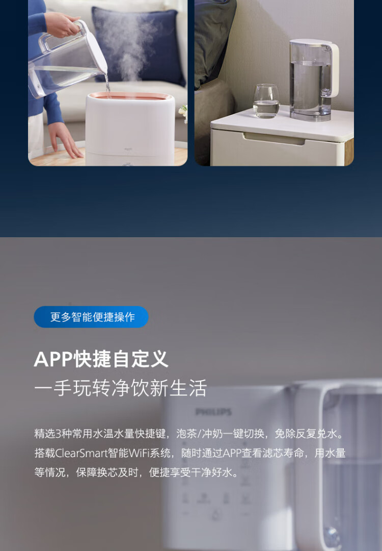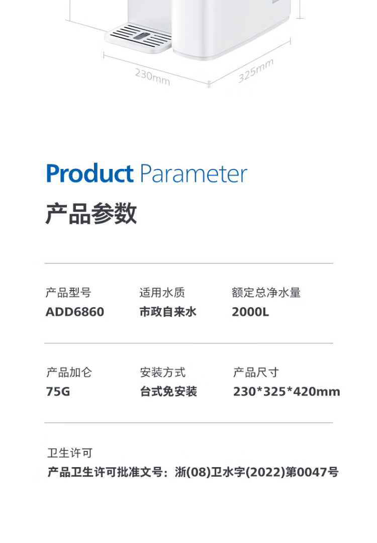 Philips (PHILIPS) water purifier household RO reverse osmosis desktop instant hot water dispenser rich strontium mineralization installation-free purifier ADD6860