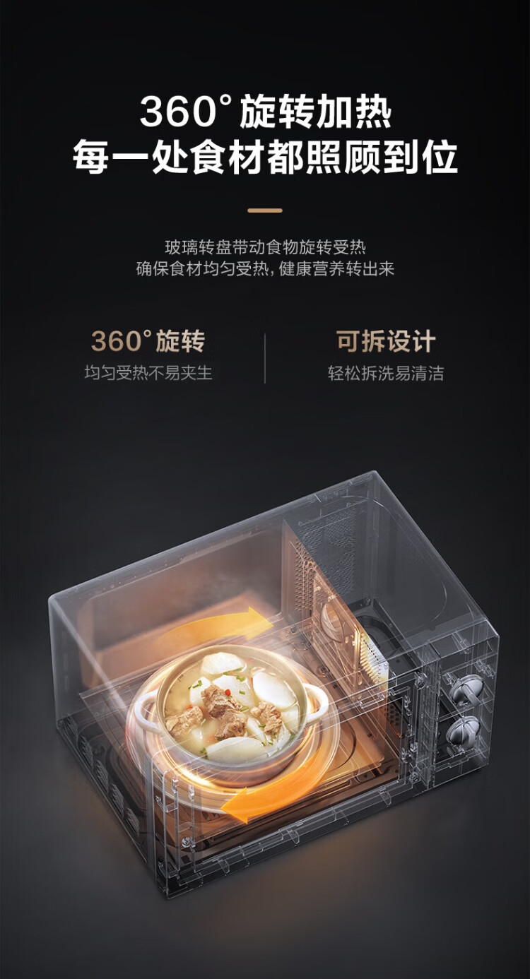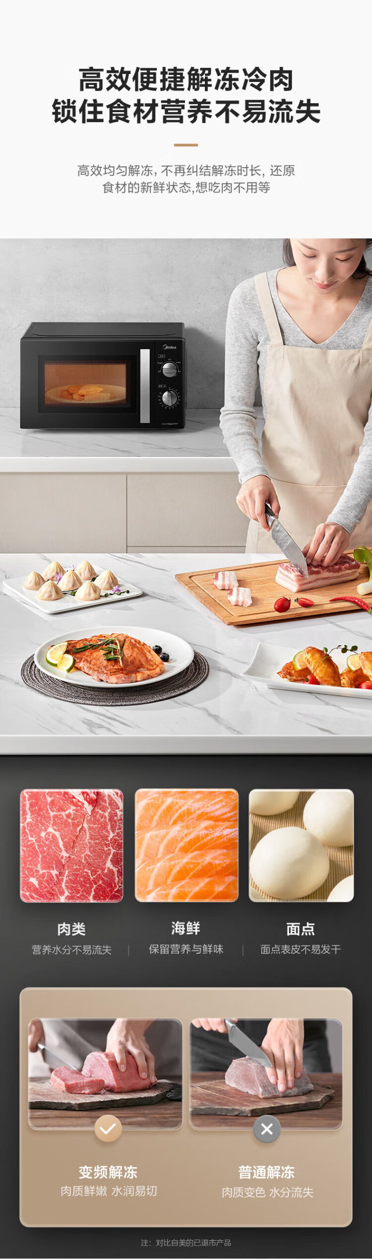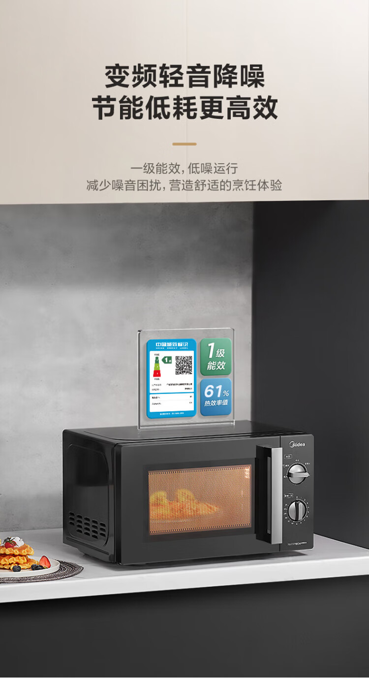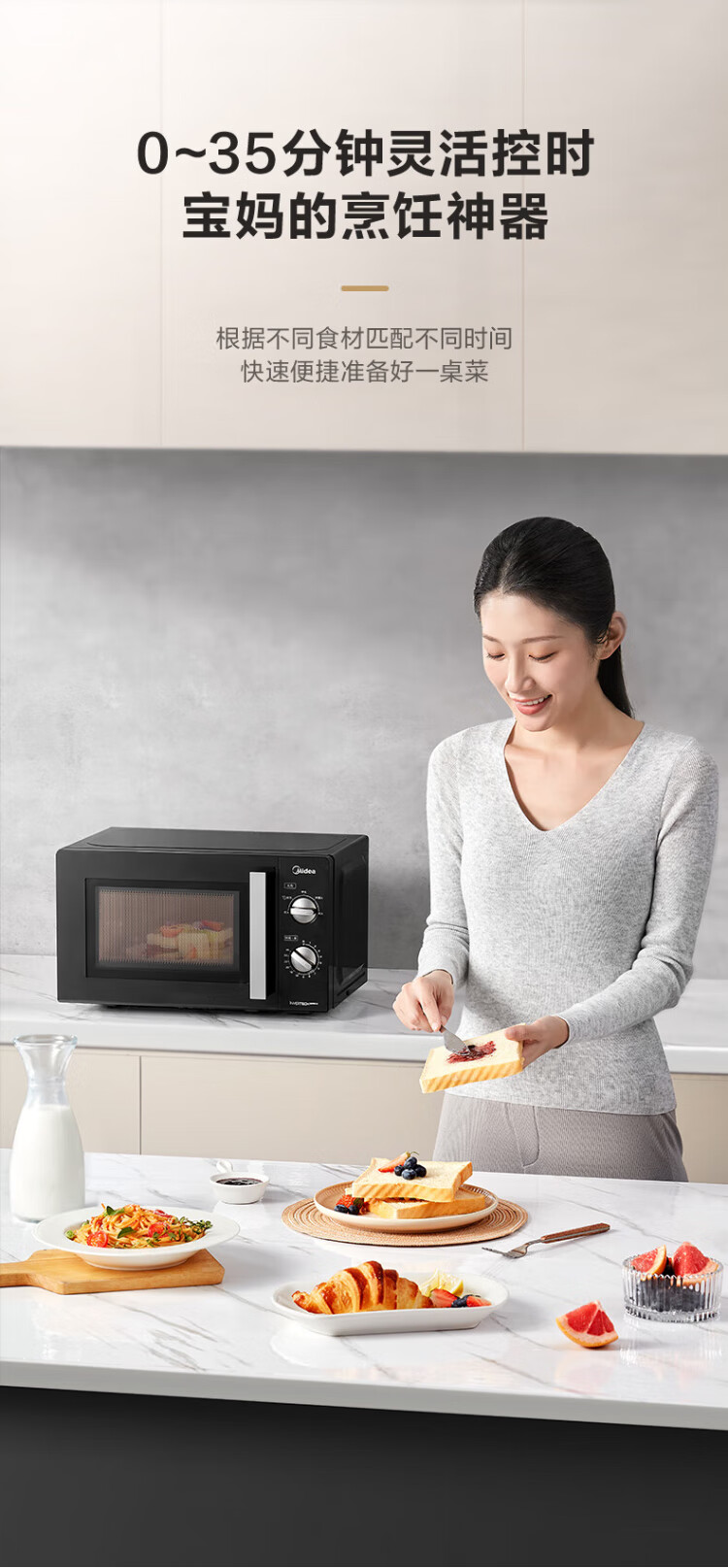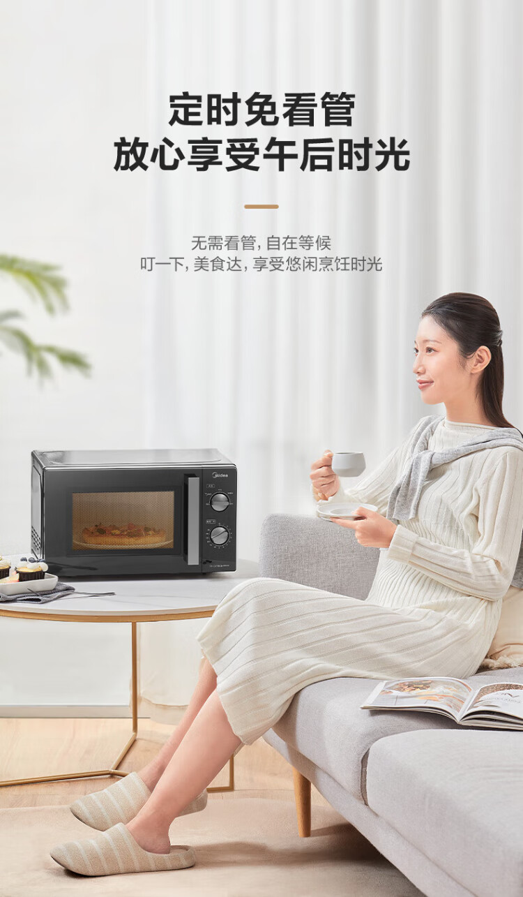 Midea inverter microwave oven, double-turn for easy operation, five-speed rapid heating, 360 turntable heating, 20L compact capacity, micro carbon series PM20A1