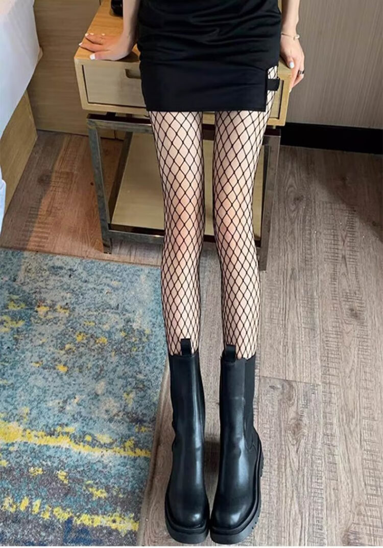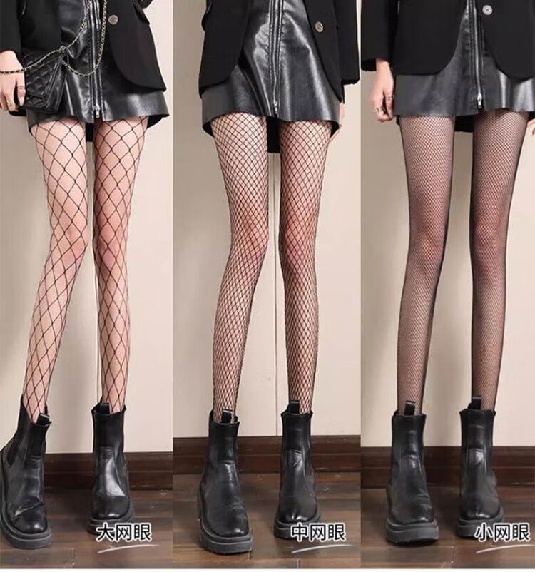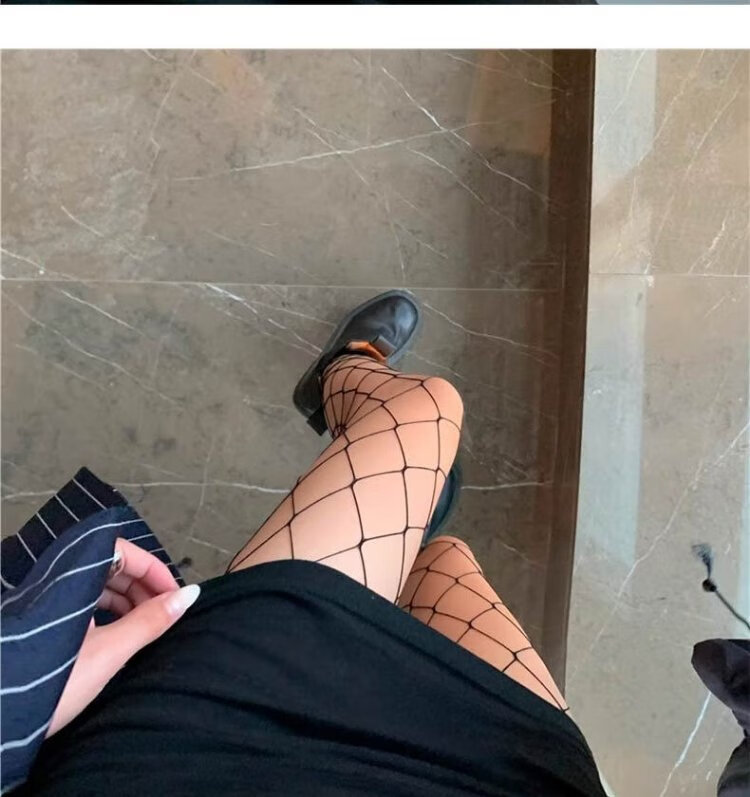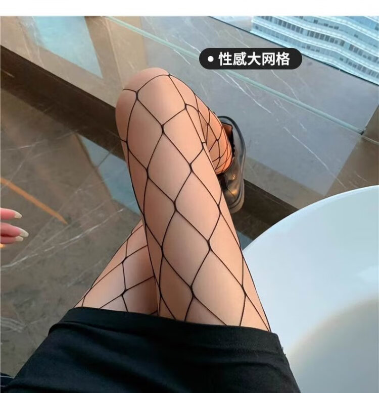 Langsha black silk fishnet stockings spring and summer black stockings women's summer ultra-thin ins trendy hollow bottoming pantyhose large fishnet stockings