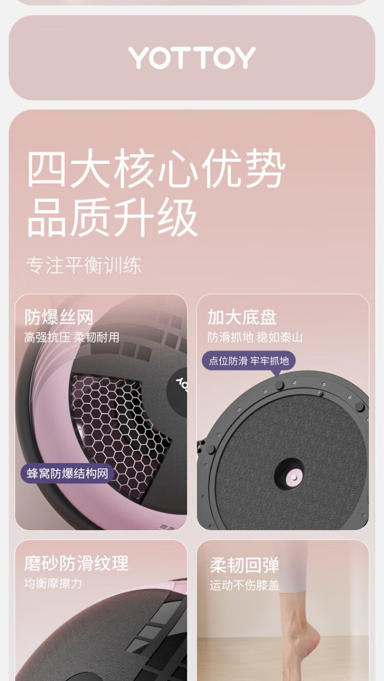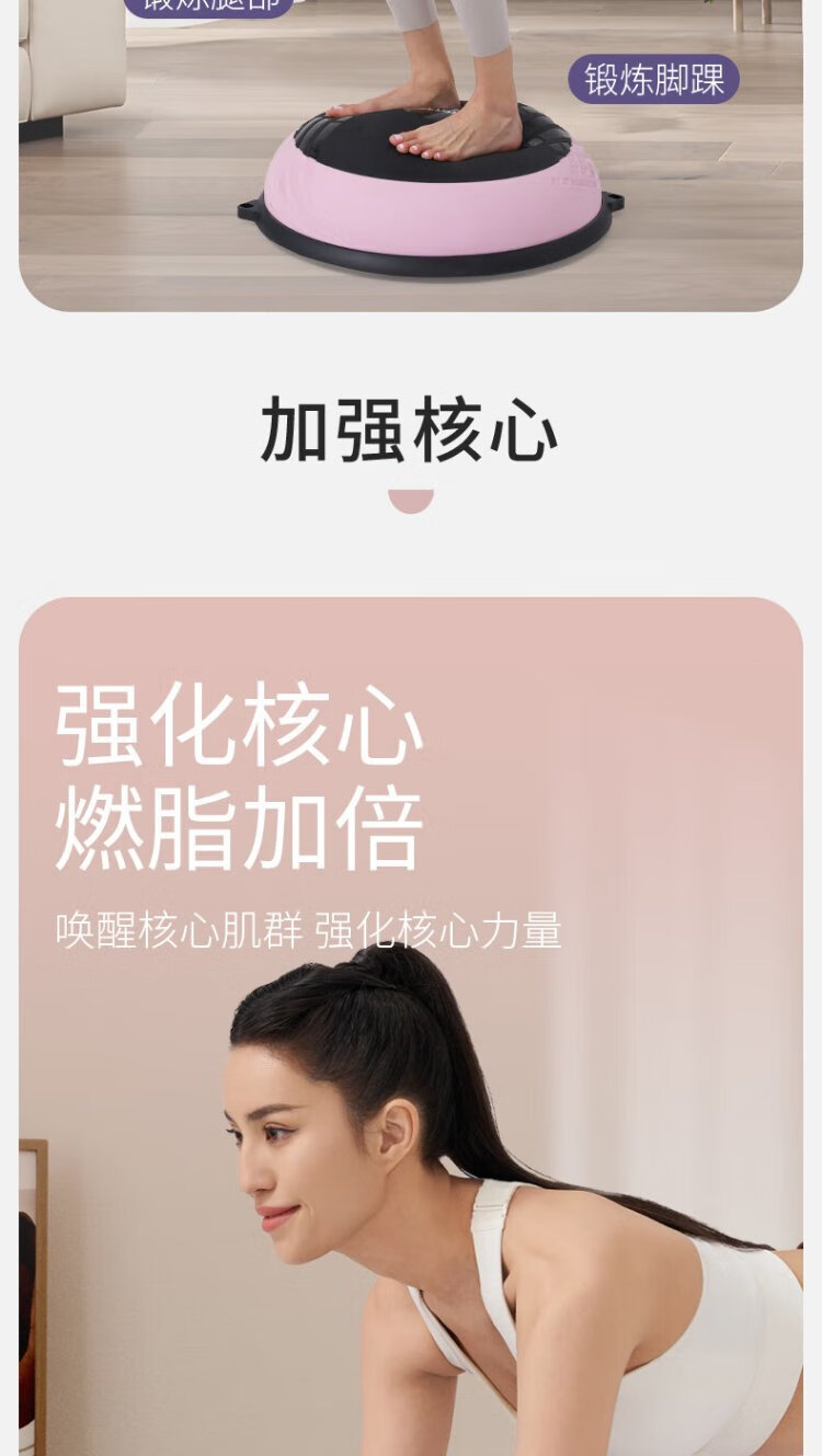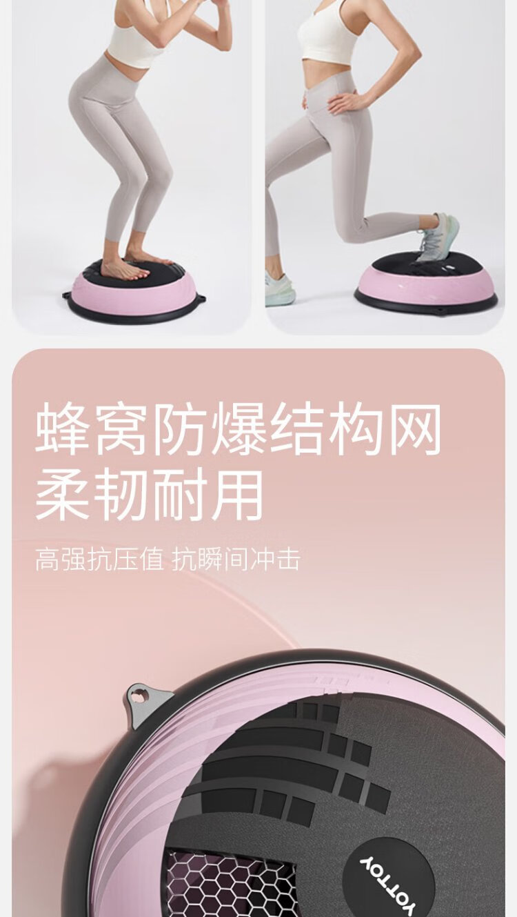 Yottoy Wave Speed Ball Semi-circular Balance Ball Thickened Explosion-proof Yoga Fitness Ball Men's and Women's Pilates Foot Hemisphere - Black Pink