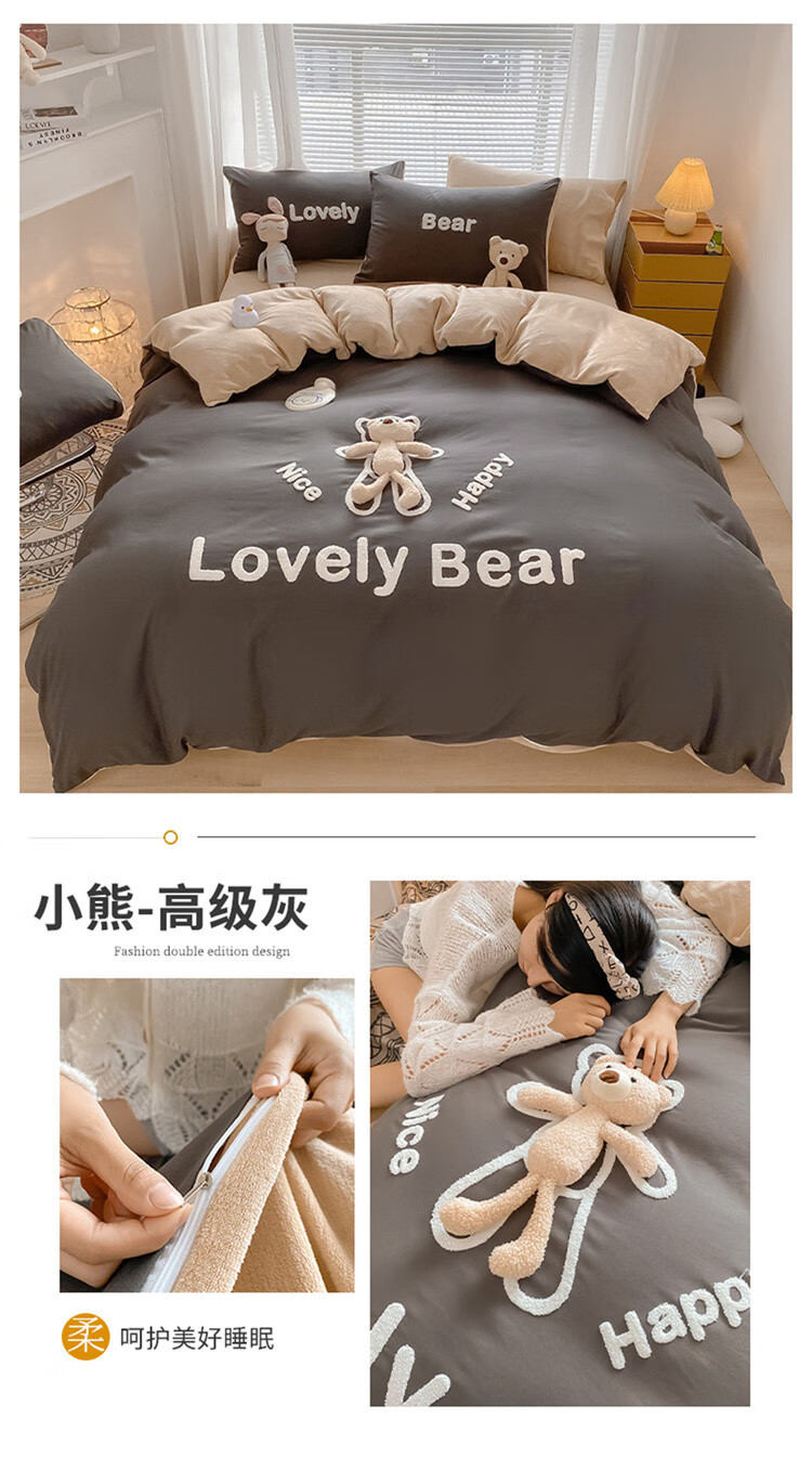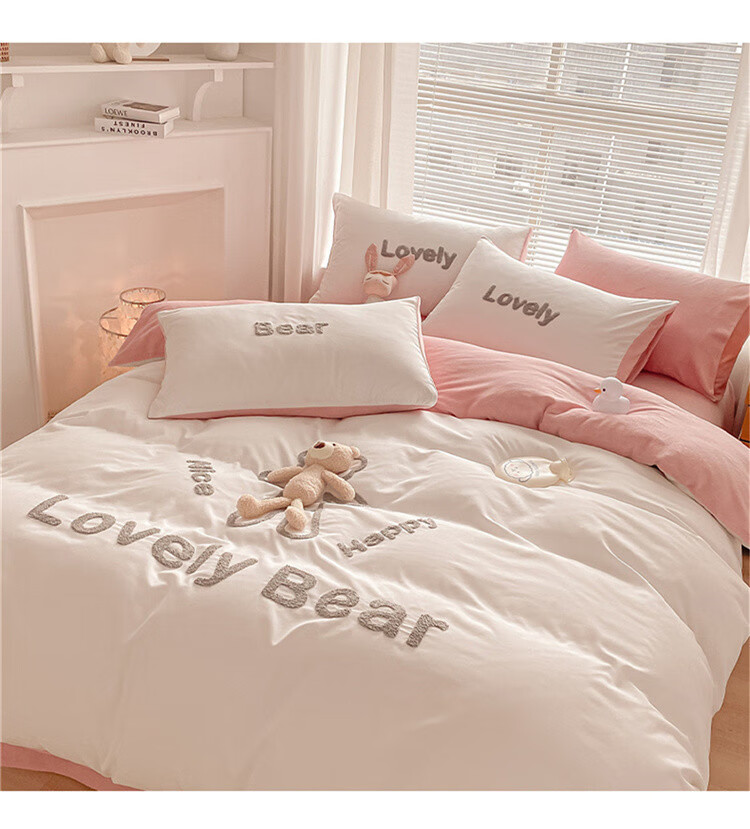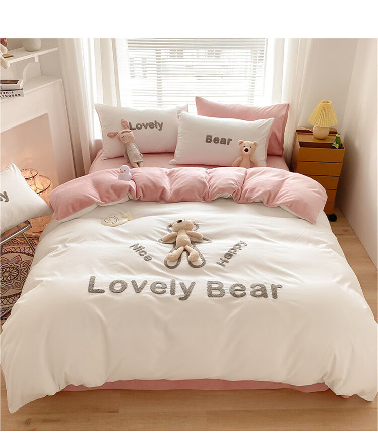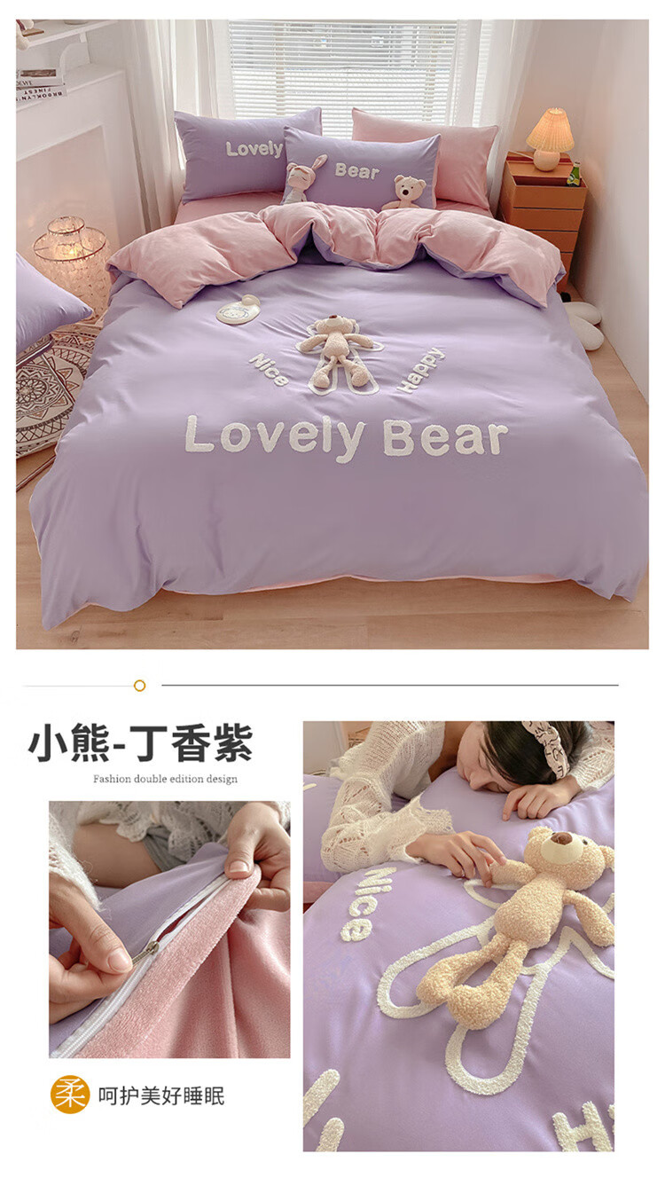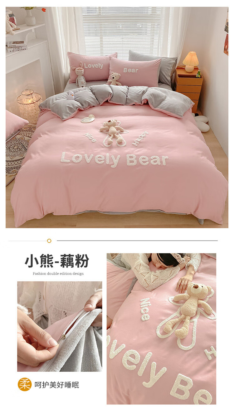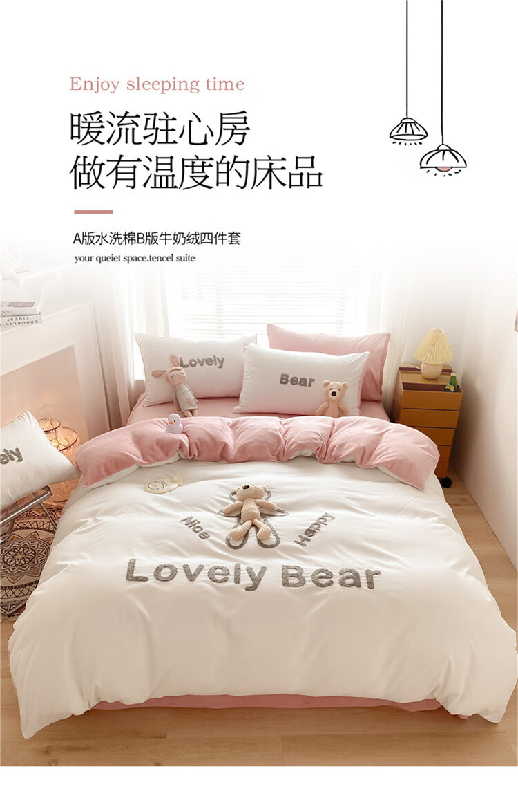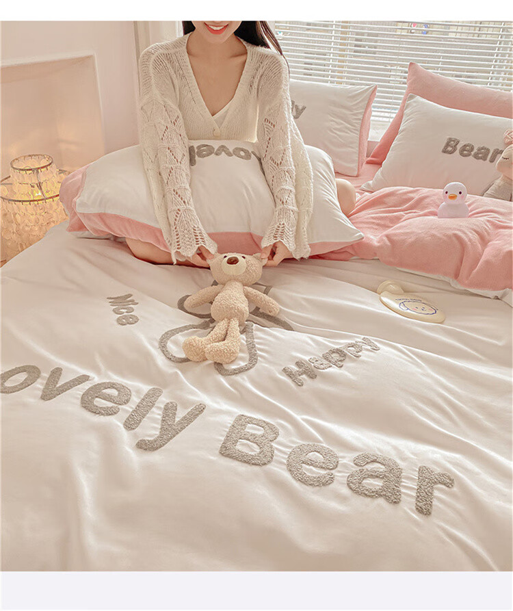 SOMERELLE washed cotton and velvet four-piece set, thickened warm bed sheet, quilt cover, small 1.2m bed sheet