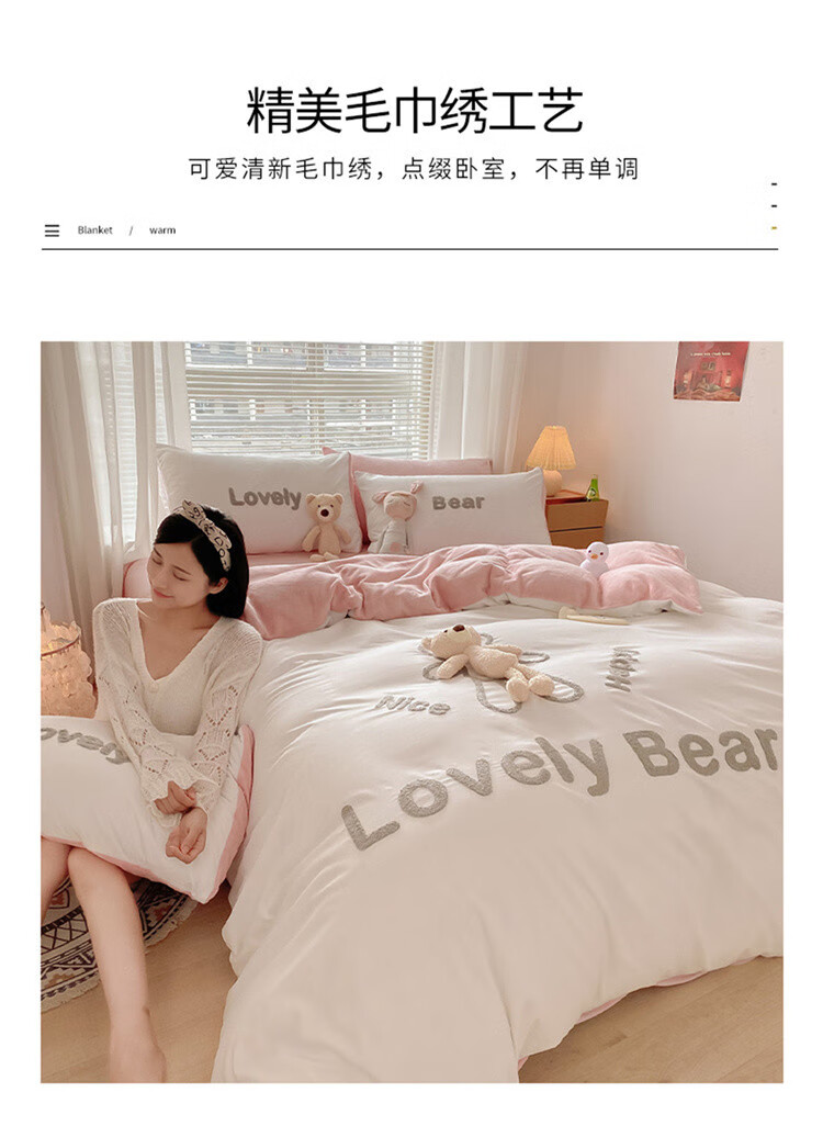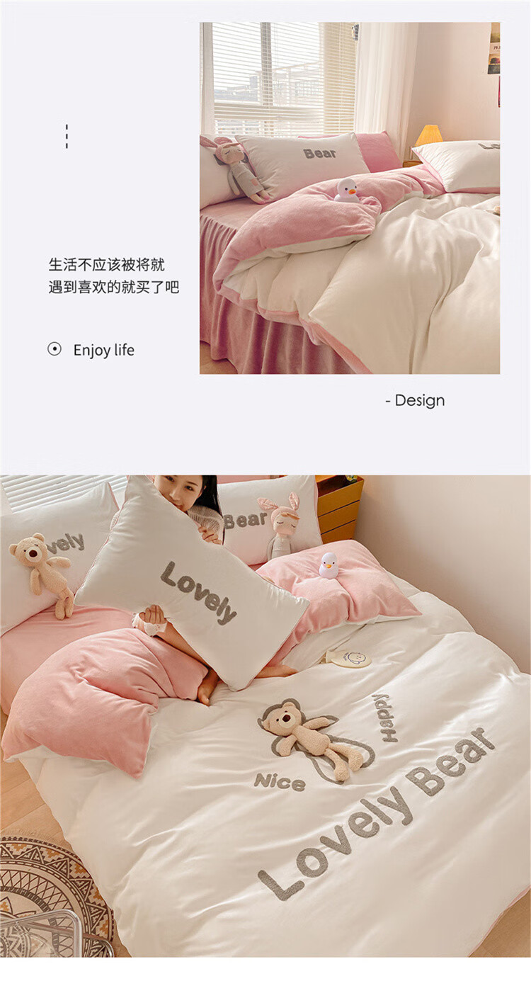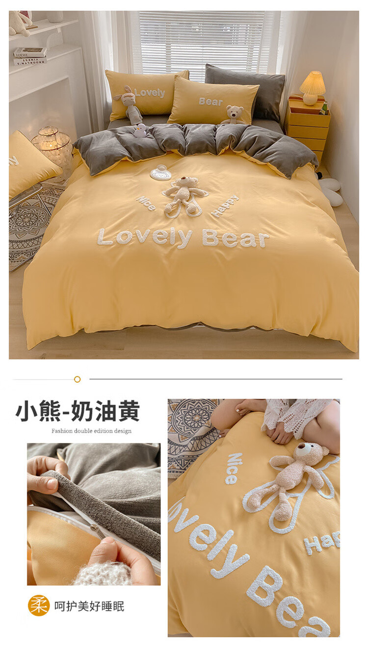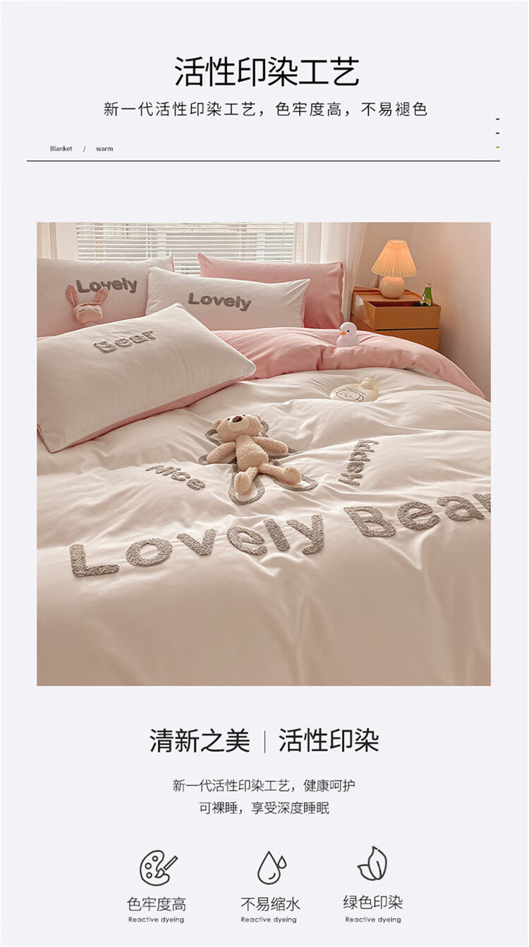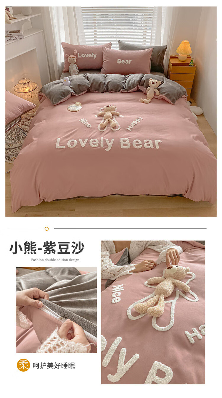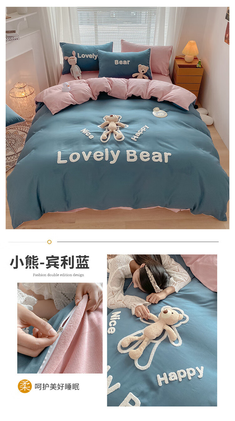 SOMERELLE washed cotton and velvet four-piece set, thickened warm bed sheet, quilt cover, small 1.2m bed sheet