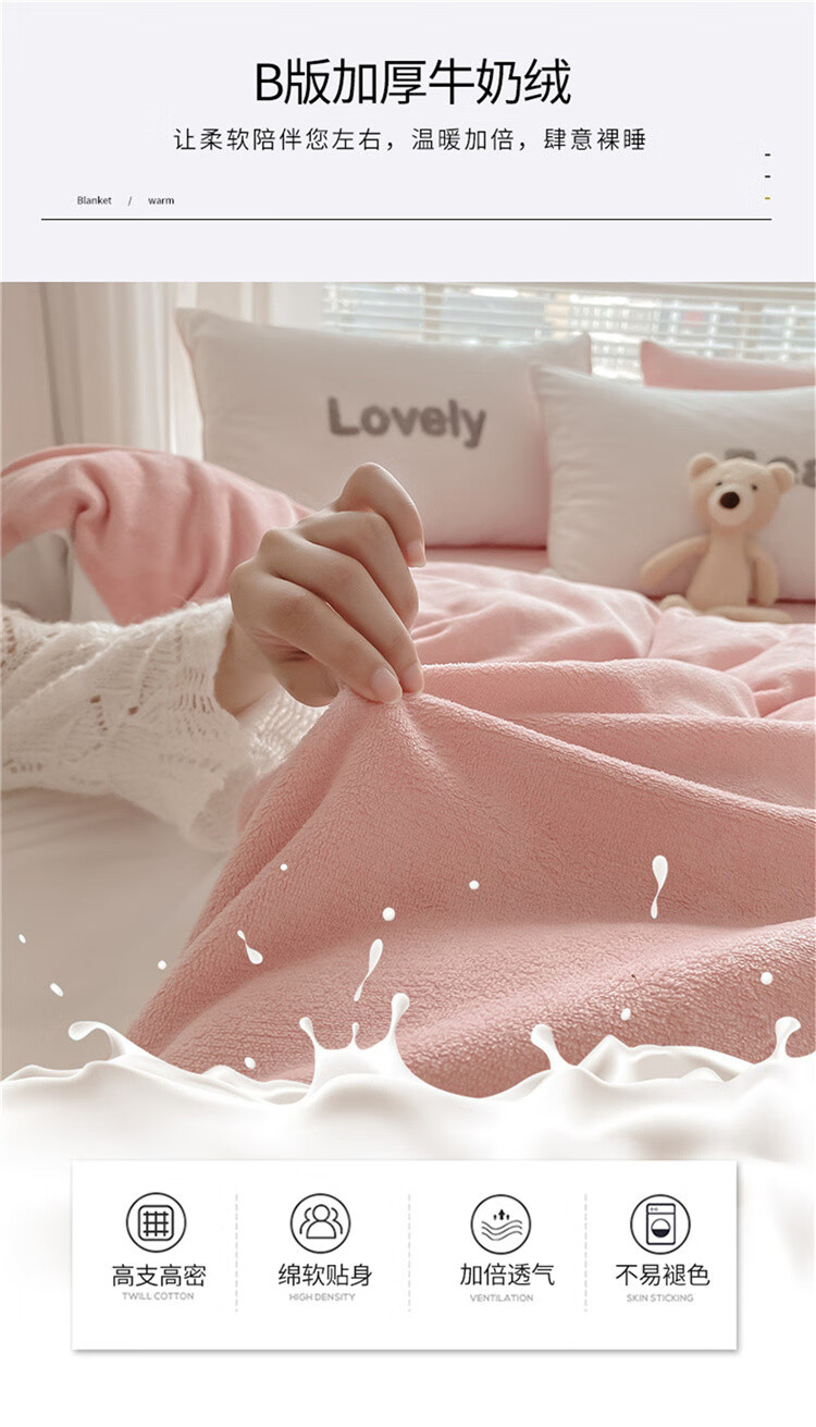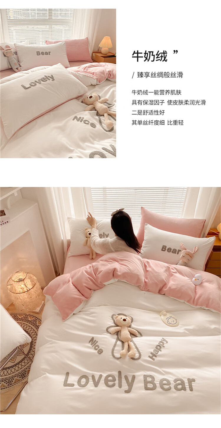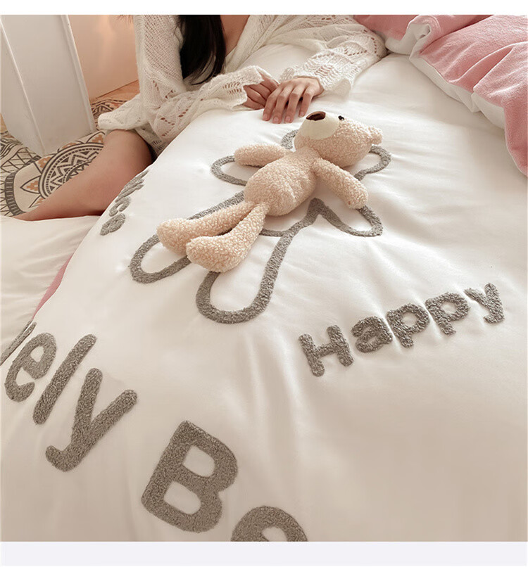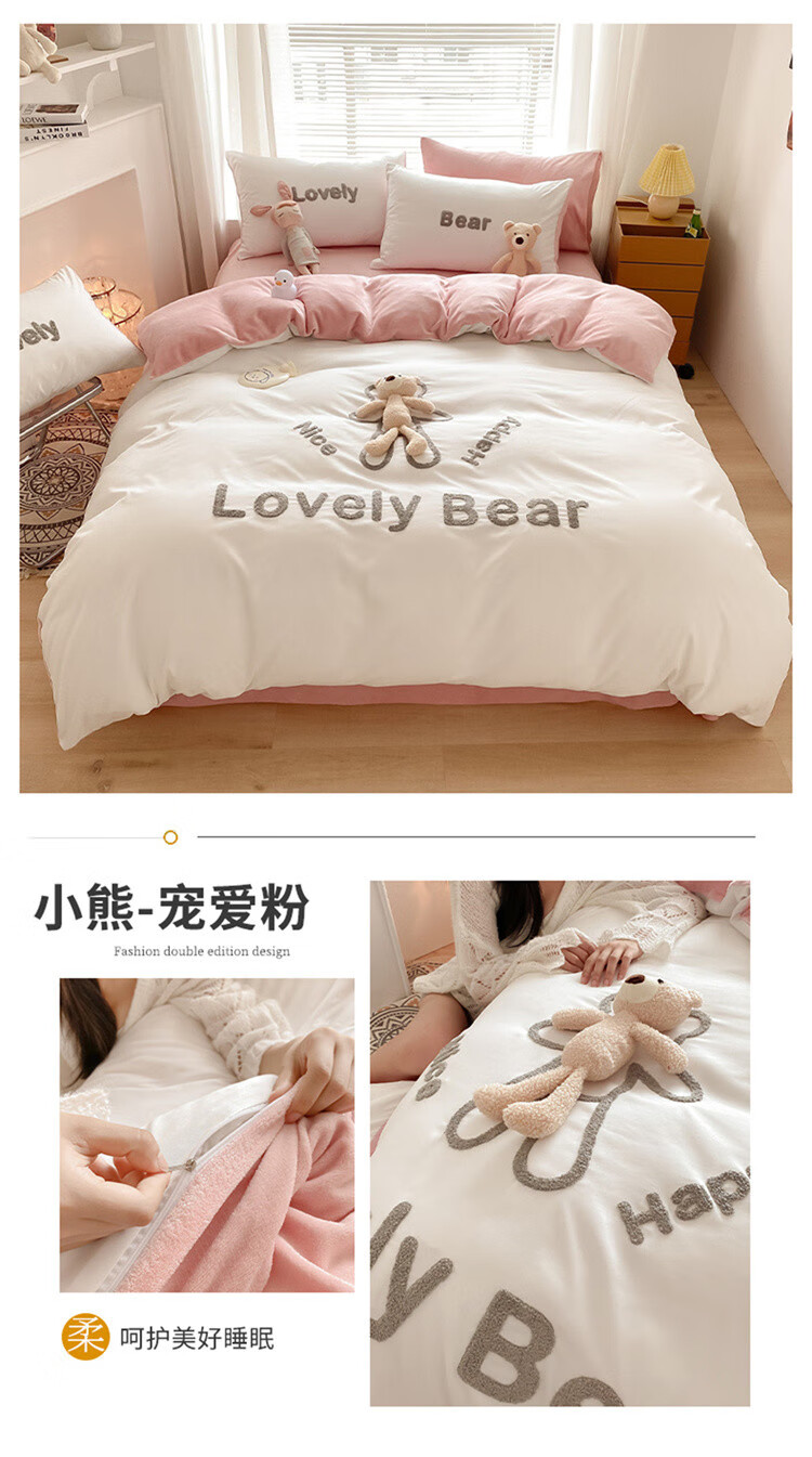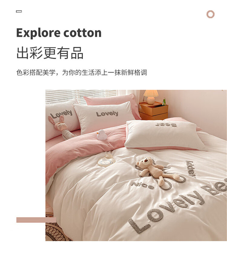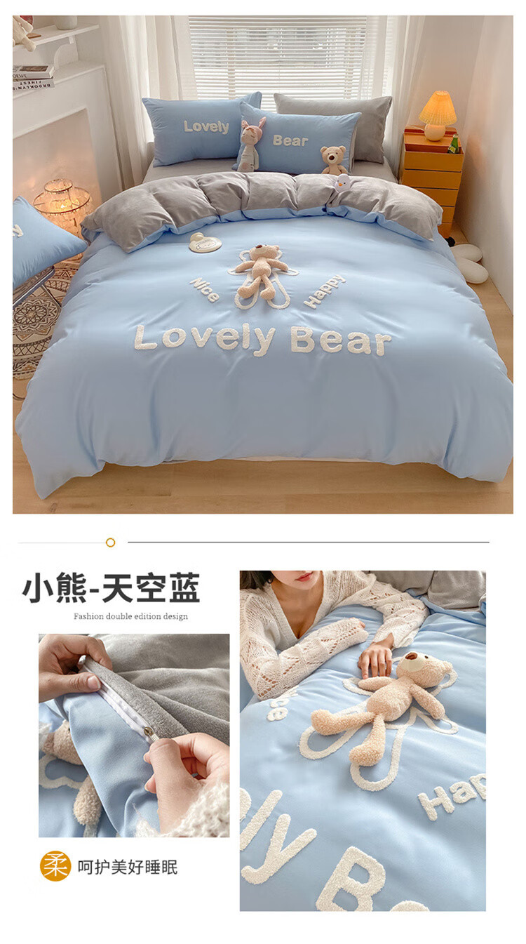 SOMERELLE washed cotton and velvet four-piece set, thickened warm bed sheet, quilt cover, small 1.2m bed sheet