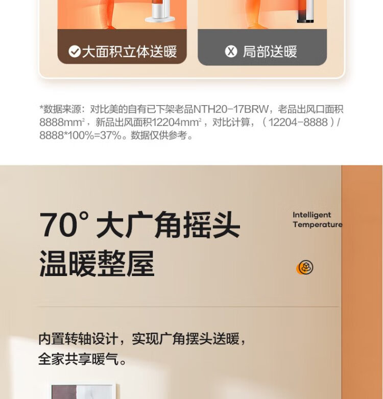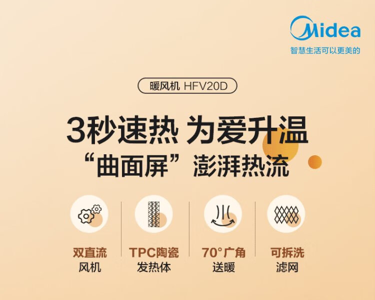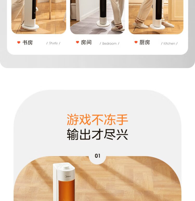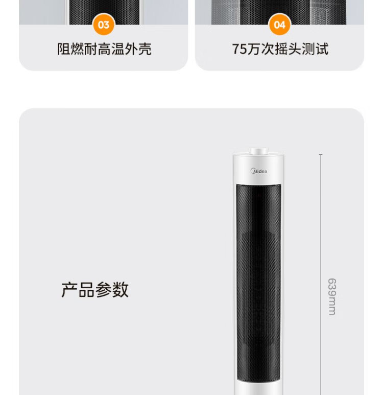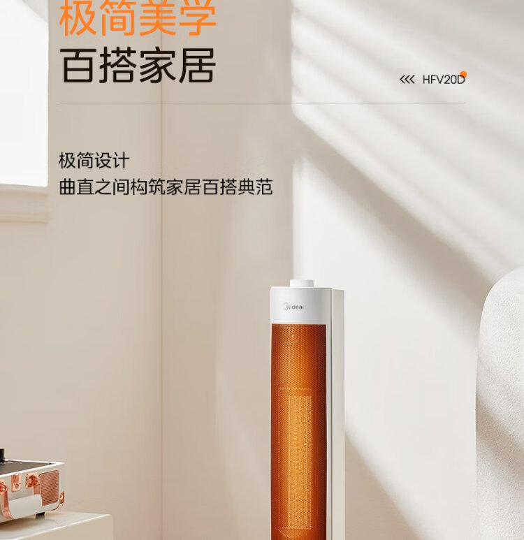 Midea super single product heater/small sun heater/whole house heating electric heater/vertical light-sound electric heater household electric fan energy-saving stove HFV20D