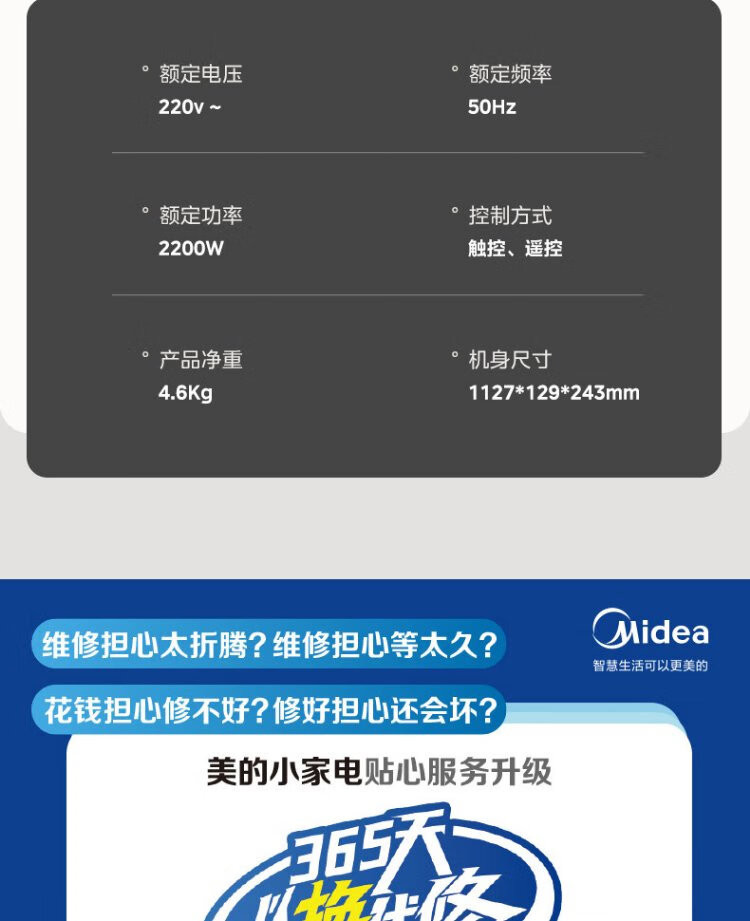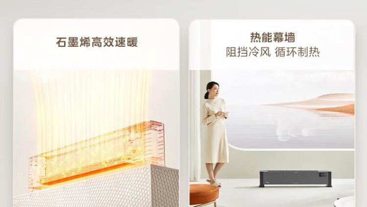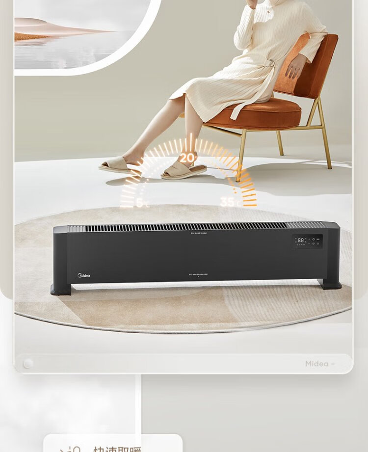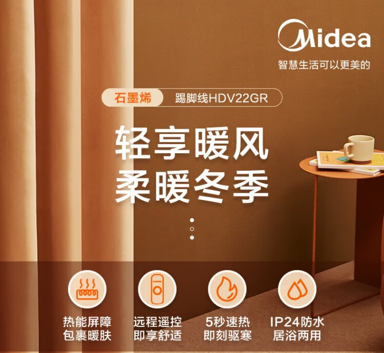 Midea graphene baseboard heater/household energy-saving electric heater/remote control electric heater/bathroom waterproof and antibacterial/whole house heating and rapid heating/mobile floor heating HDV22GR
