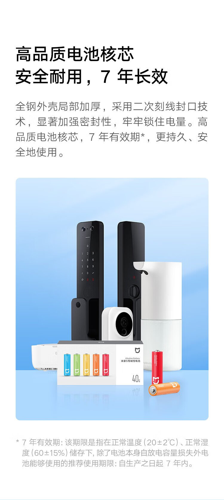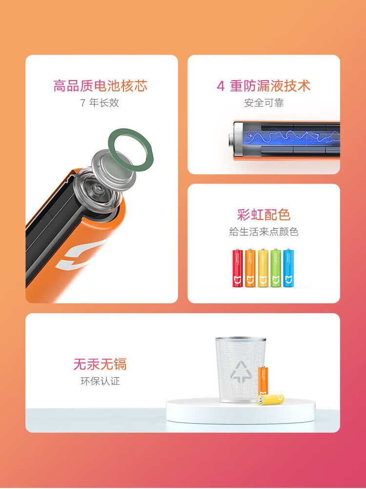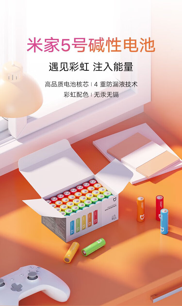 Mijia AA alkaline battery 40 pieces, high cost performance, rainbow color appearance, large quantity packaging