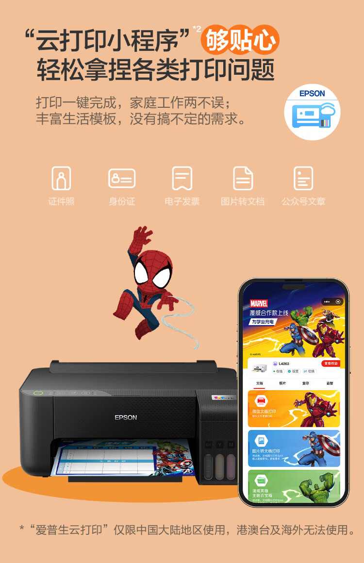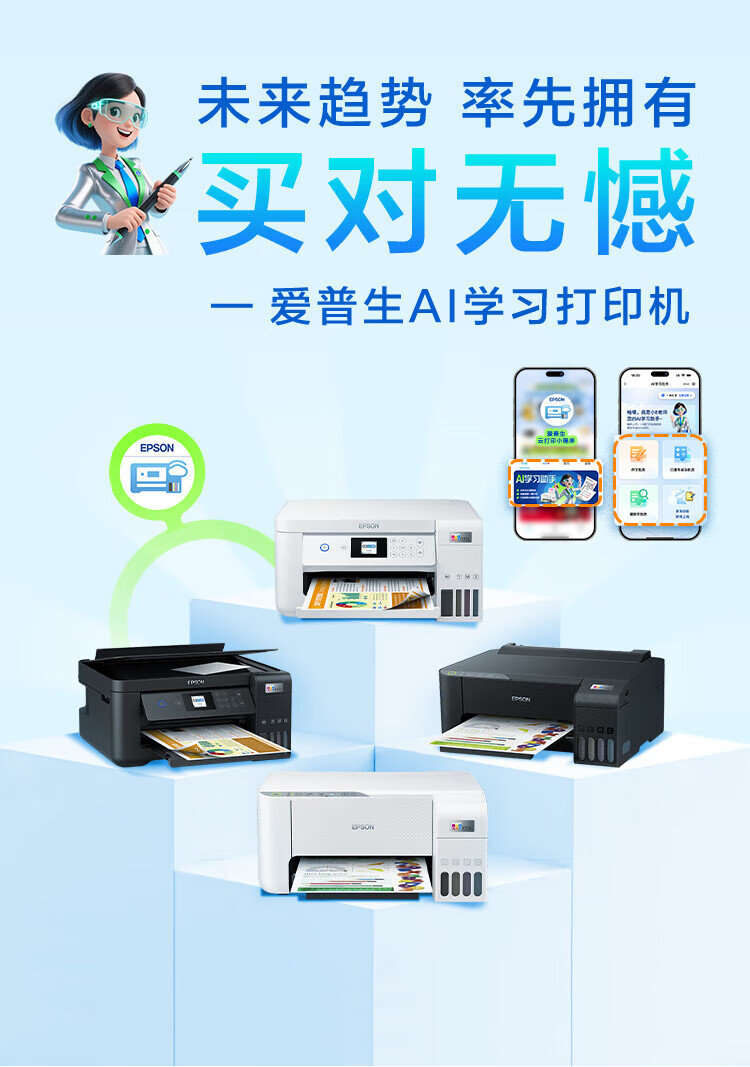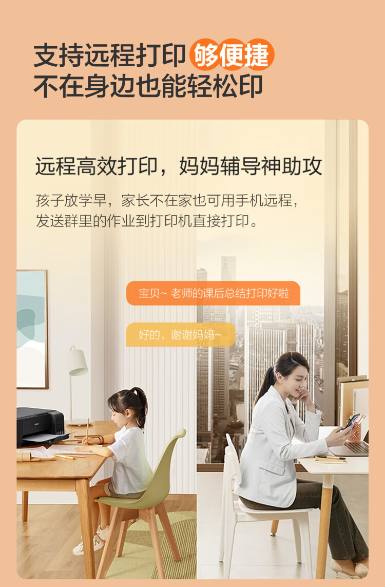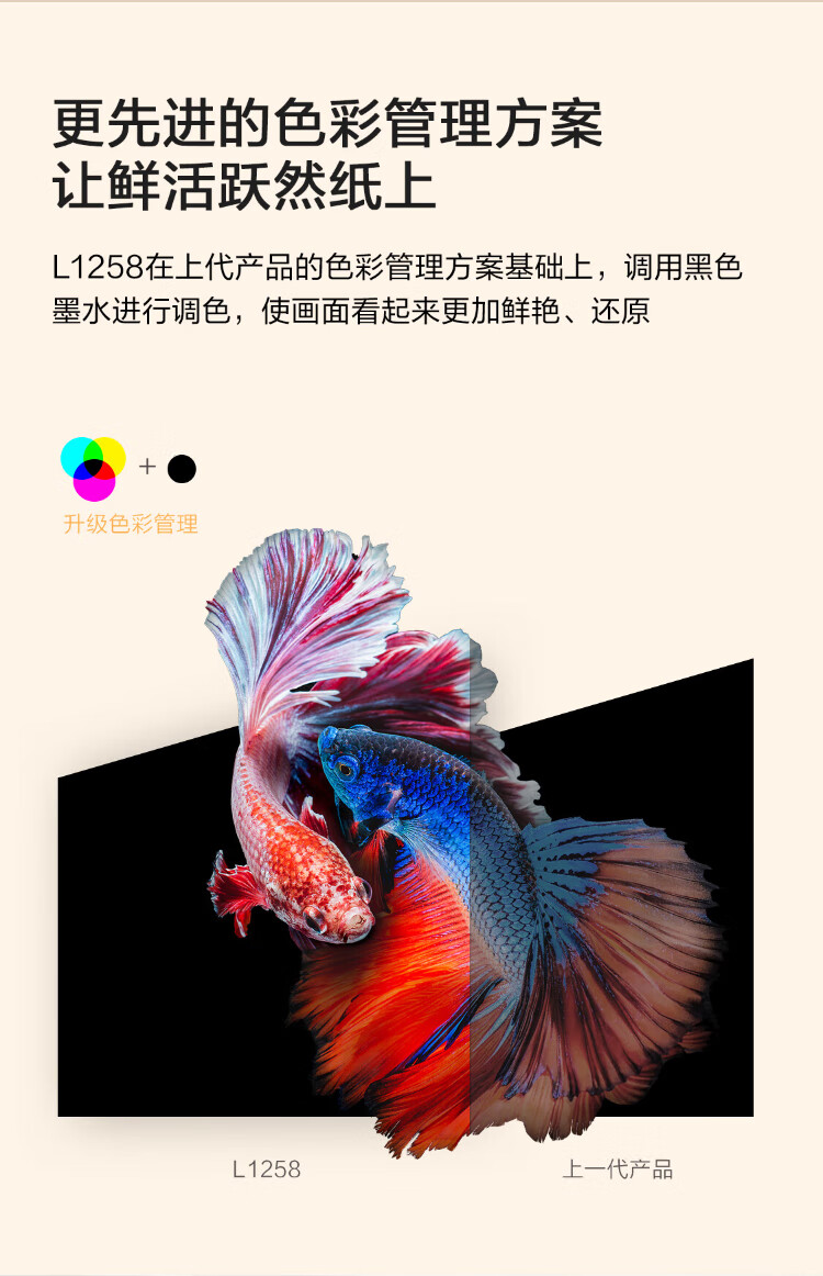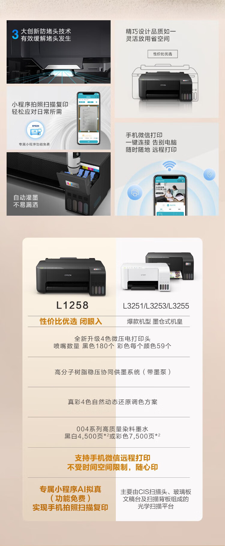 Epson ink tank L1258 A4 color wireless single-function home printer (WeChat/remote printing/AI learning printer)