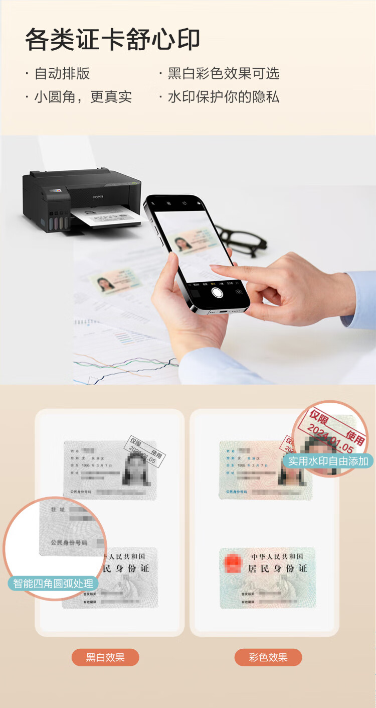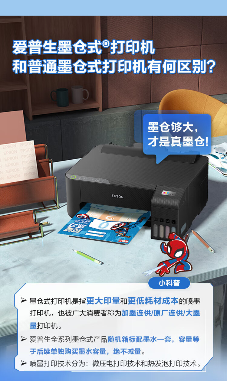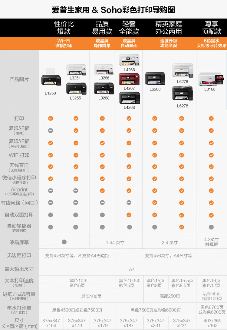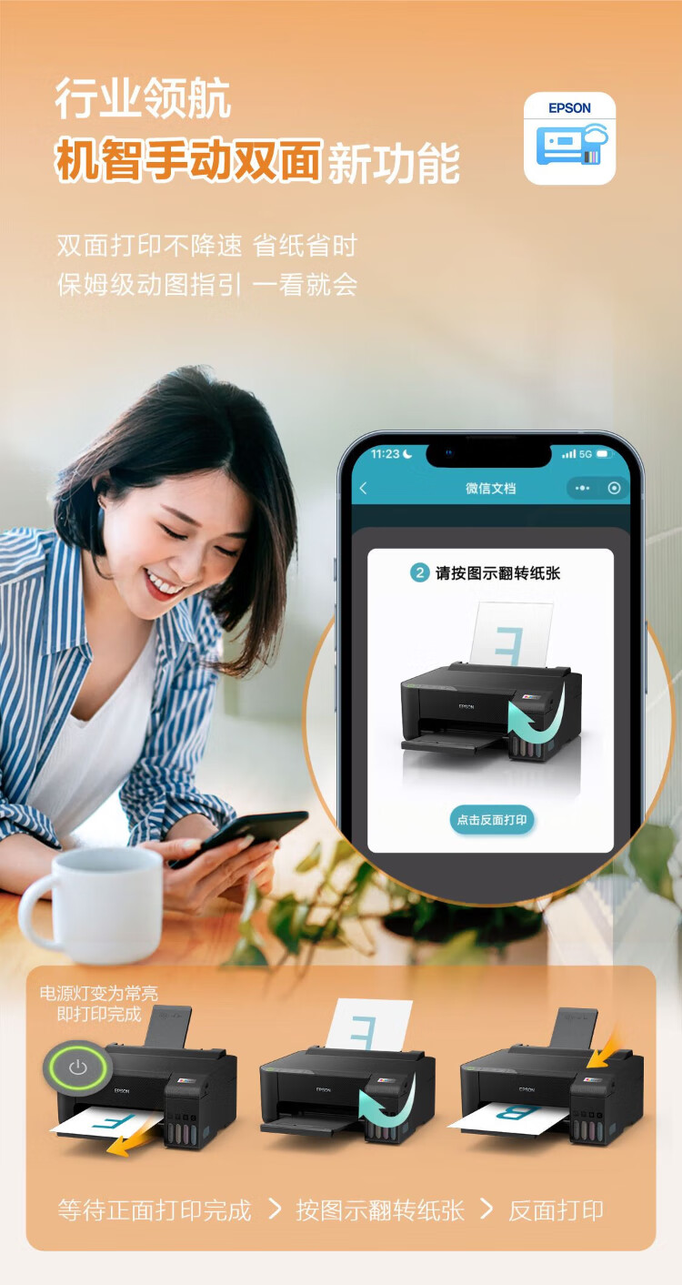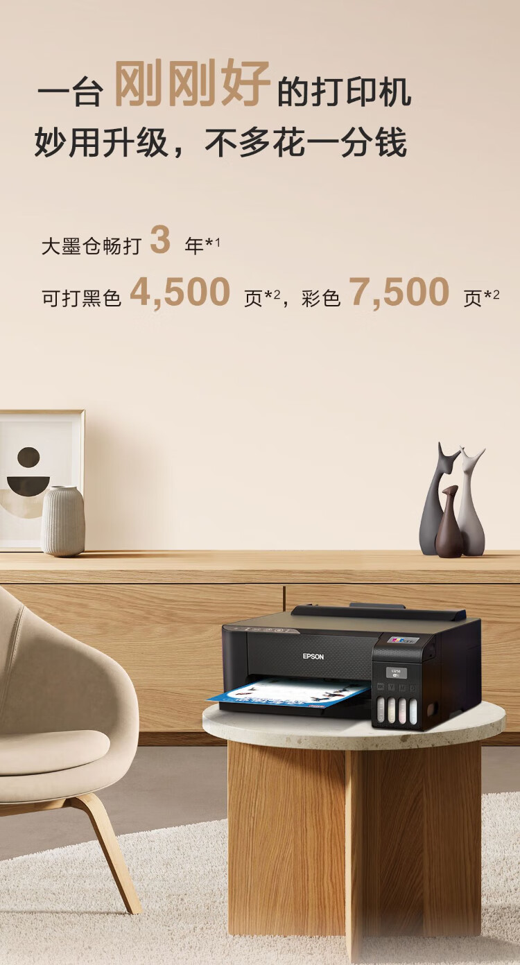 Epson ink tank L1258 A4 color wireless single-function home printer (WeChat/remote printing/AI learning printer)