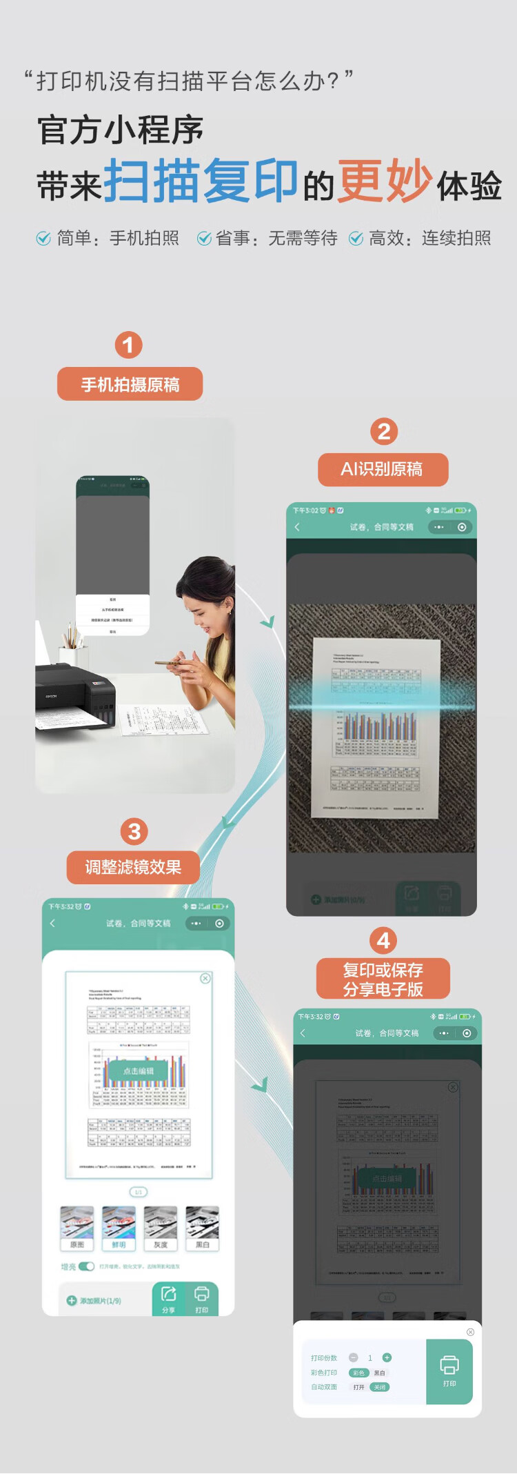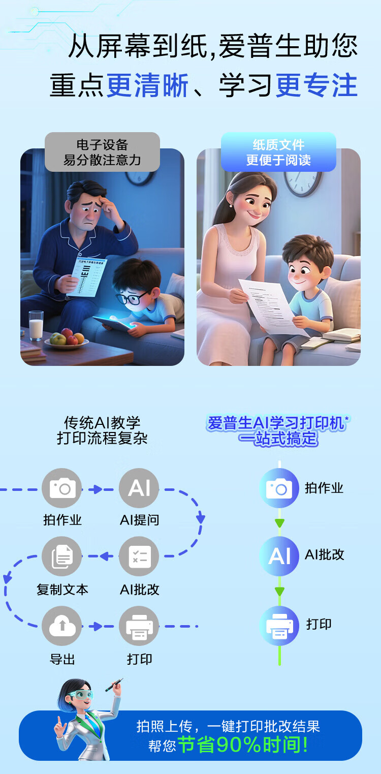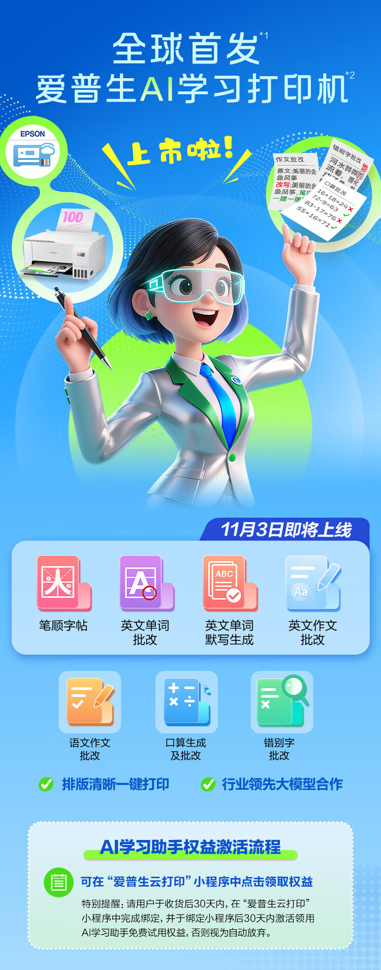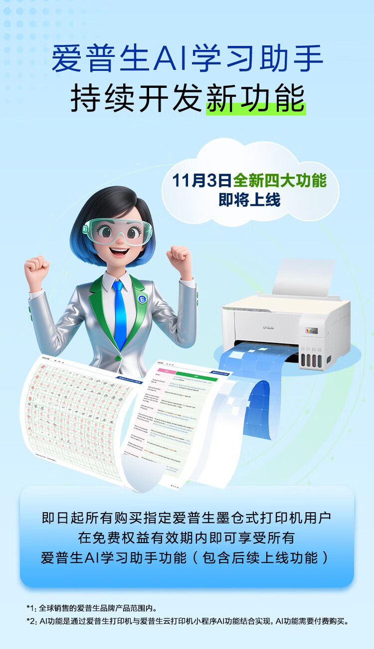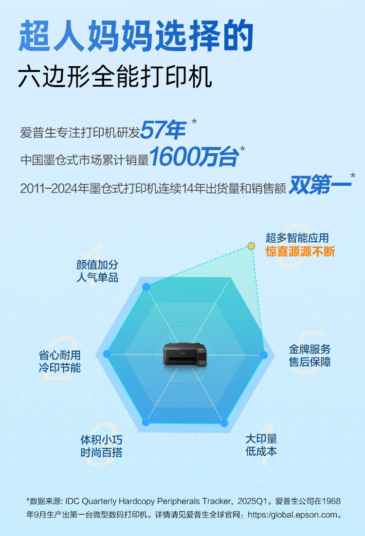 Epson ink tank L1258 A4 color wireless single-function home printer (WeChat/remote printing/AI learning printer)
