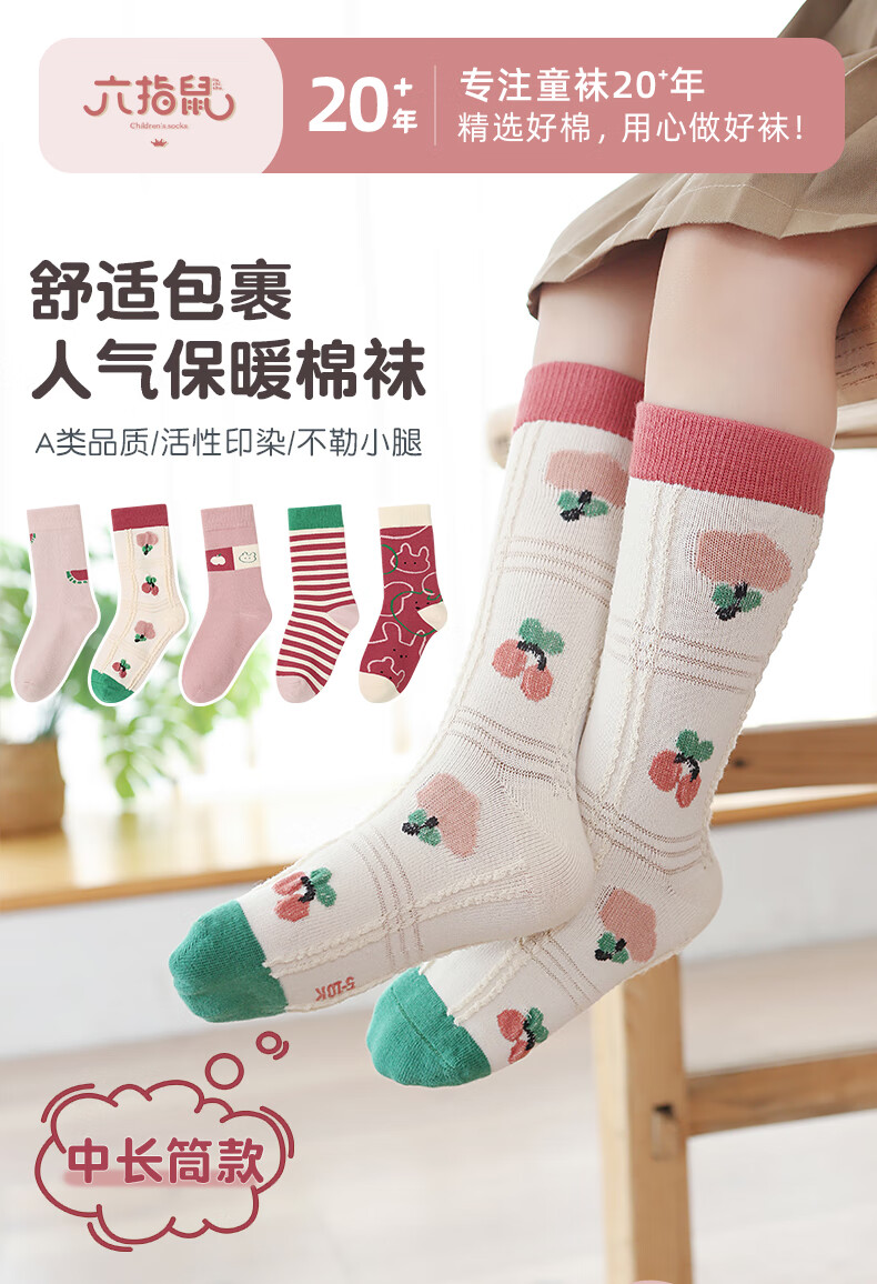 Six-fingered mouse autumn and winter trendy socks ins six-fingered mouse children's socks girls thick cotton socks mid-length baby girl cartoon spring and autumn