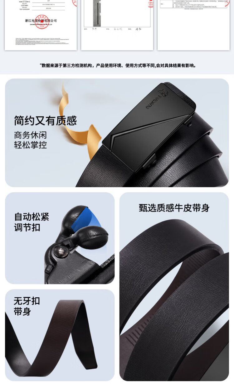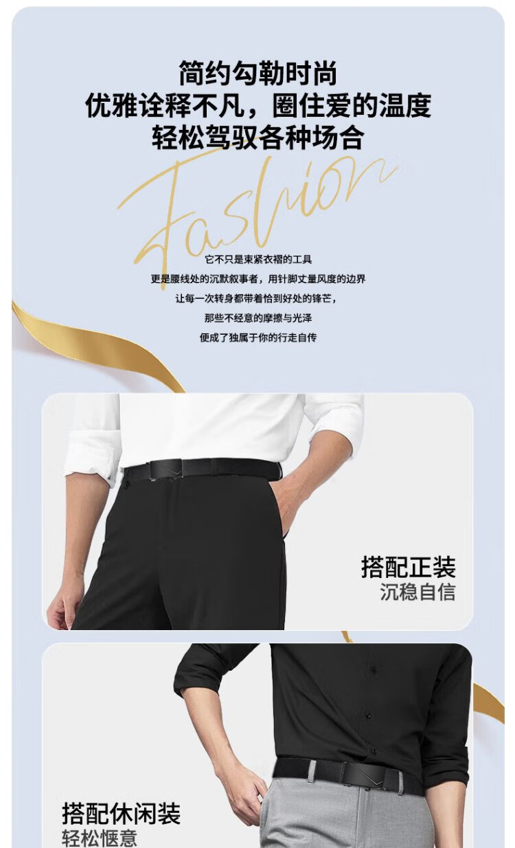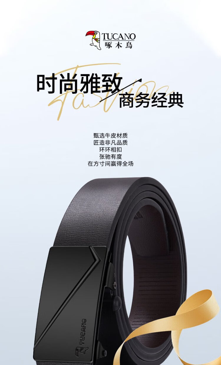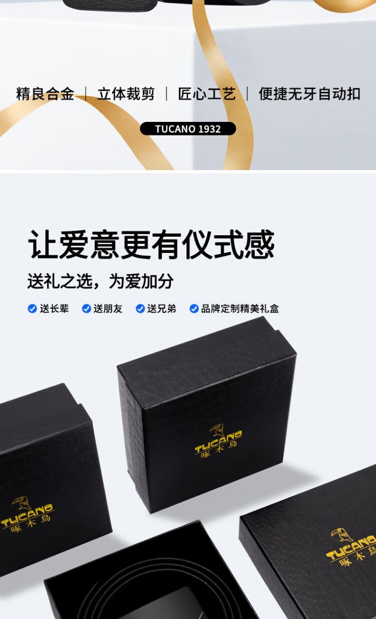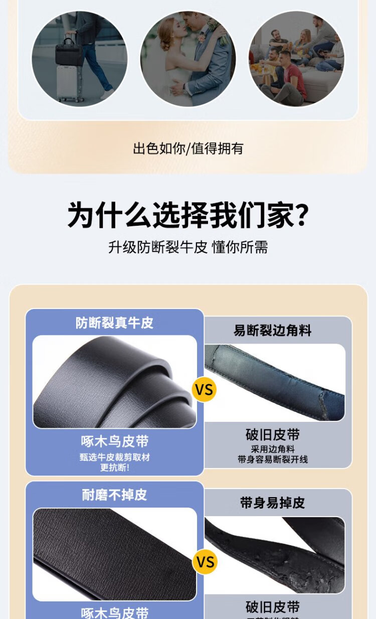 Woodpecker belt men's genuine cowhide toothless inner wear automatic buckle belt simple casual belt trendy birthday gift for boyfriend