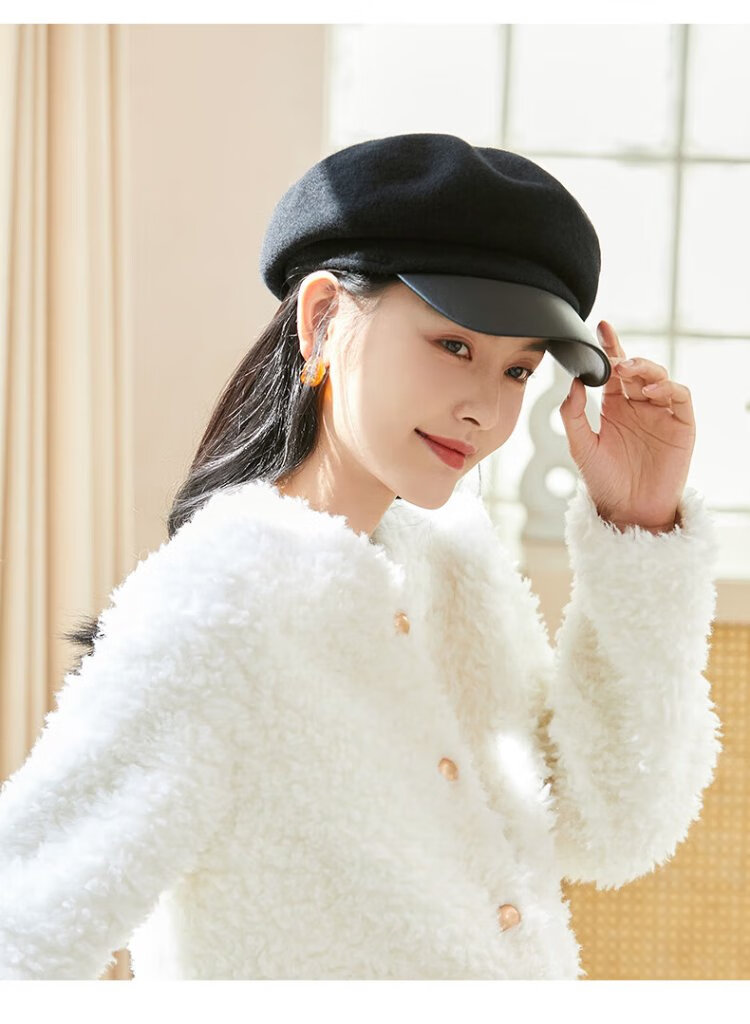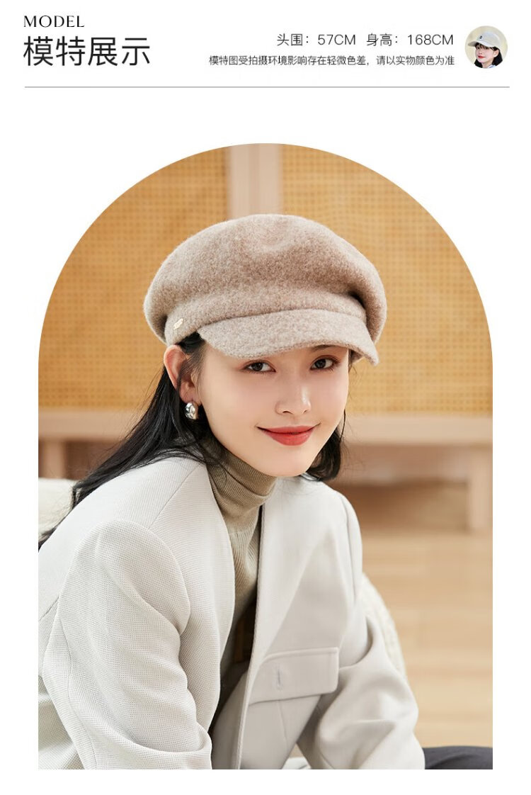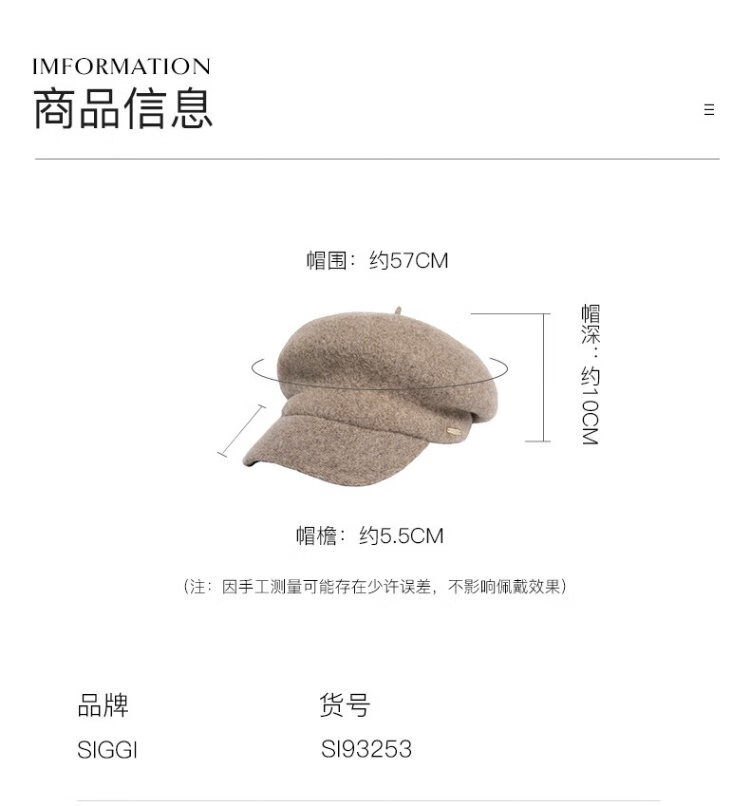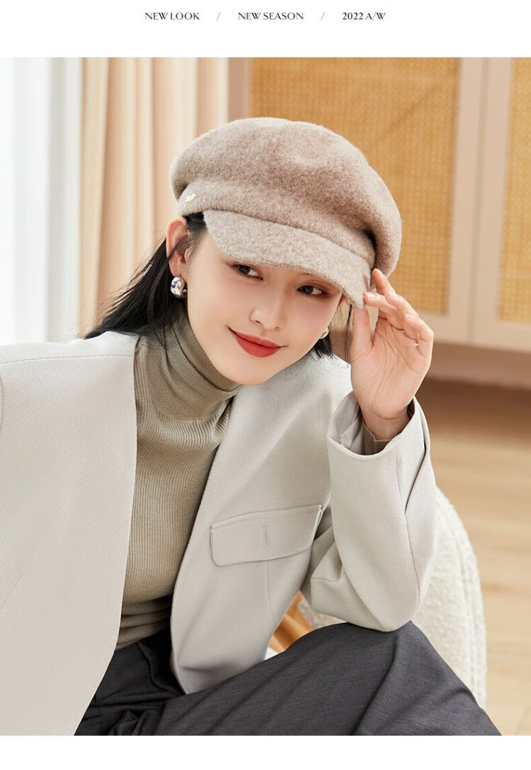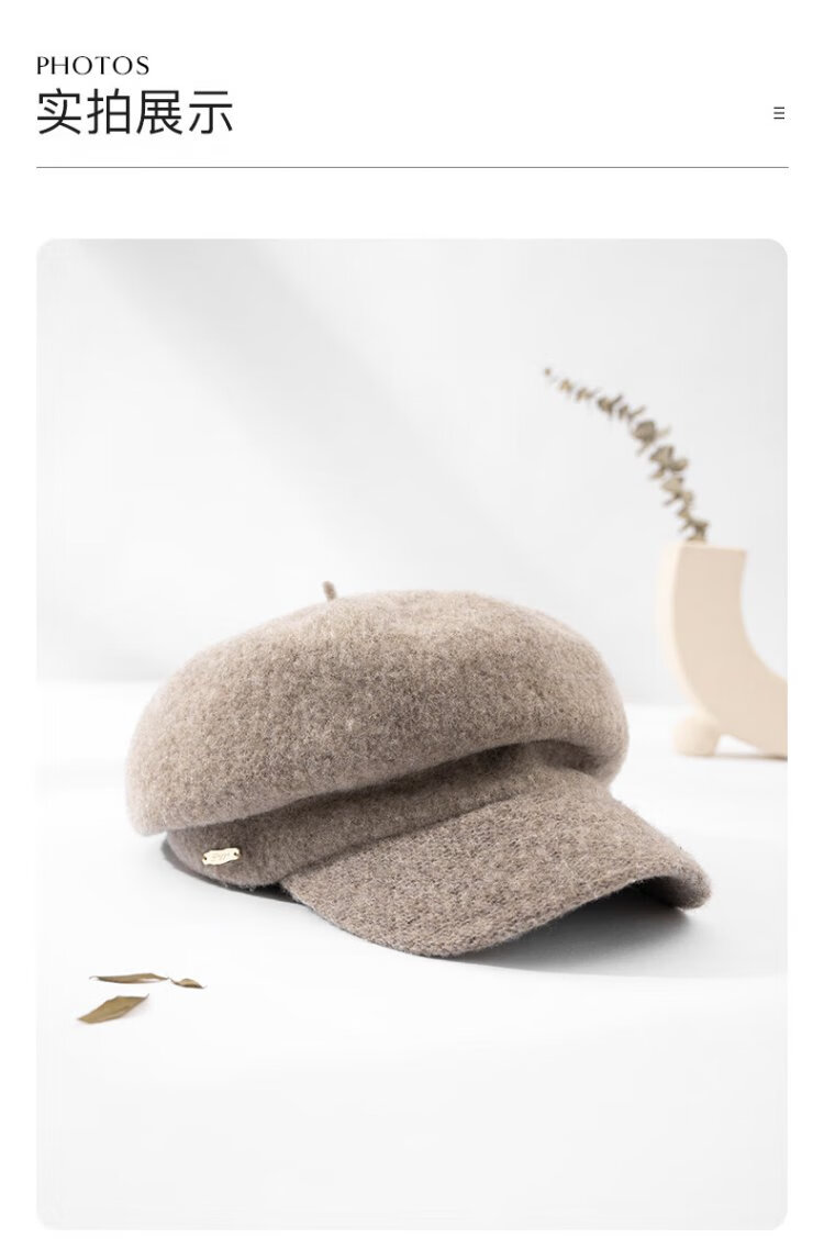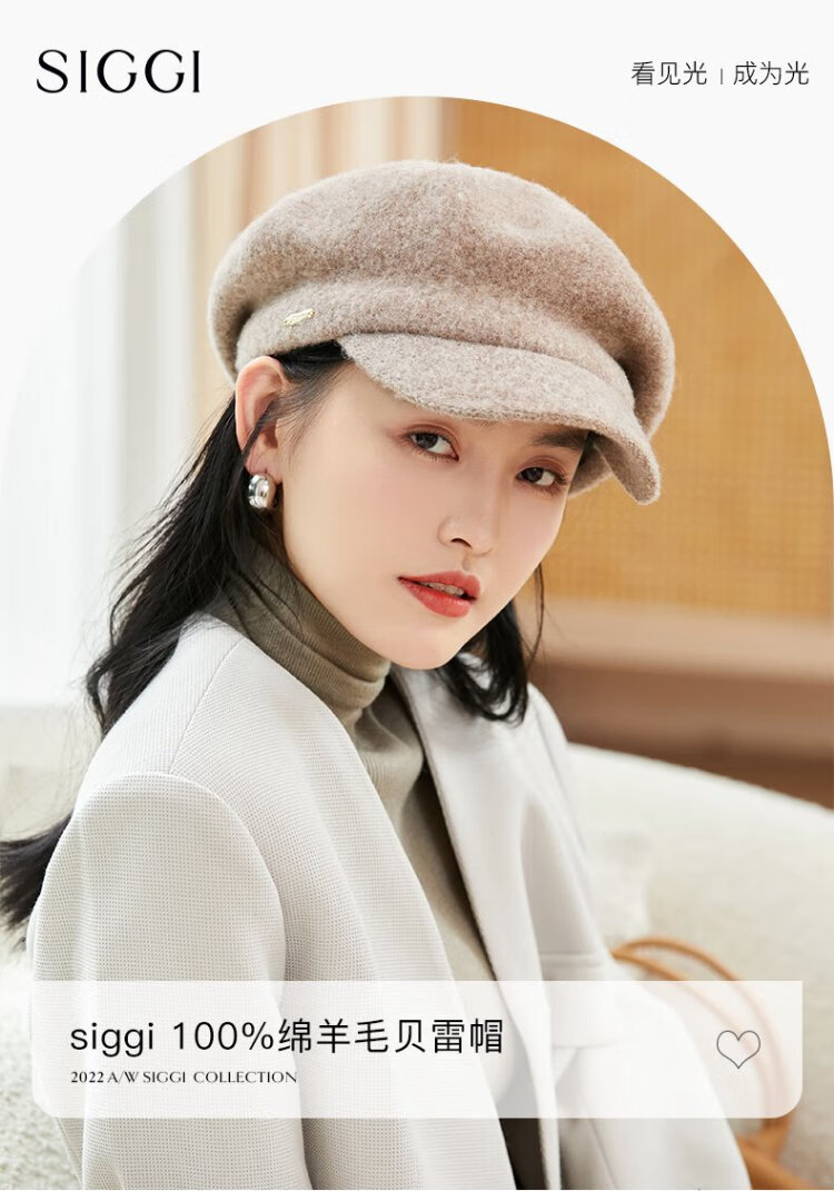 Siggi Hat Women's Autumn and Winter Versatile Sheep Wool Beret Fashion Simple Painter Hat Mocha Brown