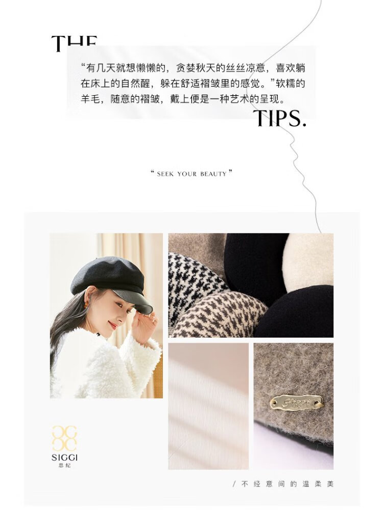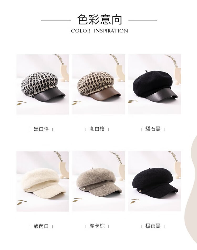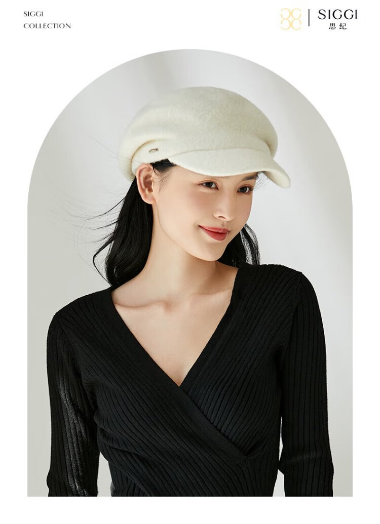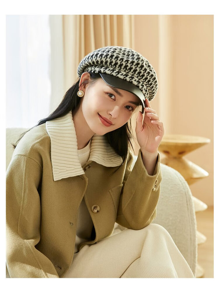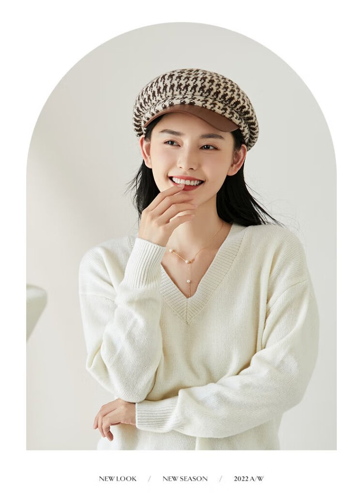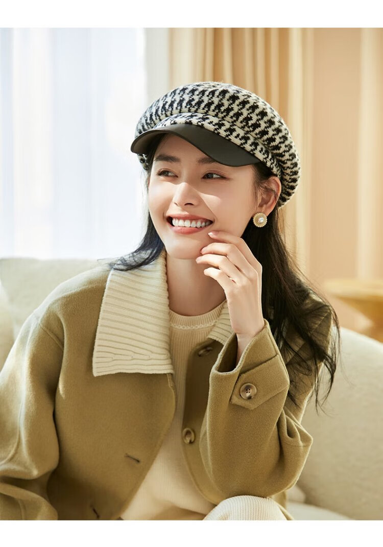 Siggi Hat Women's Autumn and Winter Versatile Sheep Wool Beret Fashion Simple Painter Hat Mocha Brown