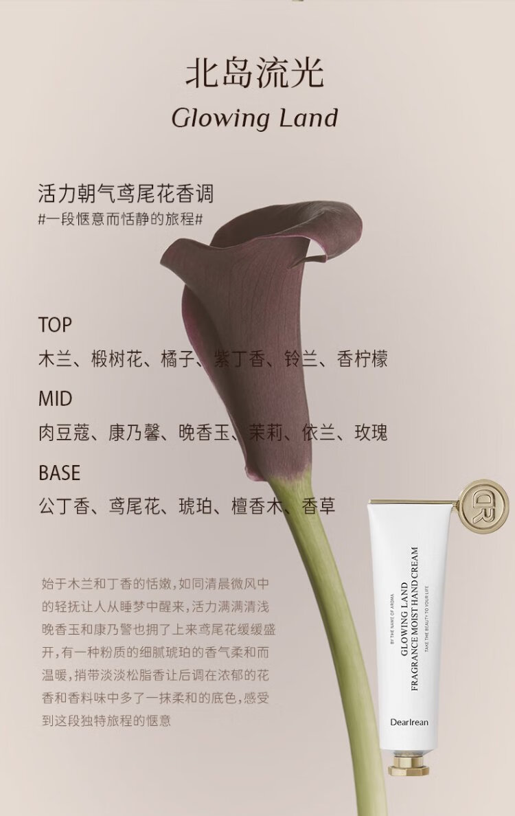 Unique Erin (Dear lrean) Feng Jianyu recommends fragrance hand cream Beidao Liuguang 35ml moisturizing and fragrant moisturizing cream with non-sticky texture