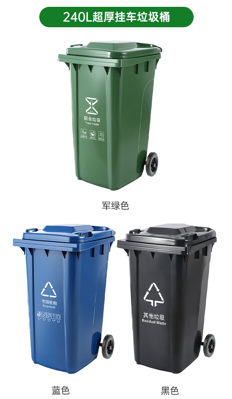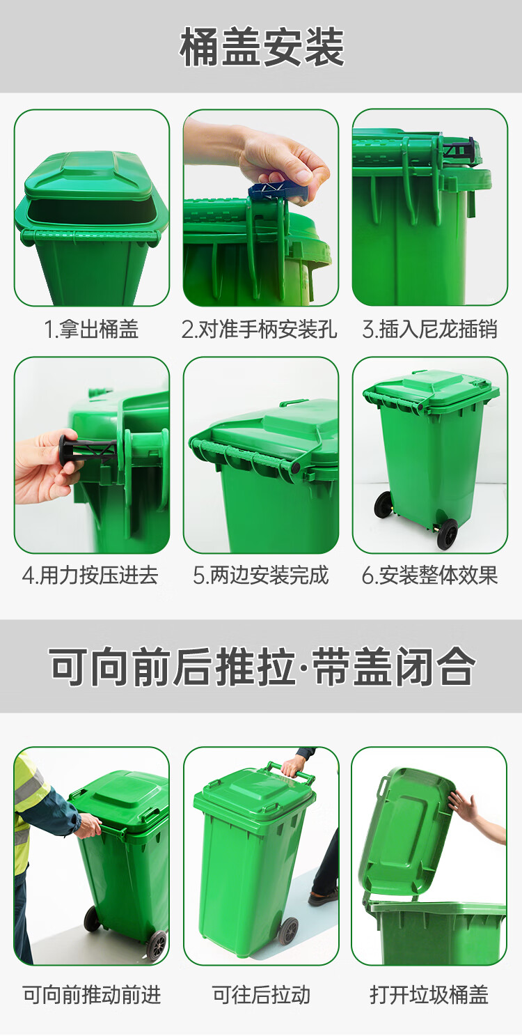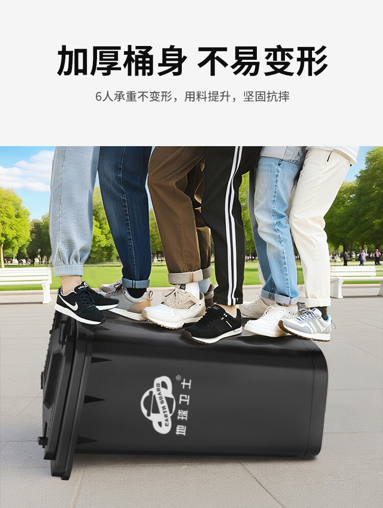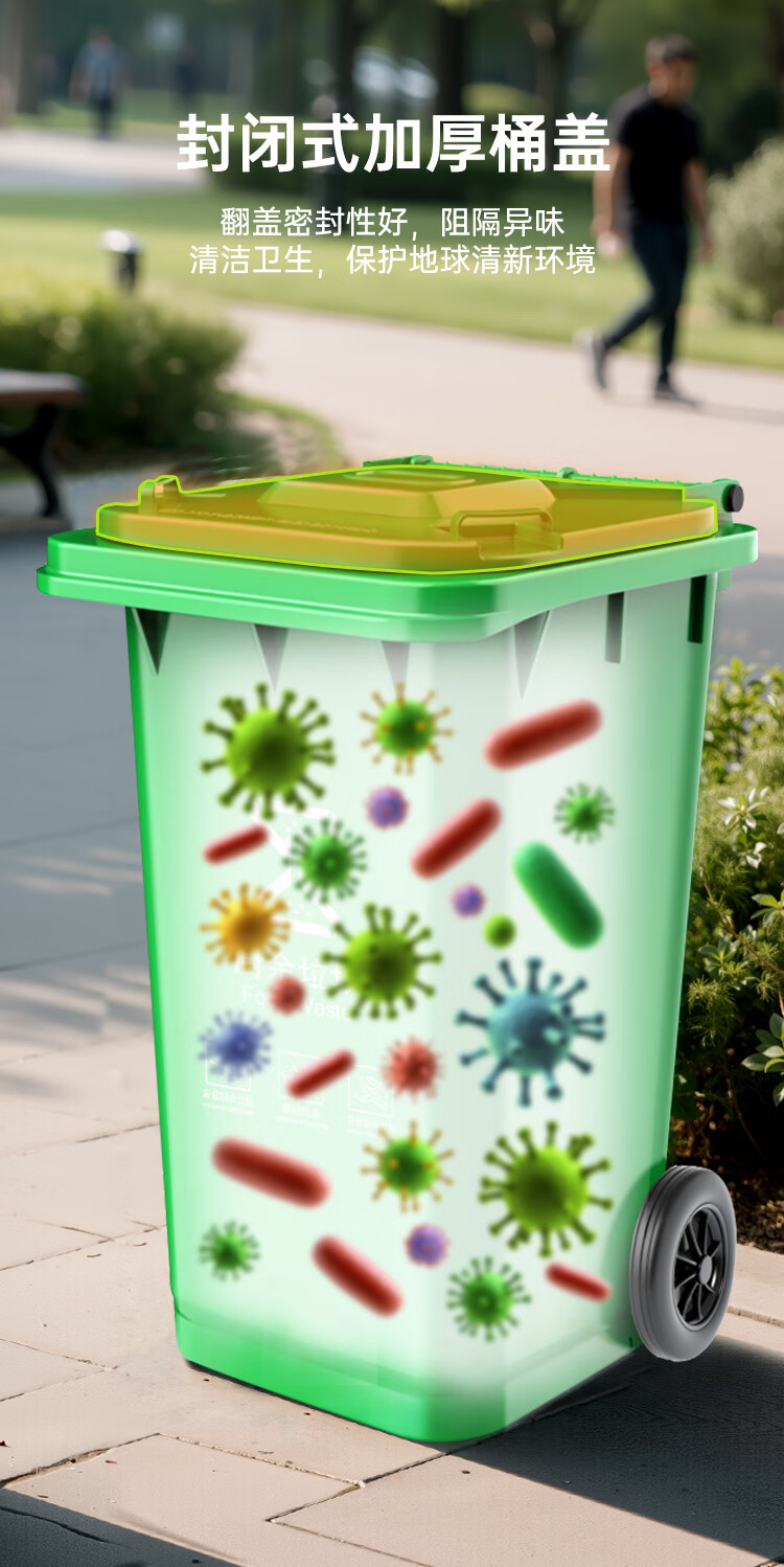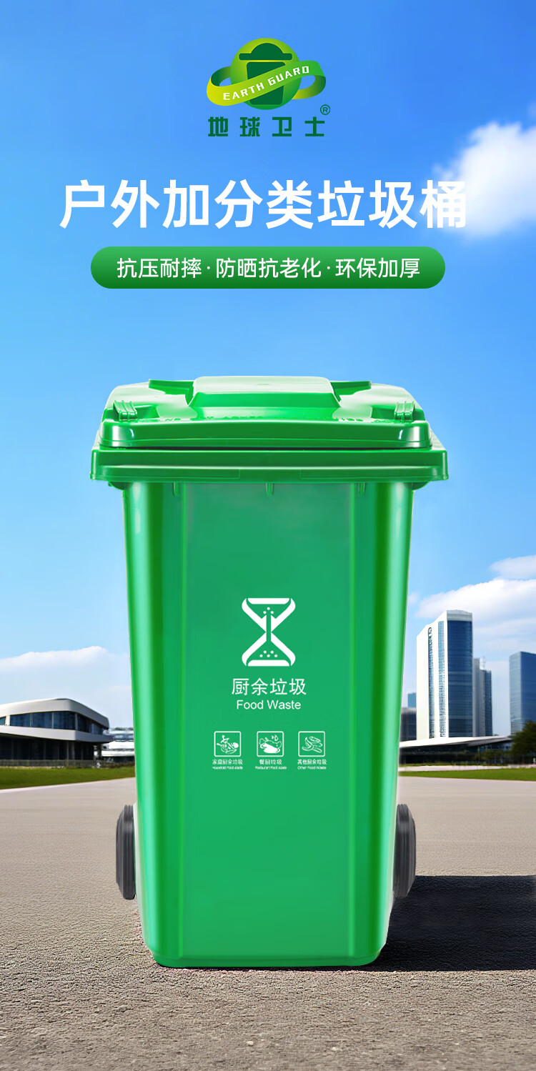 Earth Guardian 240L thickened trailer outdoor large trash can with wheel cover outdoor sanitation hotel kitchen waste classification large capacity outdoor property trash can green customizable