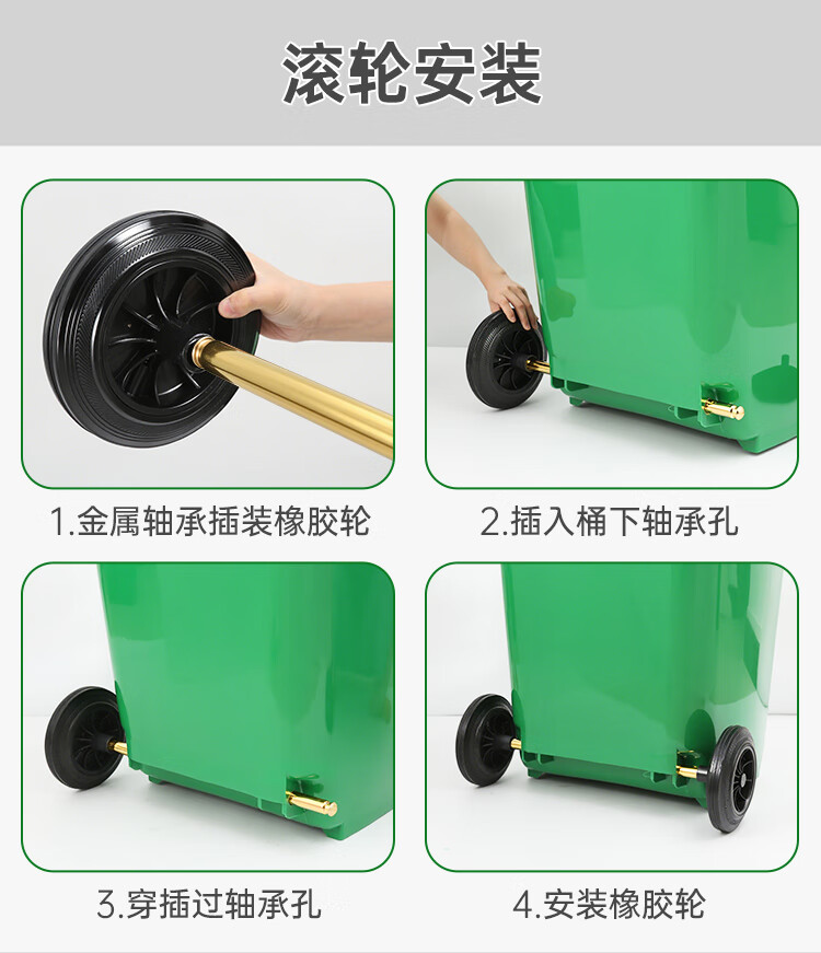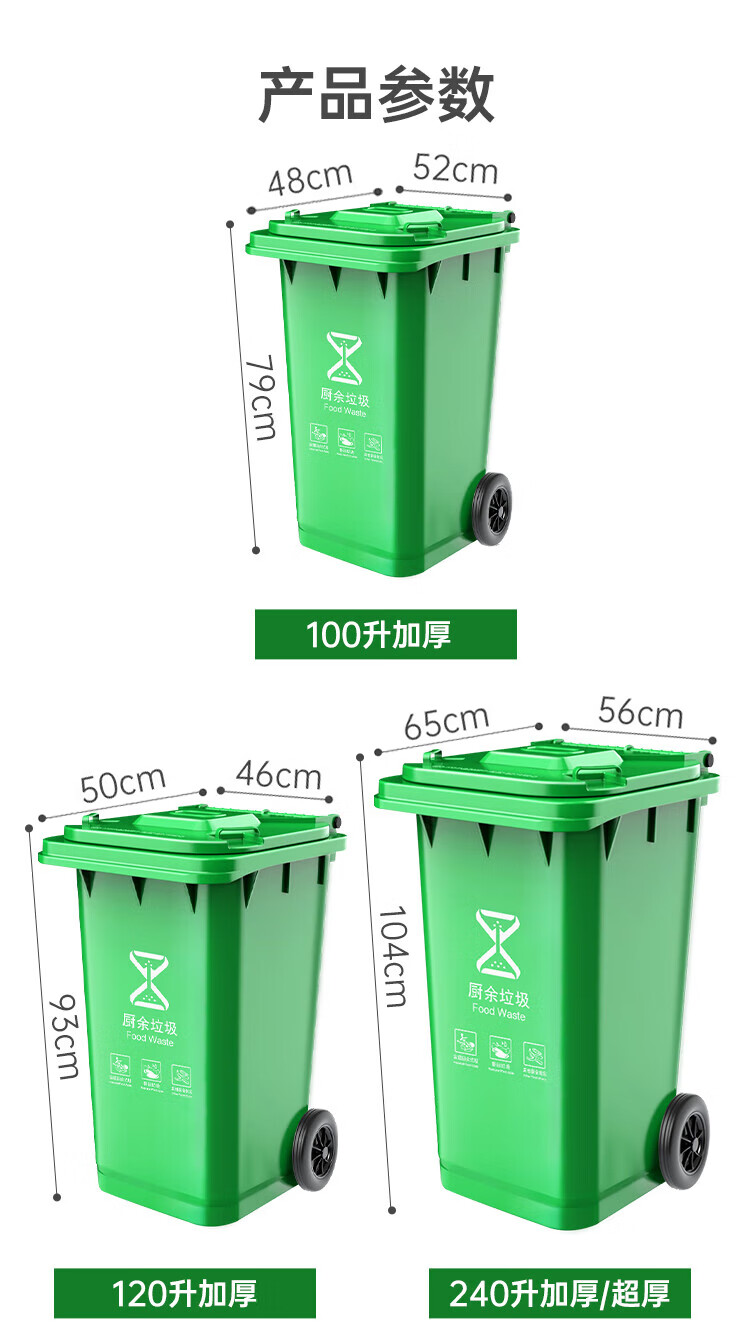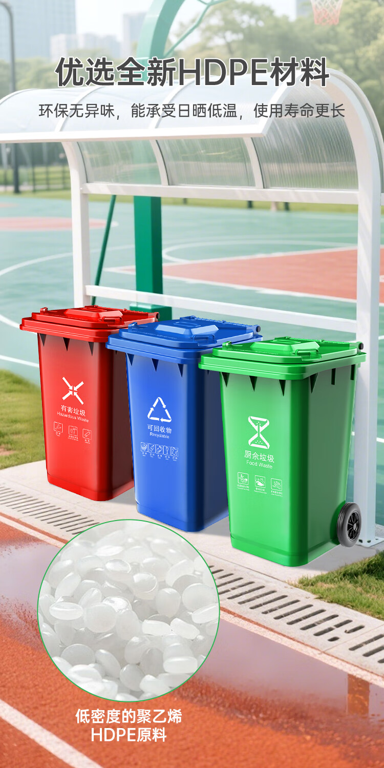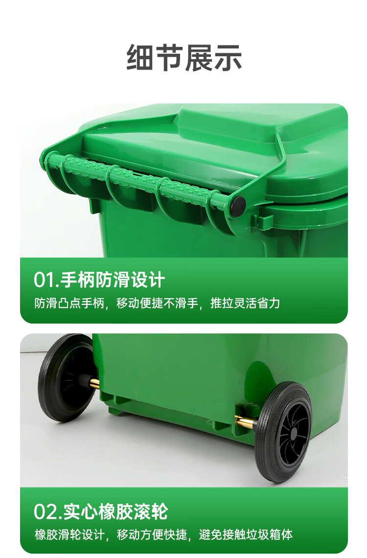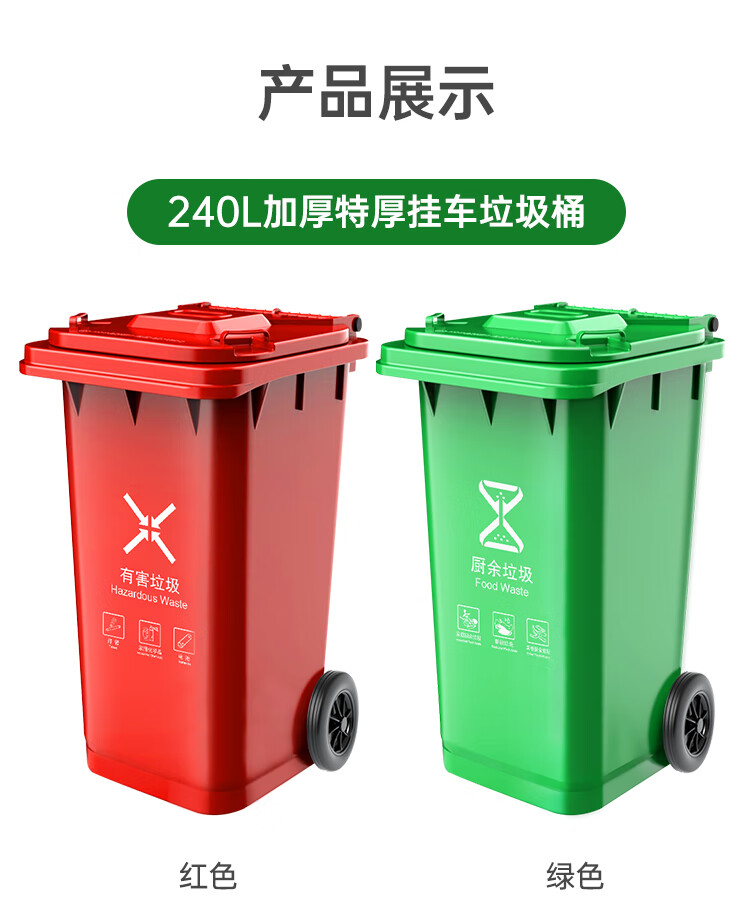 Earth Guardian 240L thickened trailer outdoor large trash can with wheel cover outdoor sanitation hotel kitchen waste classification large capacity outdoor property trash can green customizable
