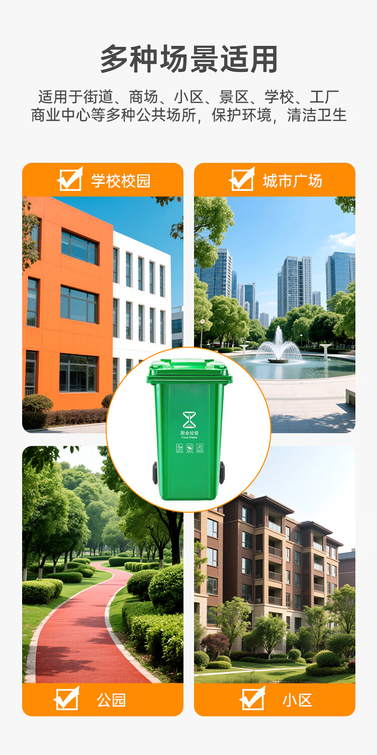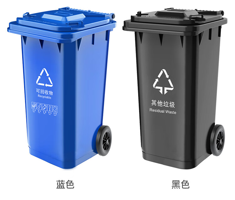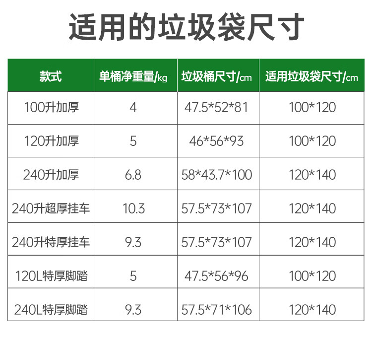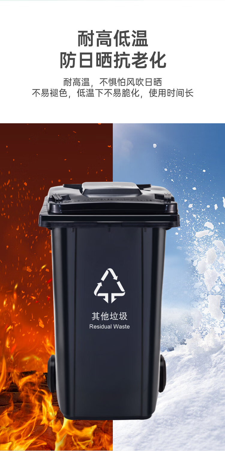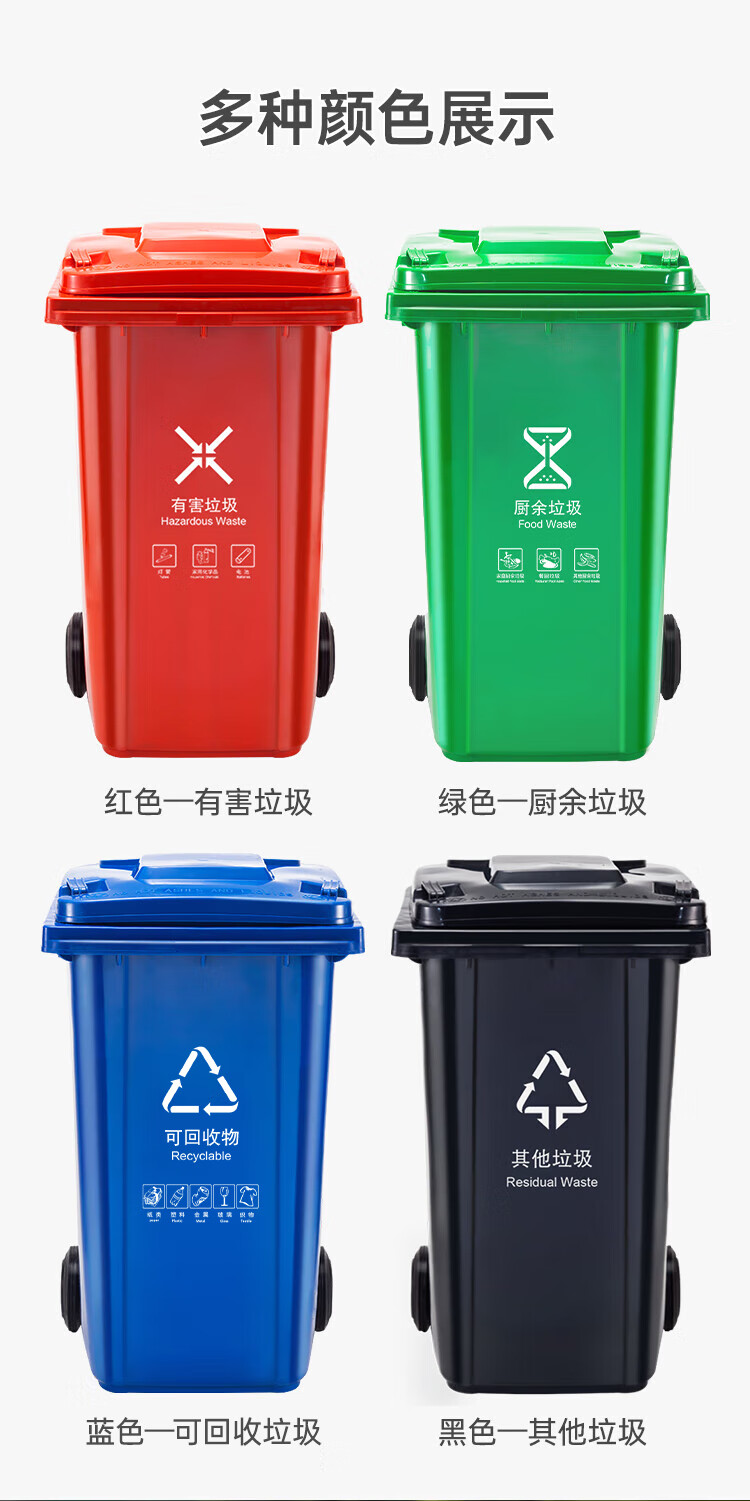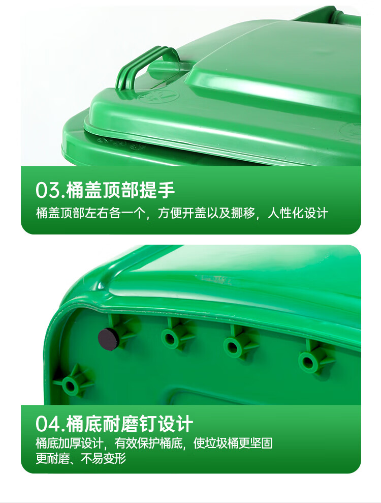 Earth Guardian 240L thickened trailer outdoor large trash can with wheel cover outdoor sanitation hotel kitchen waste classification large capacity outdoor property trash can green customizable