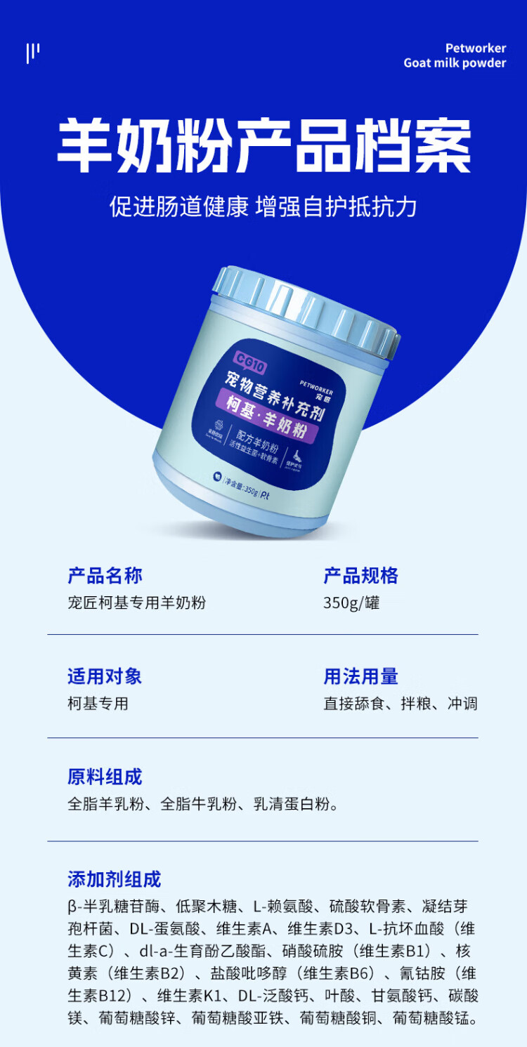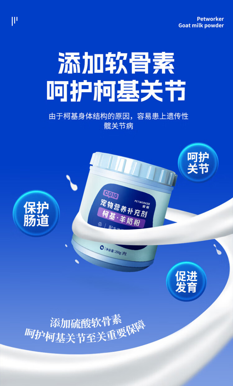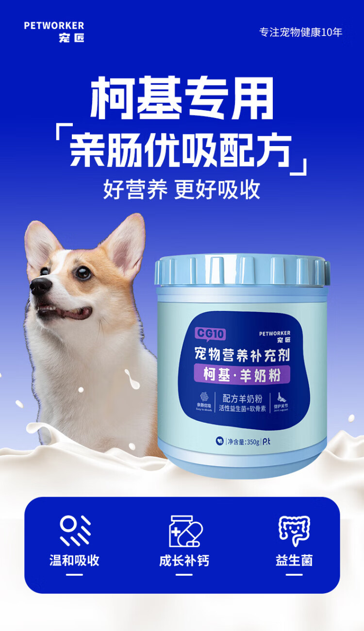 Pet Craftsman Corgi Goat Milk Powder Dog Puppy Milk Powder Pet Special for Adult Dogs and Elderly Dogs Hypoallergenic, Mild and Easy to Absorb 350g