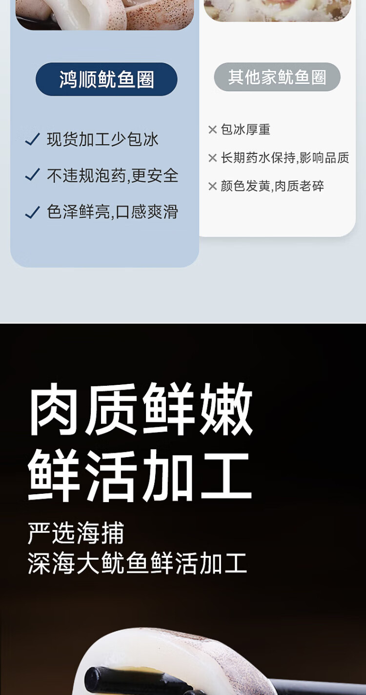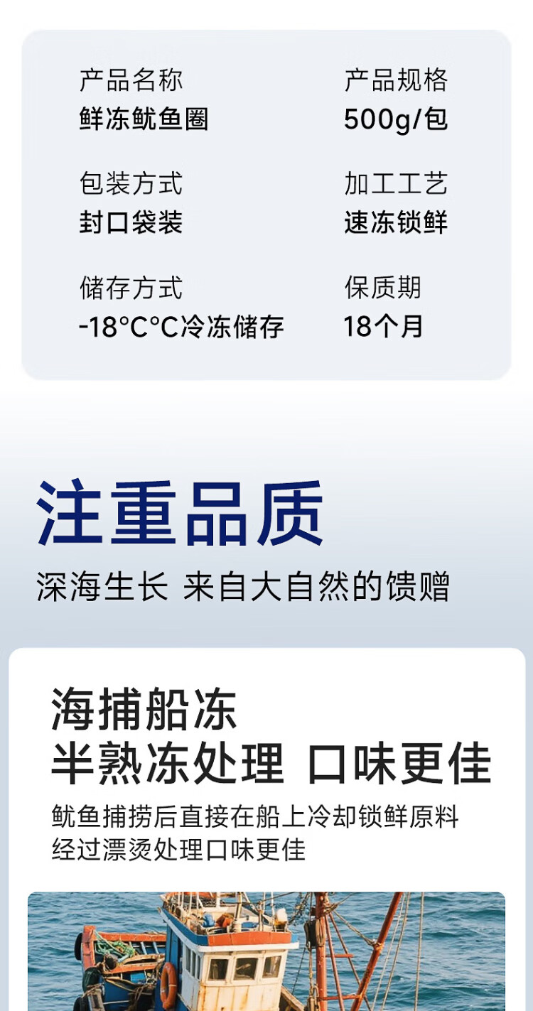 Hongshun Squid Rings 1Jin Jin is equal to 0.5kg, freshly caught and quick-frozen, seafood and aquatic products, barbecue hot pot ingredients, sizzling squid