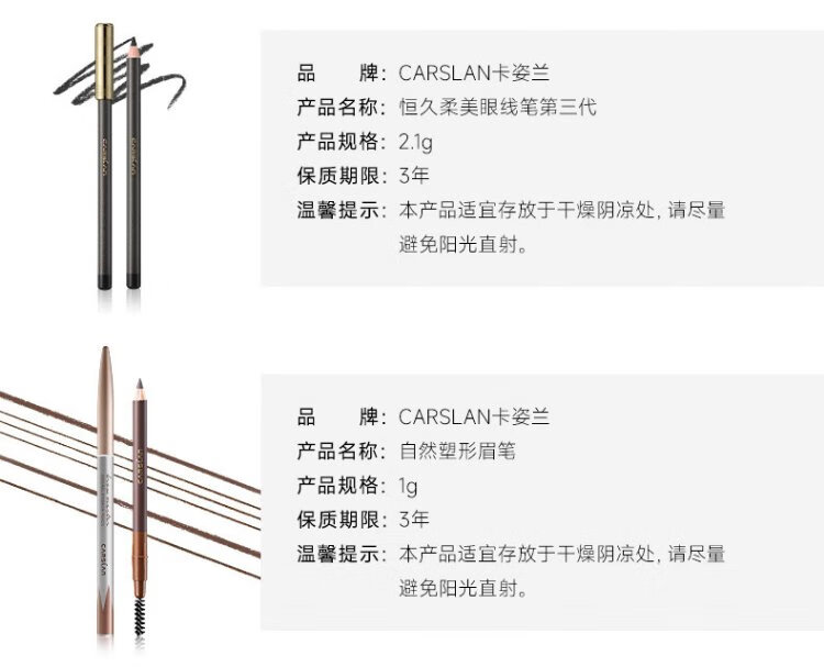 Carslan value-for-money deep eyebrows 2-piece set (natural shaping eyebrow pencil 1g long-lasting eyeliner 2.1g) Christmas gift for women