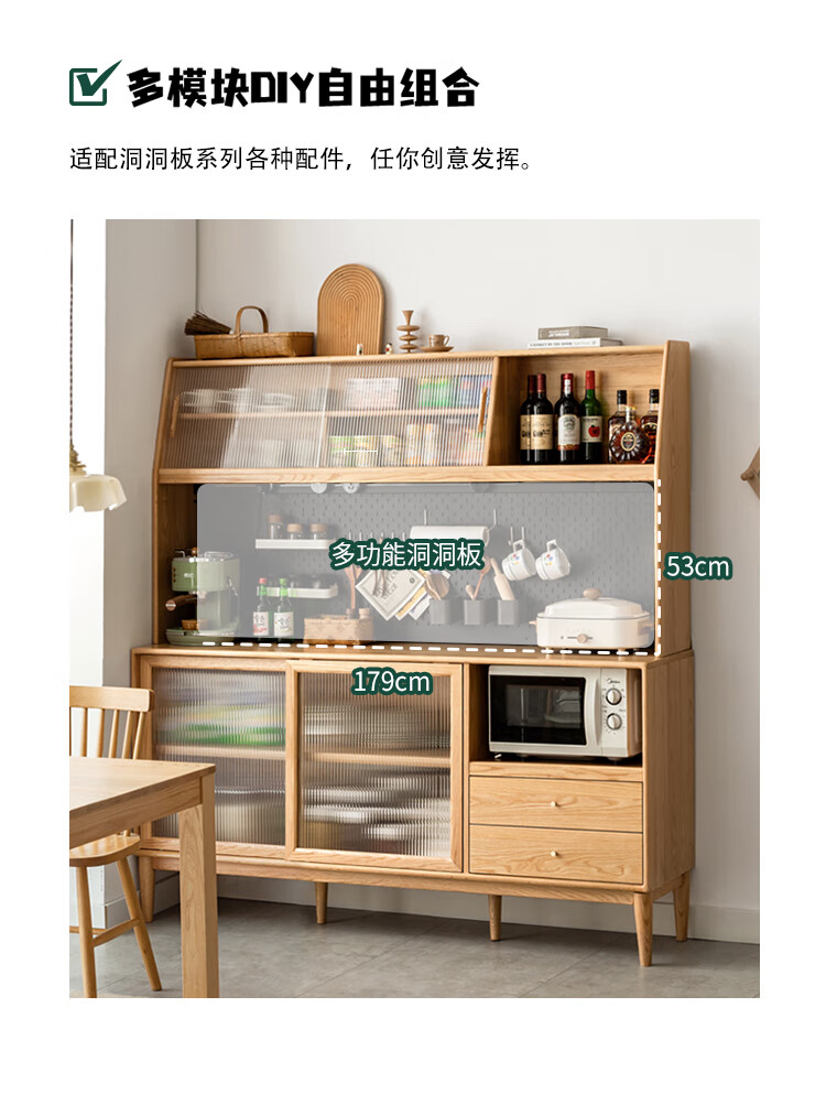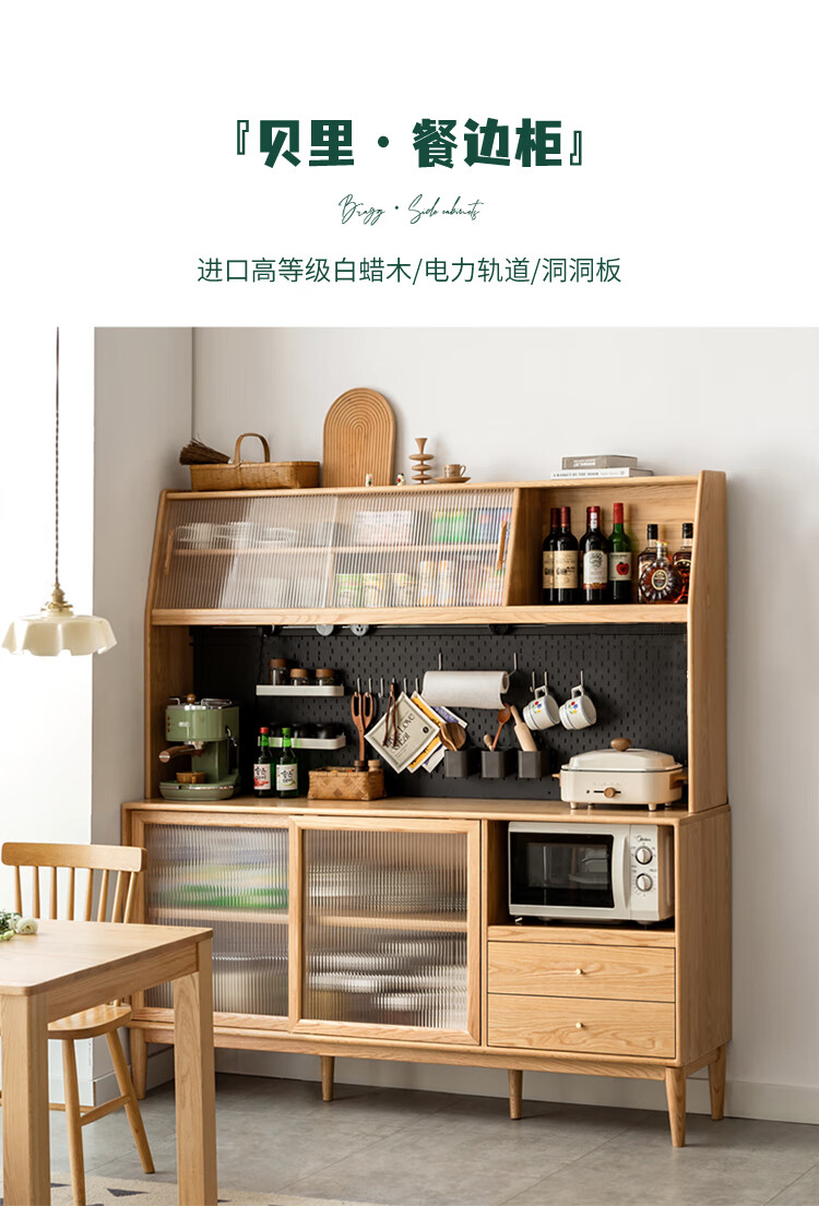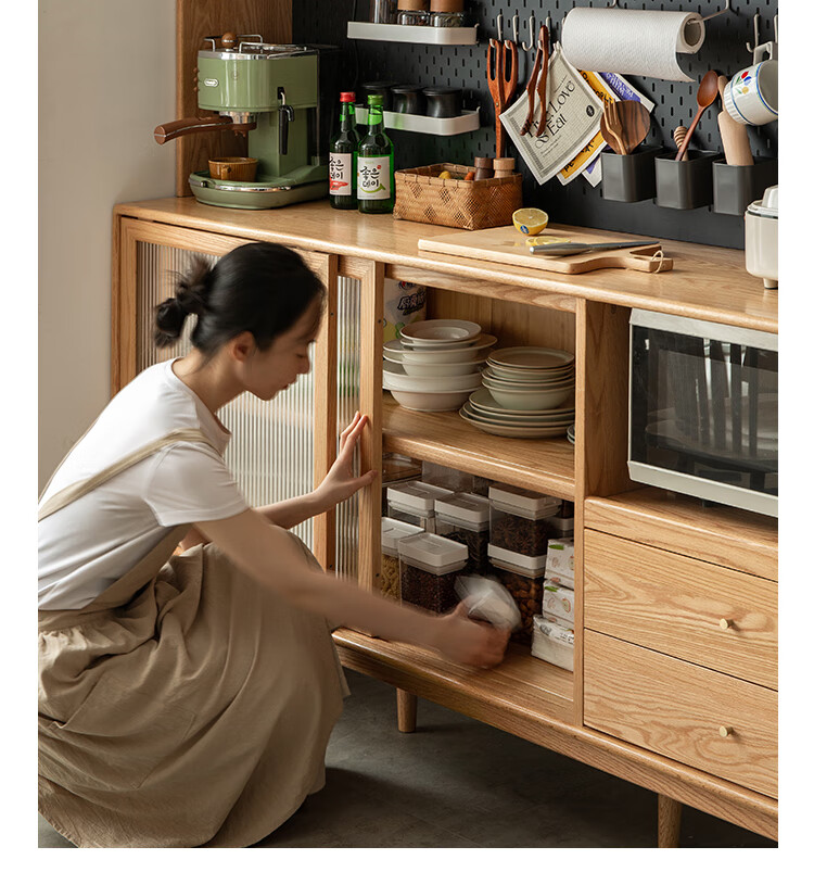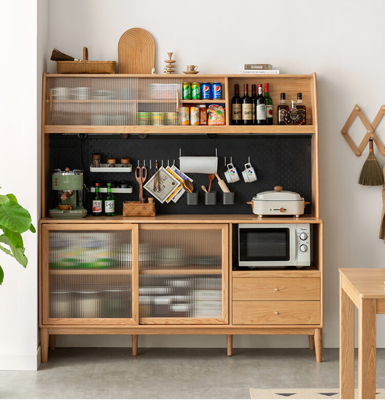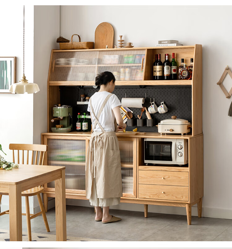 Genji Muyu solid wood sideboard integrated high cabinet tea cabinet multi-functional storage cabinet simple cupboard home wine cabinet