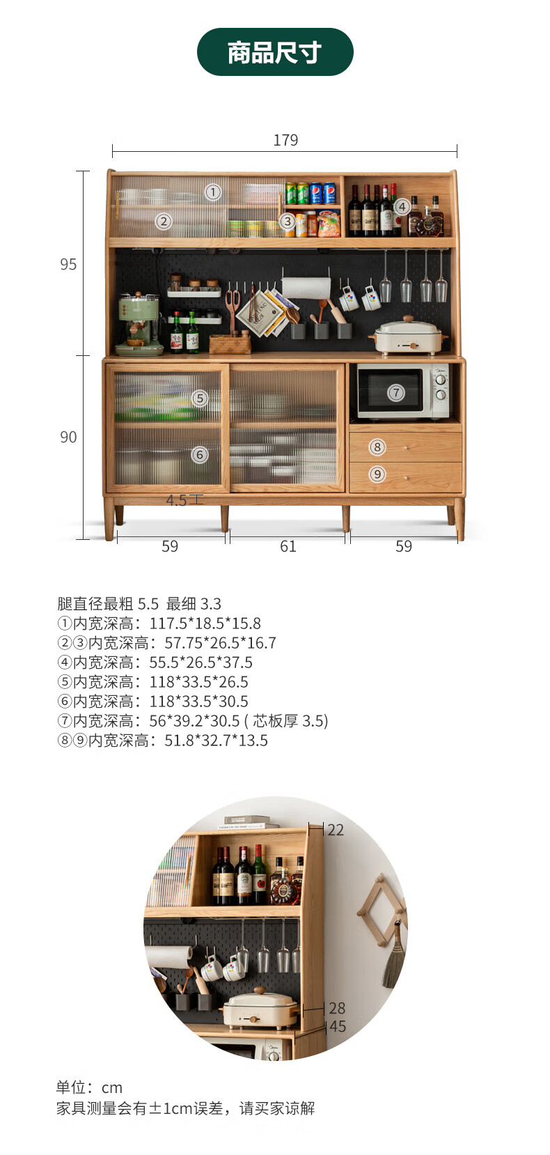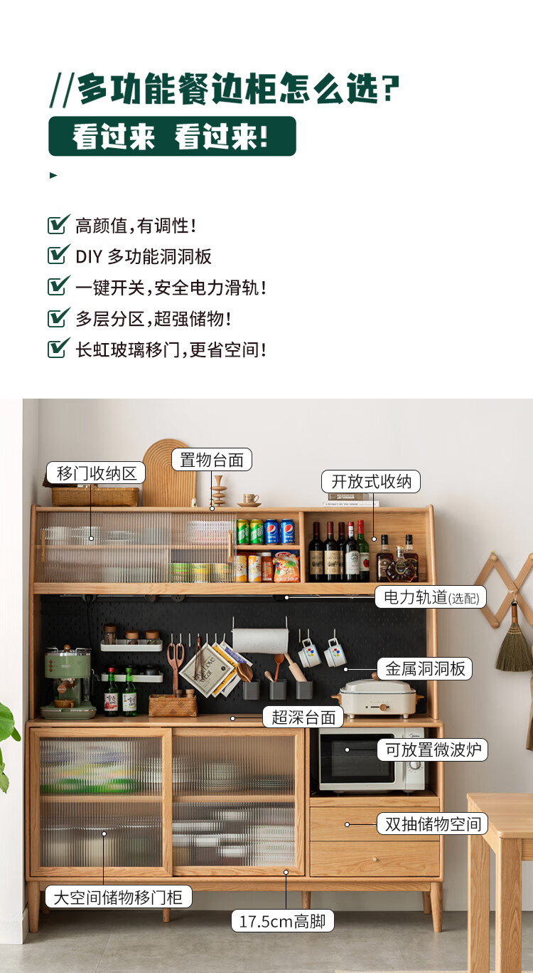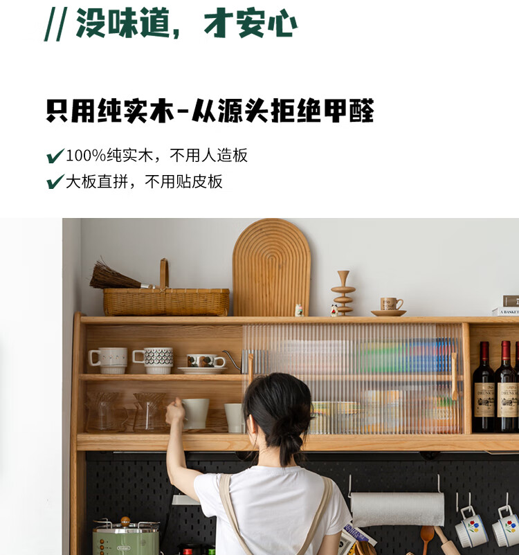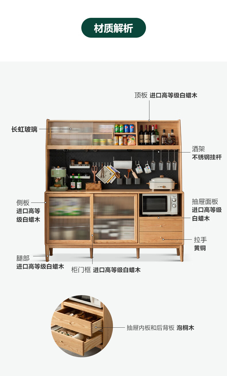 Genji Muyu solid wood sideboard integrated high cabinet tea cabinet multi-functional storage cabinet simple cupboard home wine cabinet