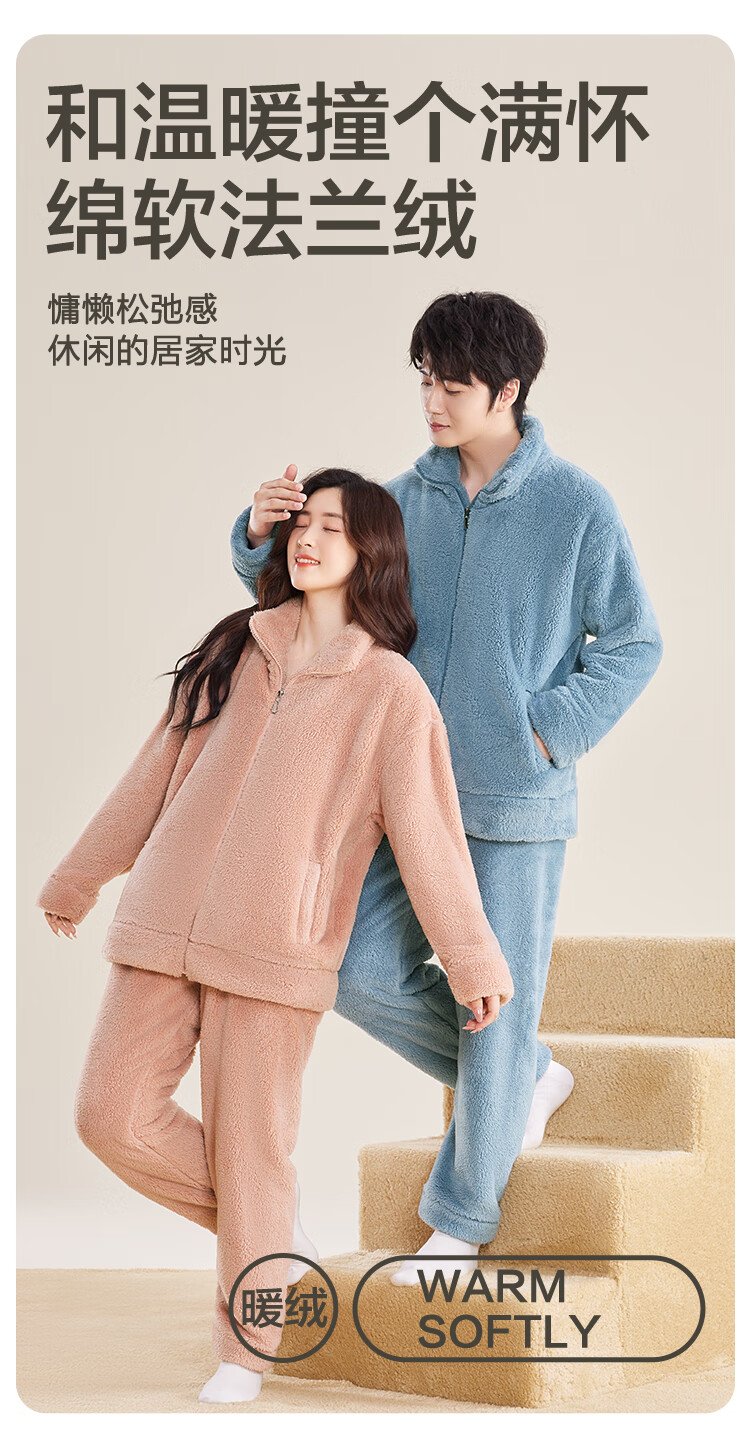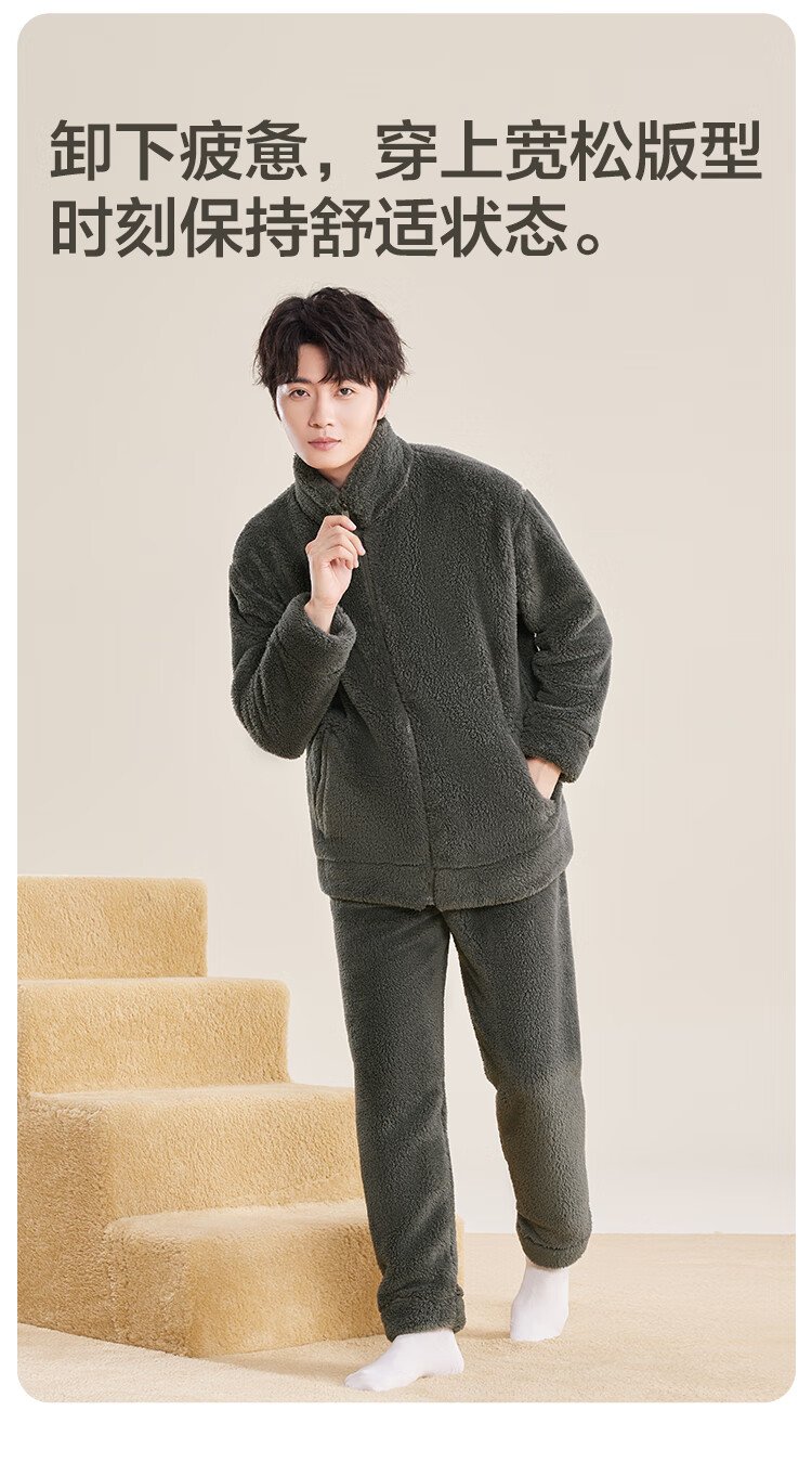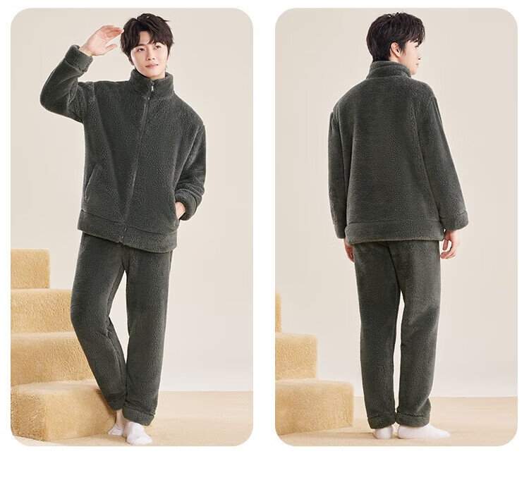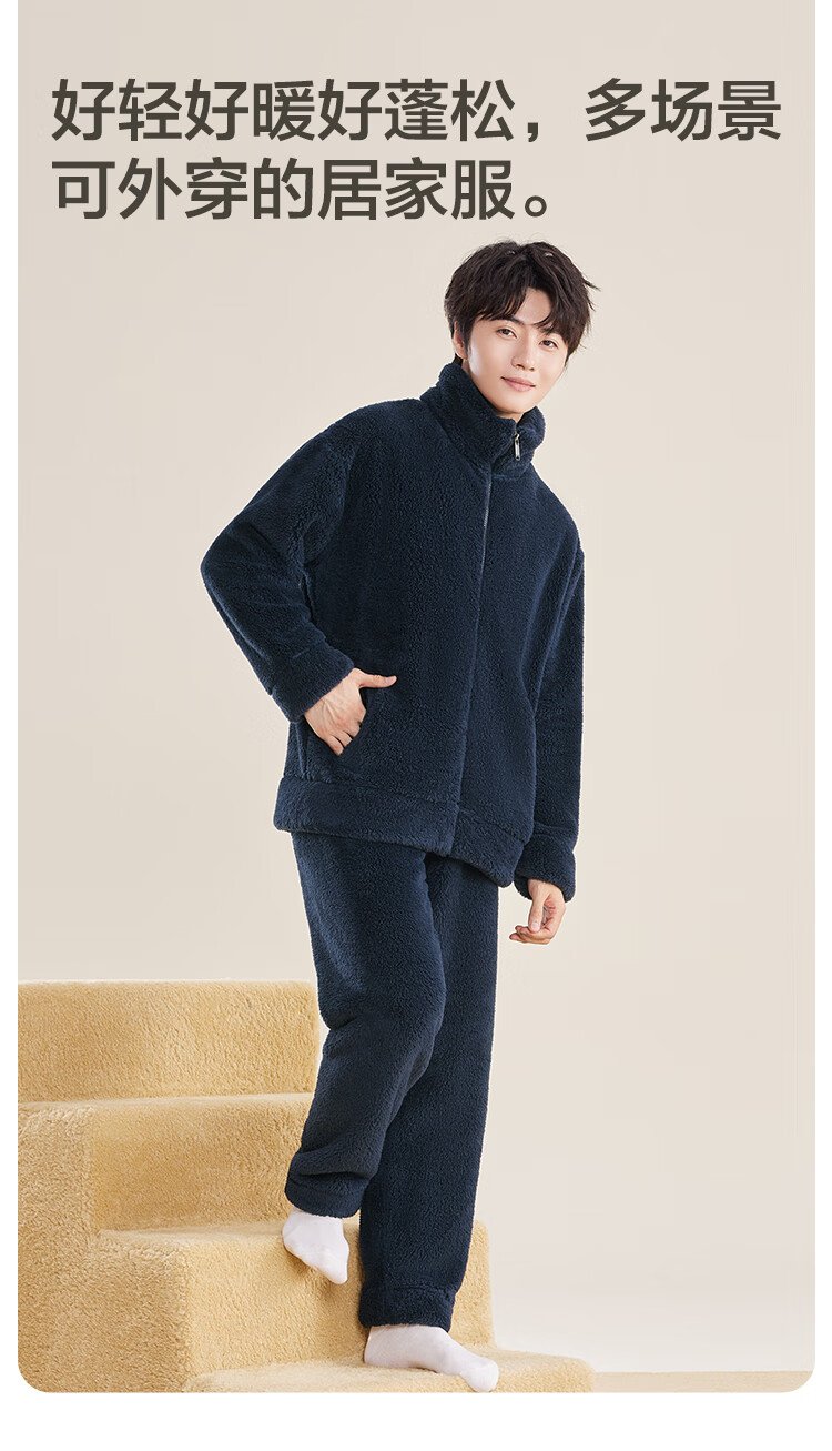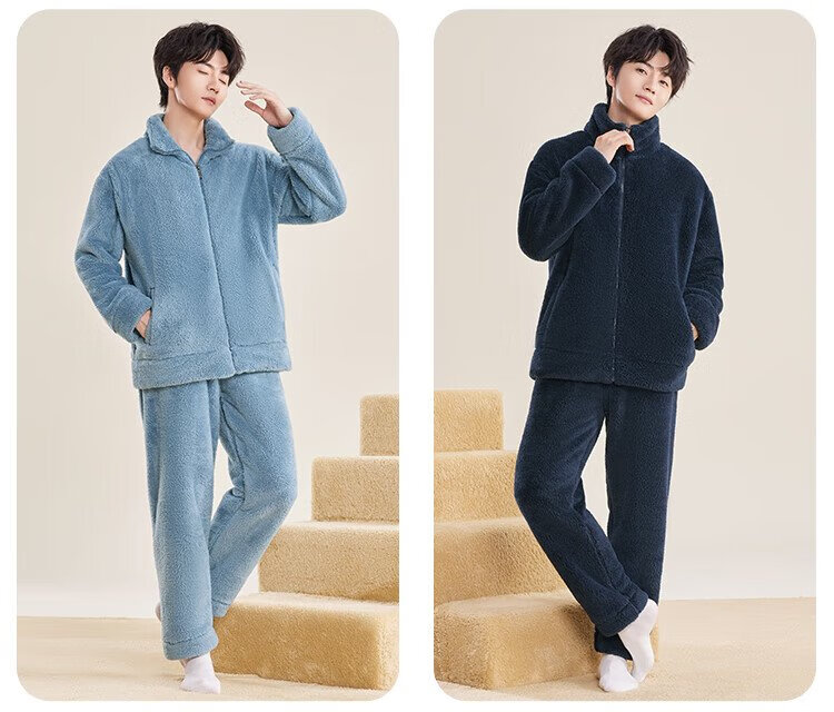 Hongdou Home Pajamas Men's Autumn and Winter Flannel Men's Home Clothes Zipper Suit Can Be Weared Outside Men - Navy Blue 170