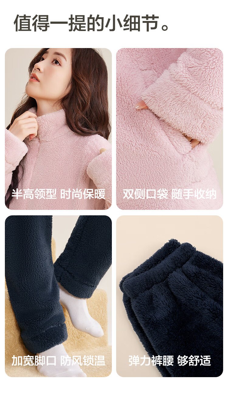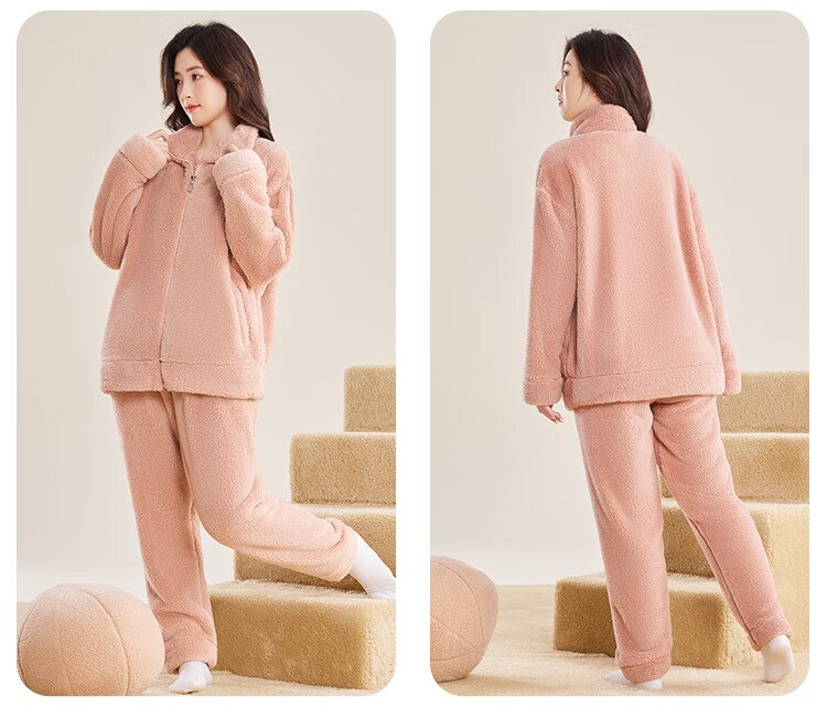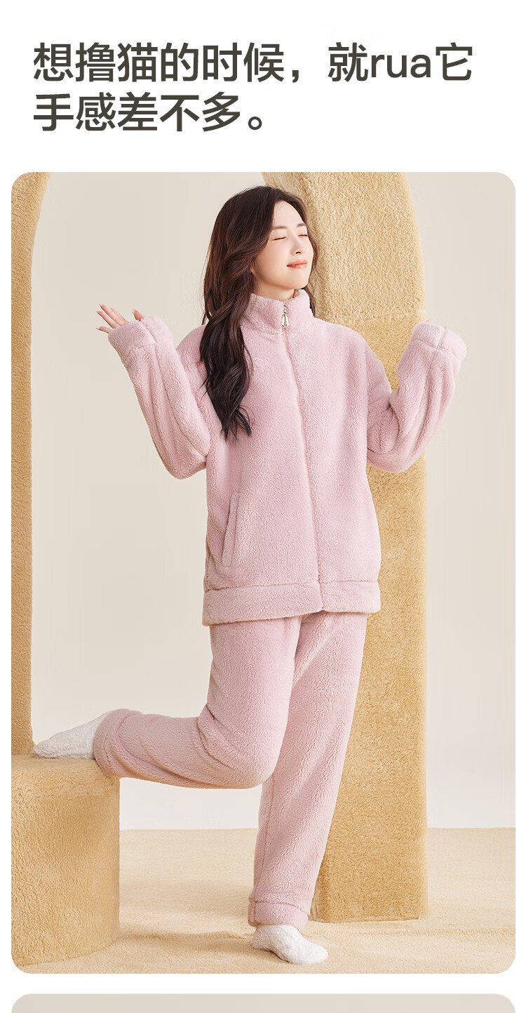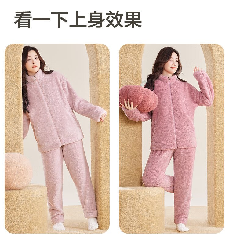Hongdou Home Pajamas Men's Autumn and Winter Flannel Men's Home Clothes Zipper Suit Can Be Weared Outside Men - Navy Blue 170