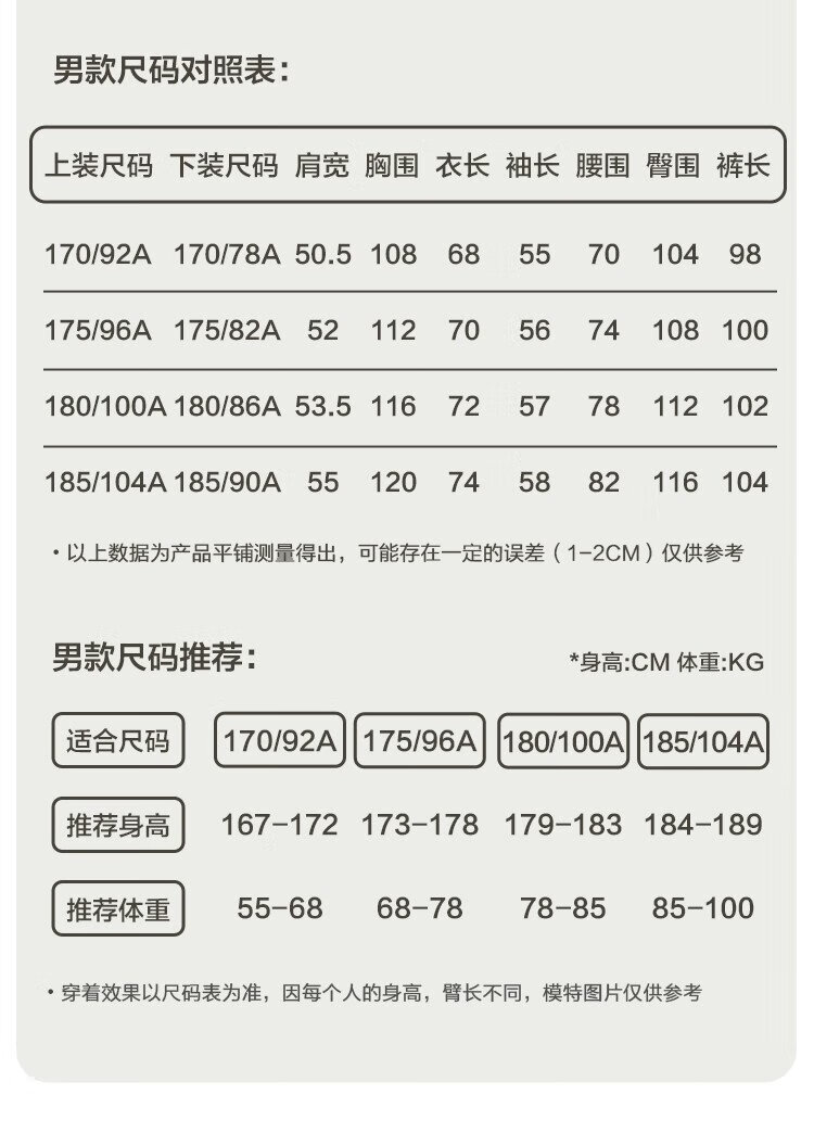 China (cm) 160-165/84-86 165-170 / 88-90 167-172 / 92-96 168-173 / 98-102 170-176 / 106-110