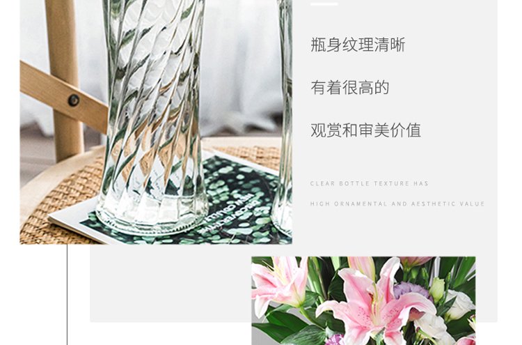 Extreme space vase glass rich bamboo large vase living room vase hydroponic container Nordic style decorative ornaments 29cm