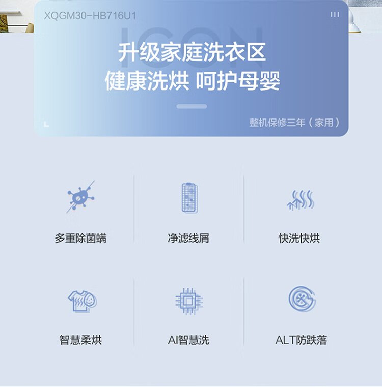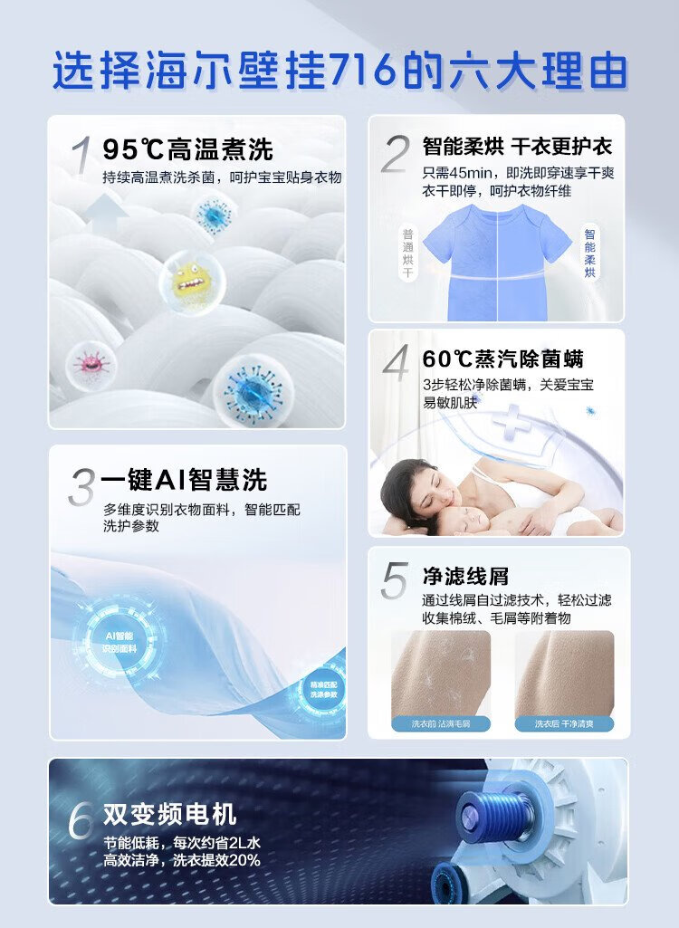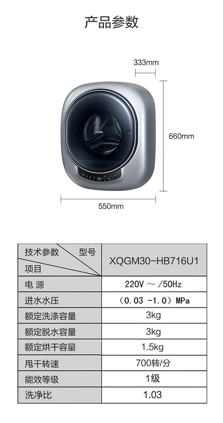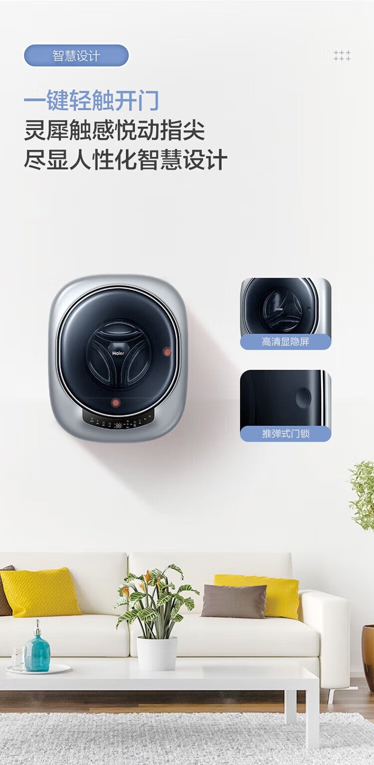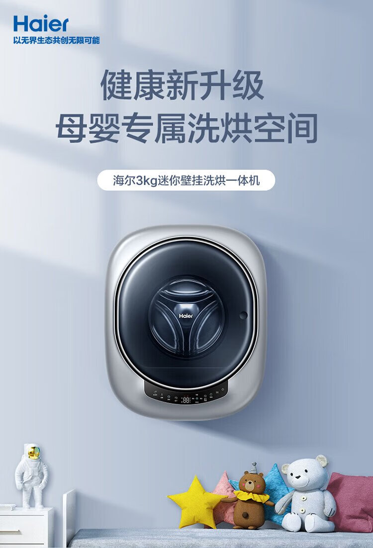 Haier wall-mounted washing machine small fully automatic underwear baby washing machine household washing and drying integrated 3KG sterilization 20% national subsidy for home appliances first-class energy efficiency Yunxi 716U1