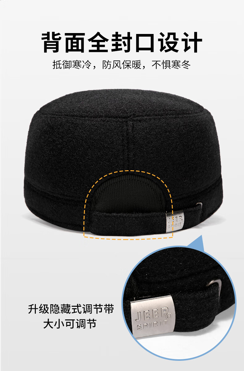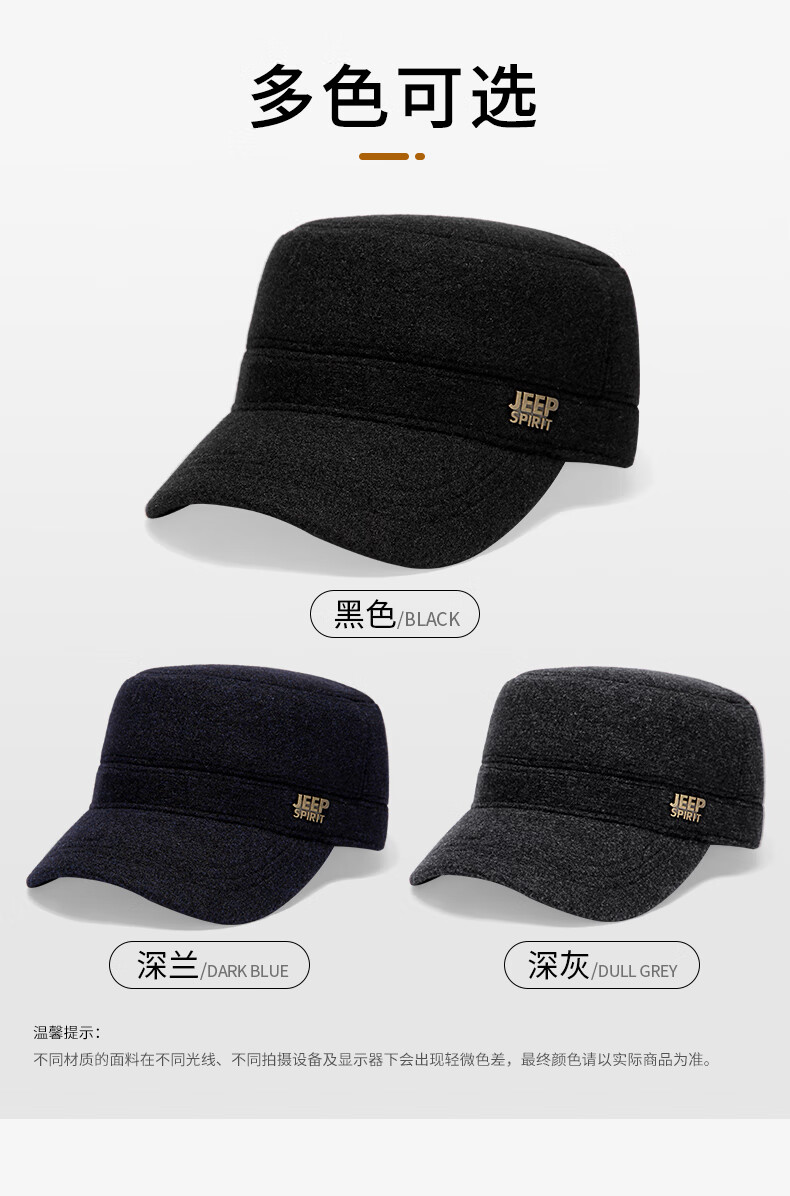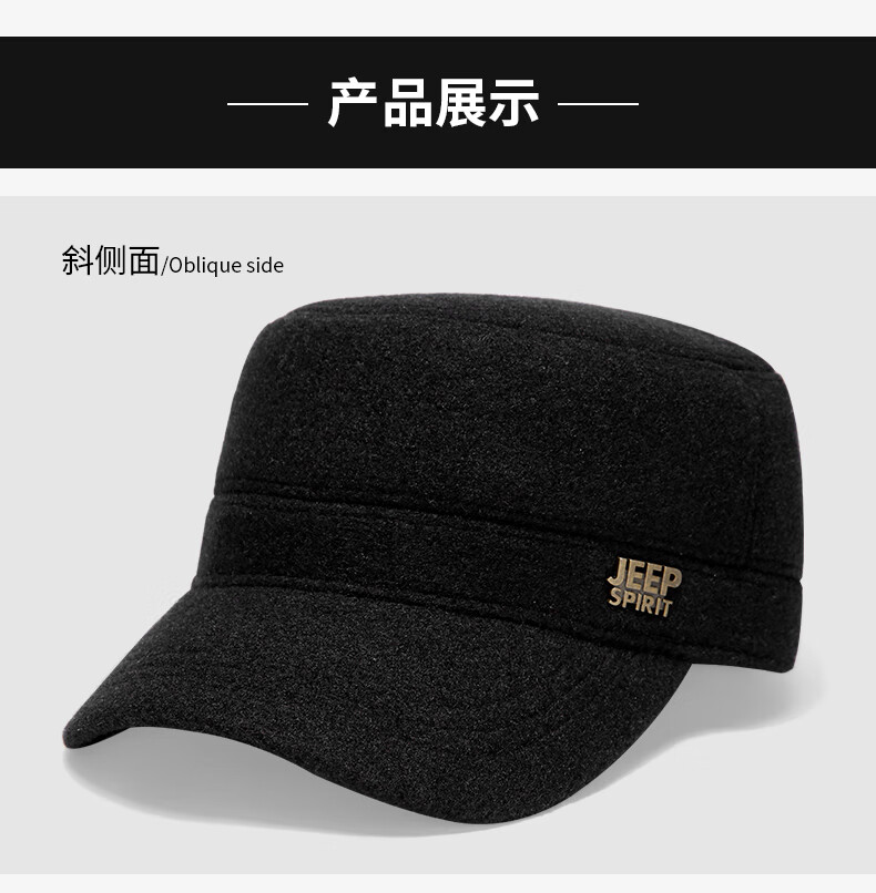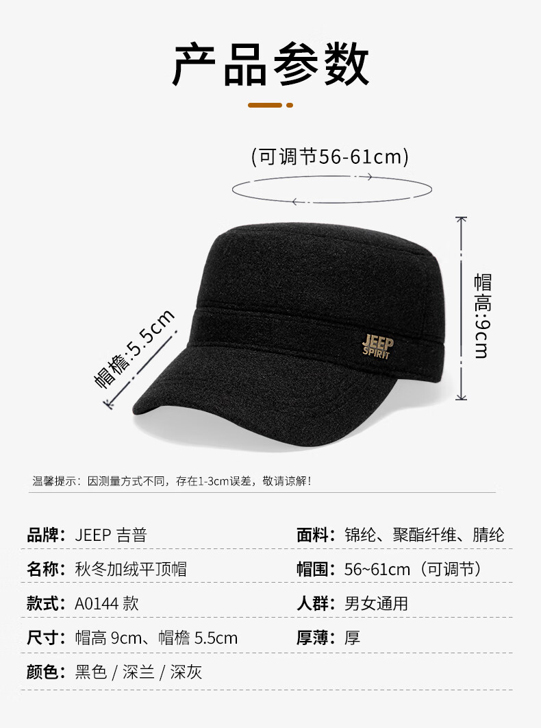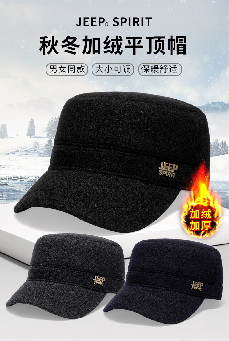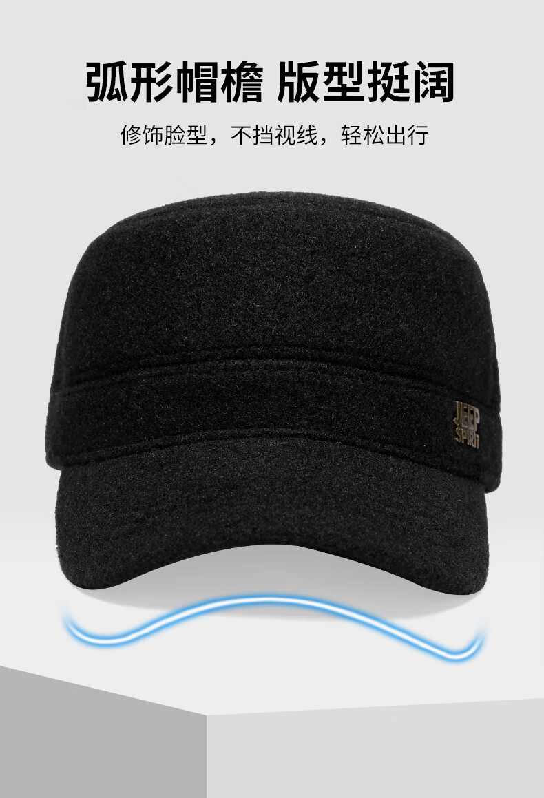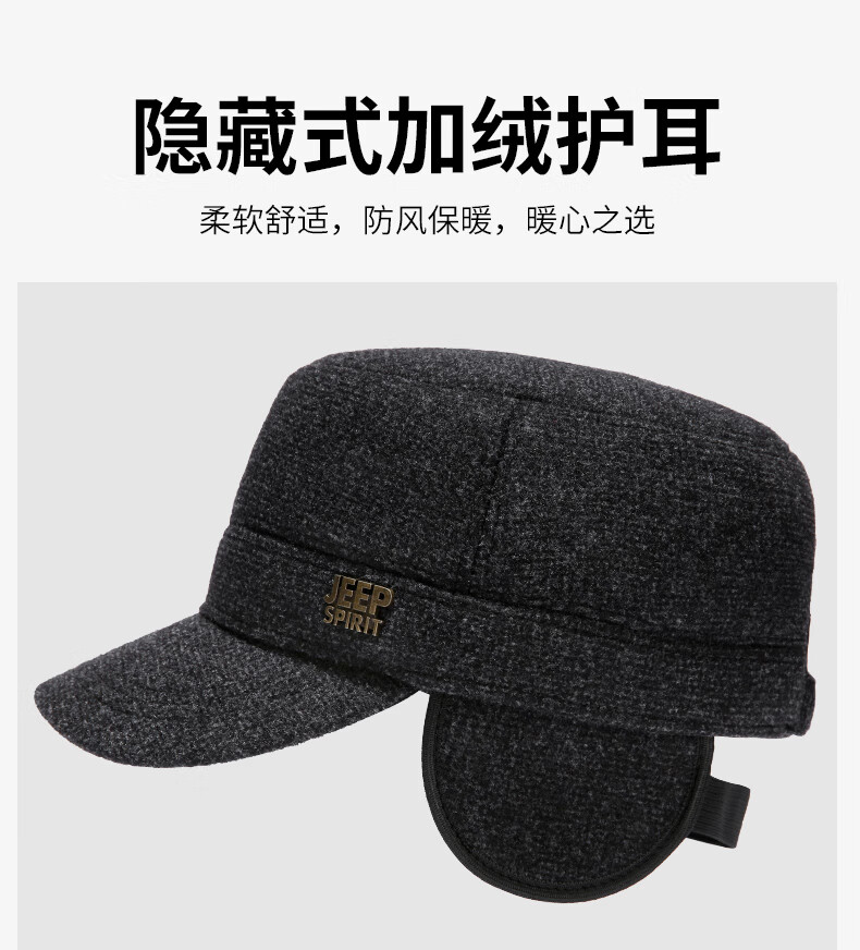 Jeep (JEEP) hat men's autumn and winter peaked cap plus velvet thickened windproof ear protection warm winter hat fashionable baseball cap A0144