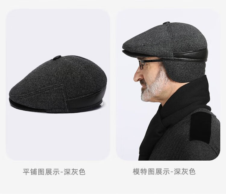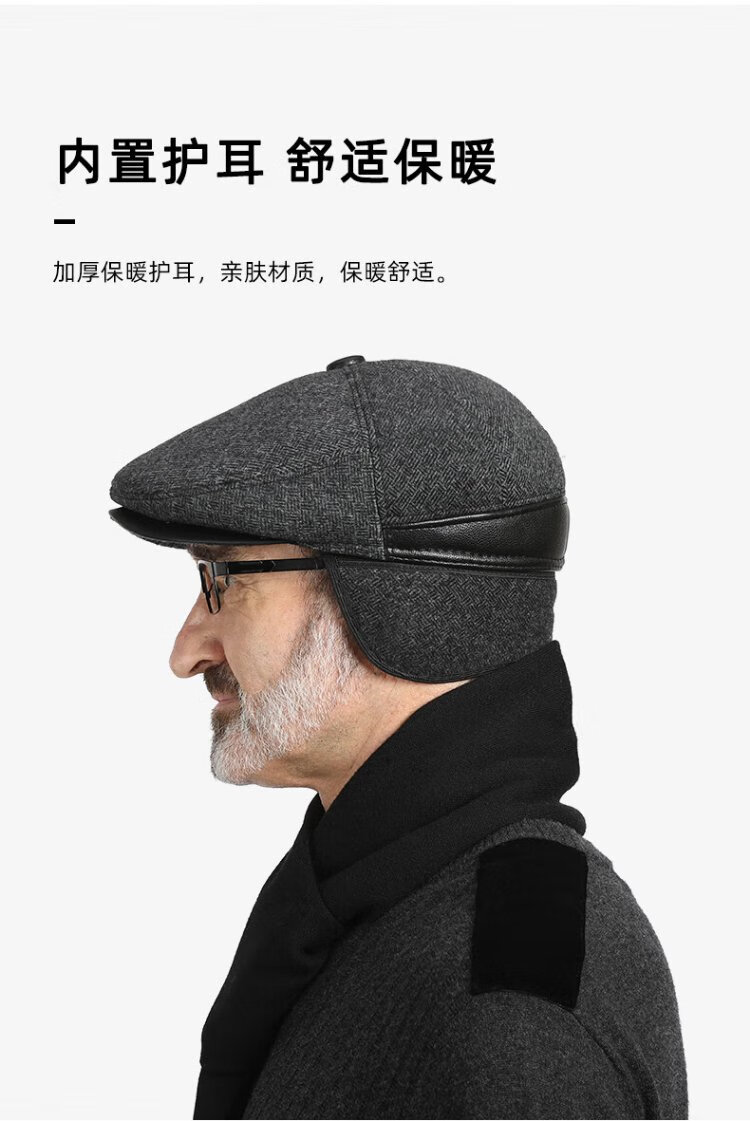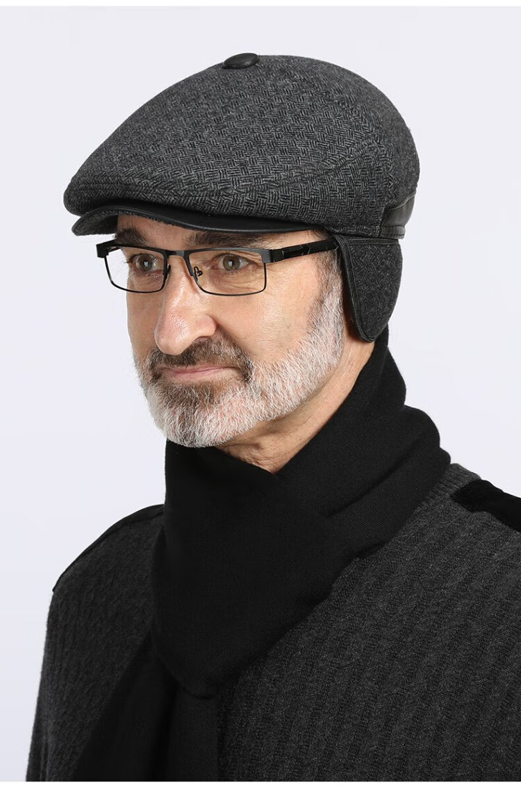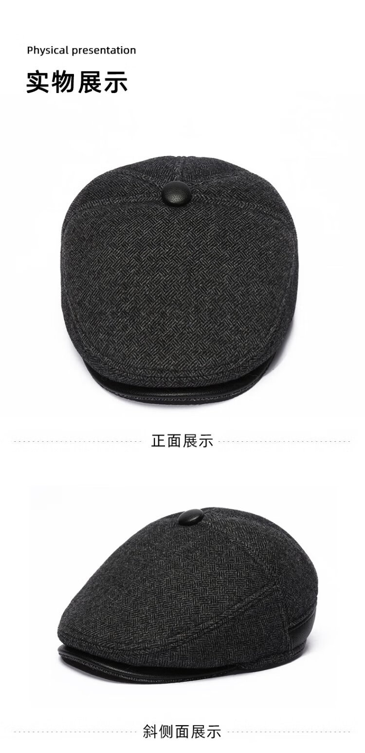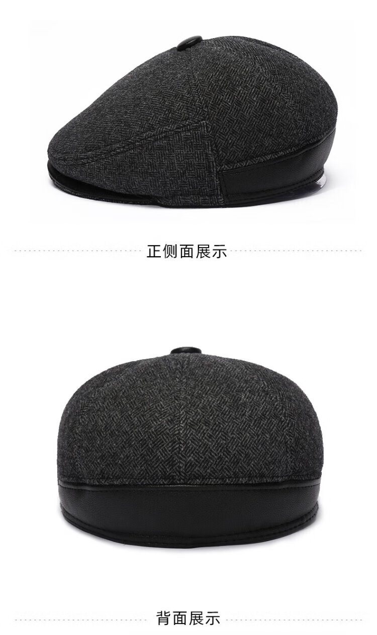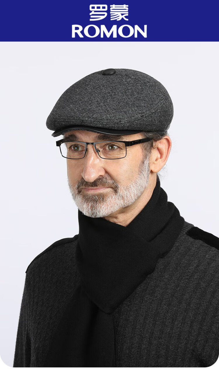 Romon Men's Autumn and Winter Forward Hat Thickened Warmth Windproof and Coldproof Belt Ear Protector Duck Bill Beret Elderly Dad Woolen Hat