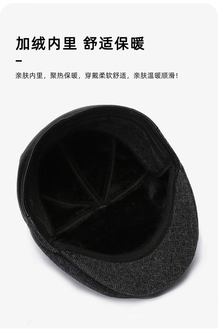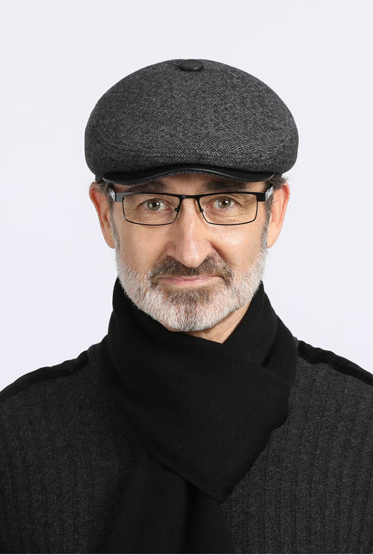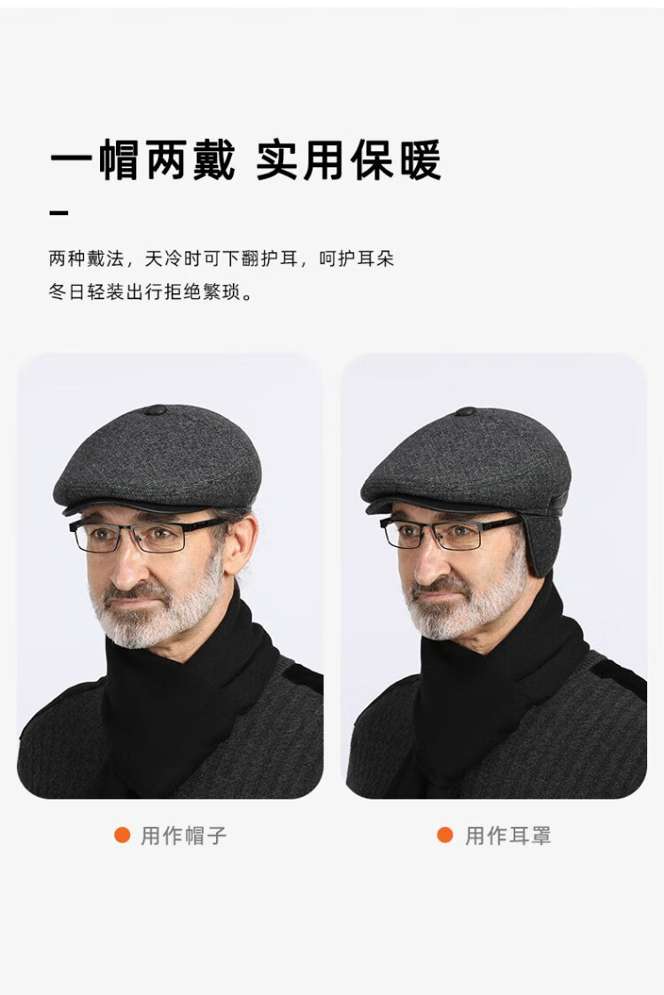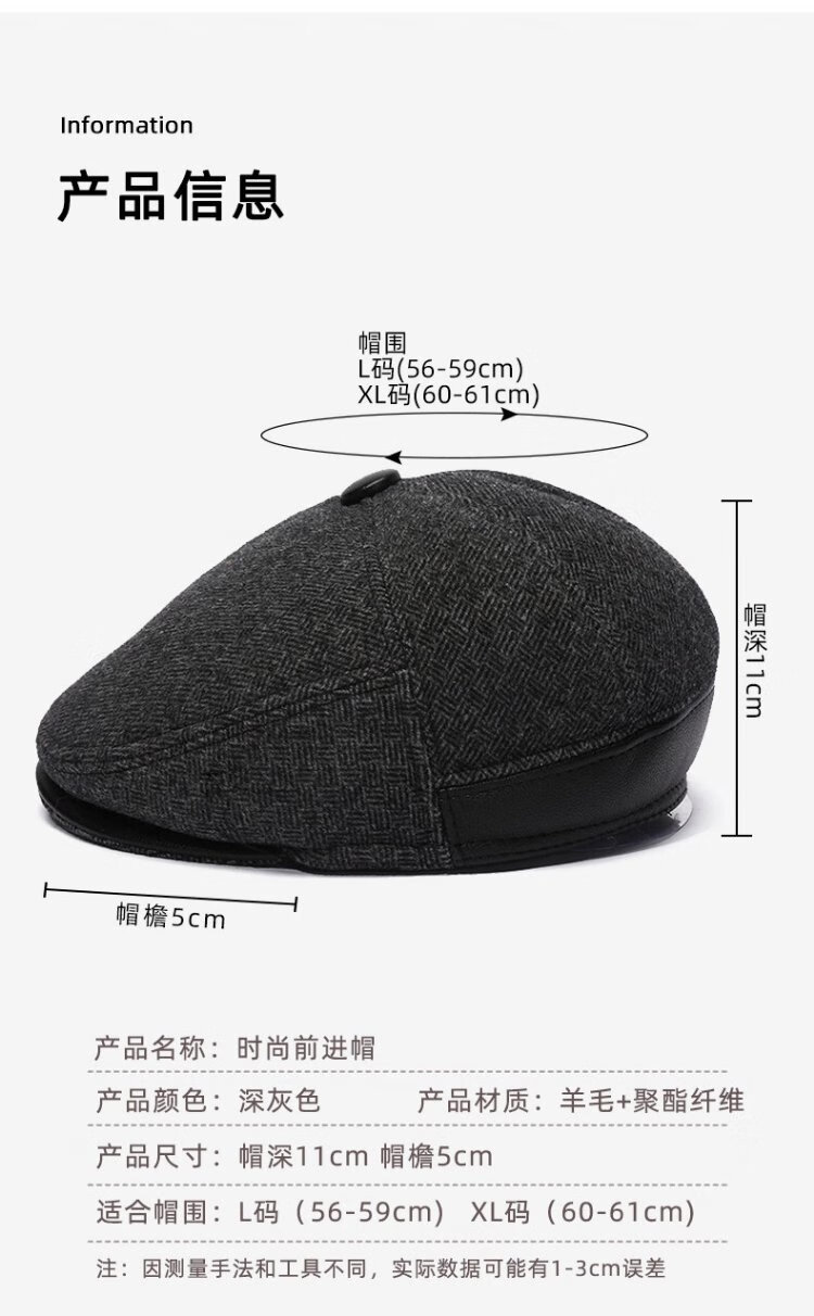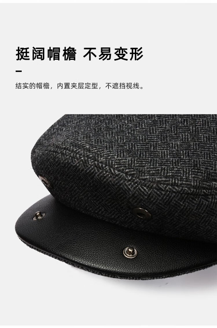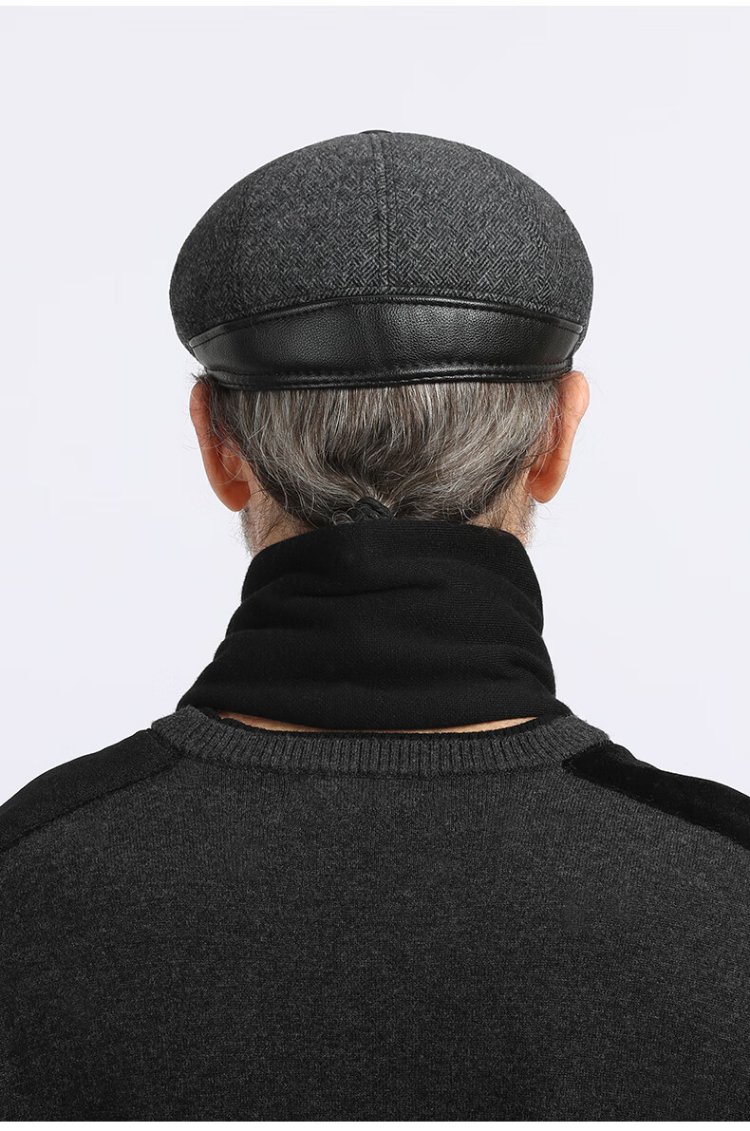 Romon Men's Autumn and Winter Forward Hat Thickened Warmth Windproof and Coldproof Belt Ear Protector Duck Bill Beret Elderly Dad Woolen Hat