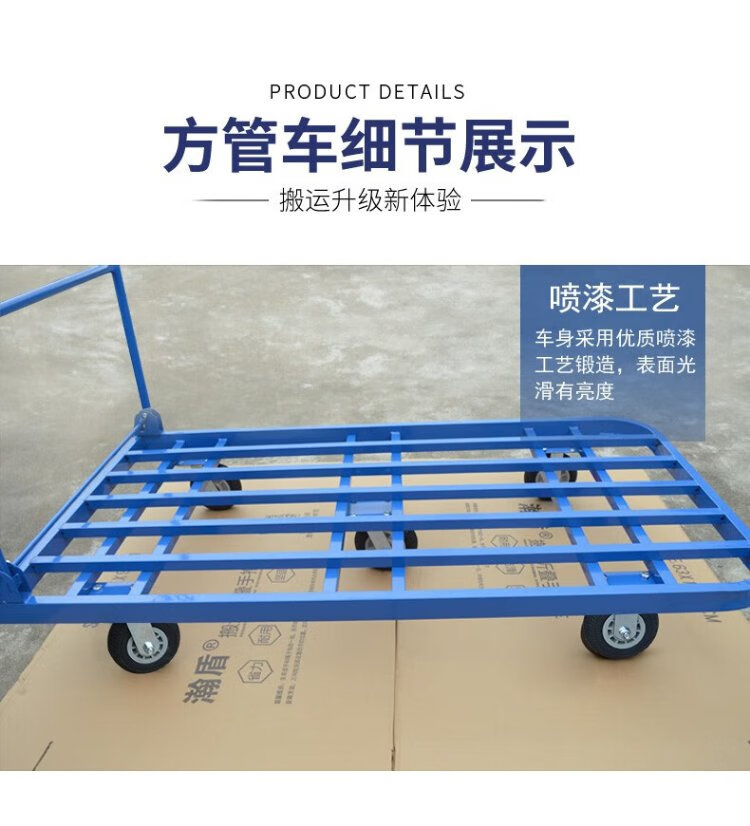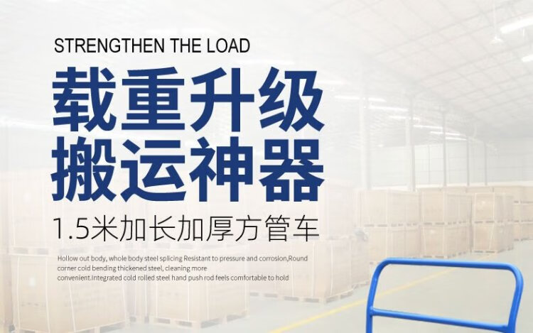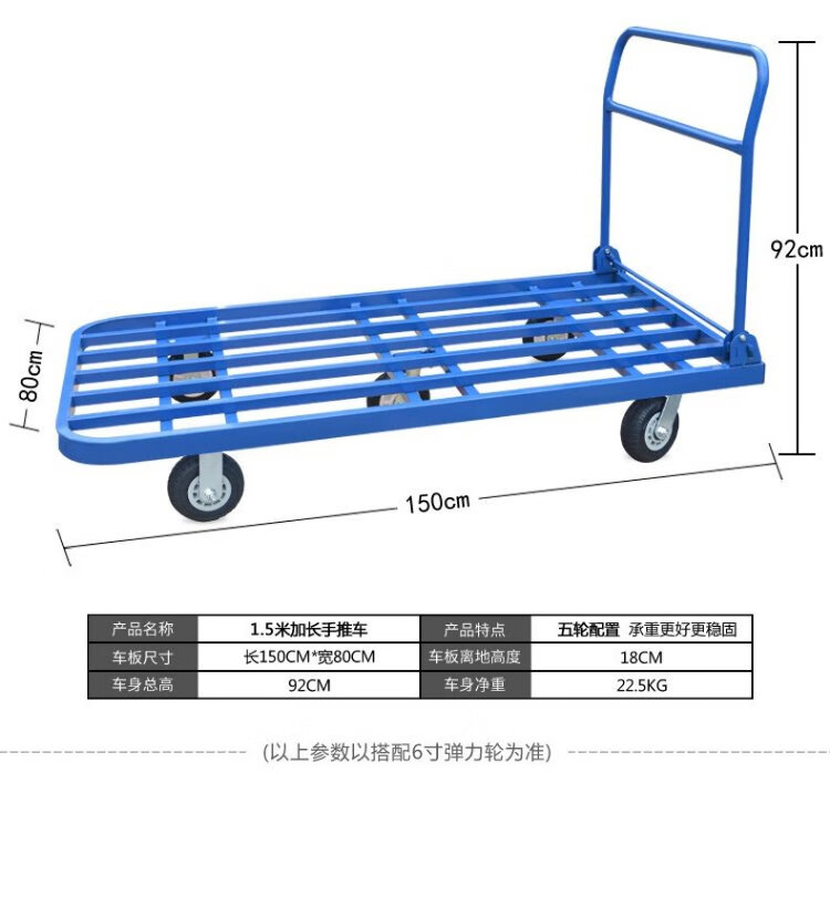 Handun 1.5m extended trolley flatbed trailer pull truck steel tube folding push truck small trolley transport truck 150*80 with heavy-duty rubber wheels