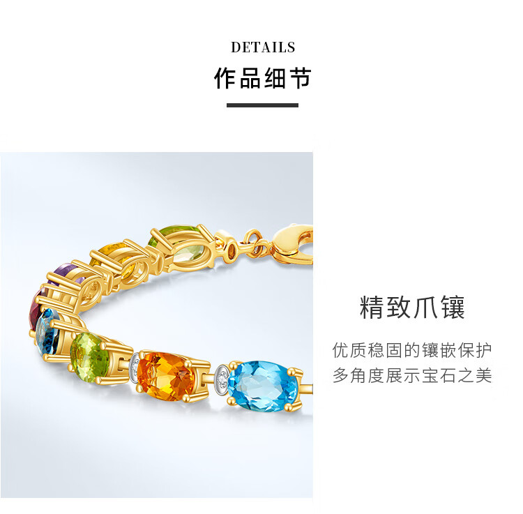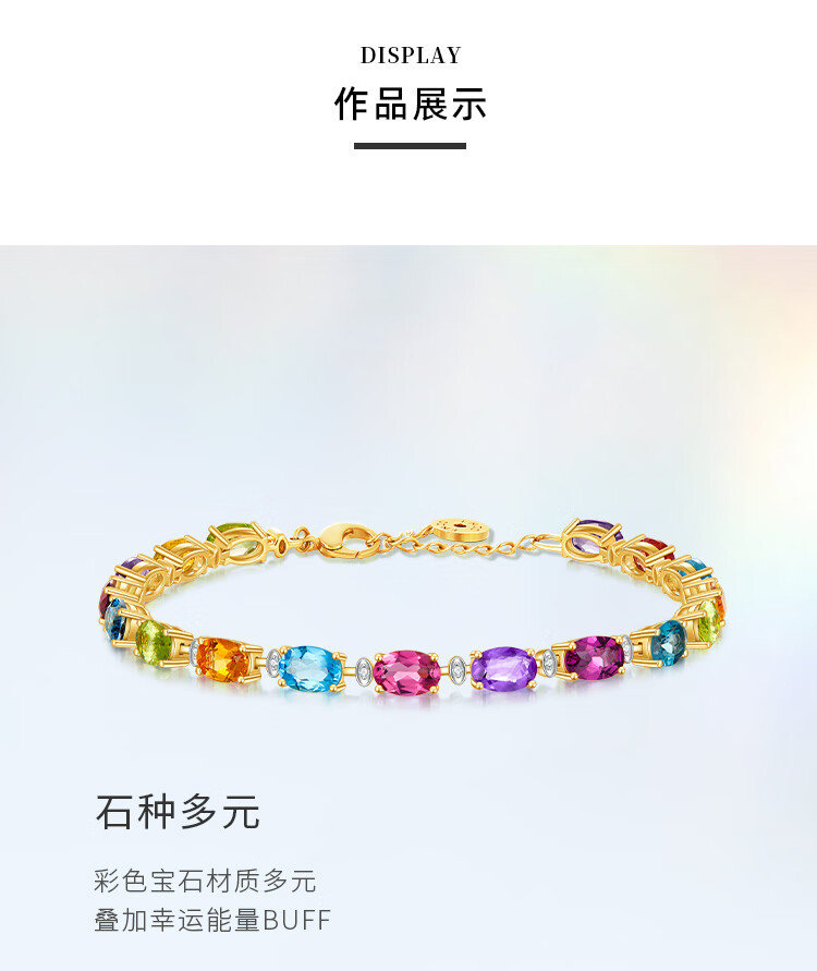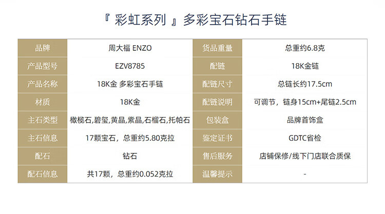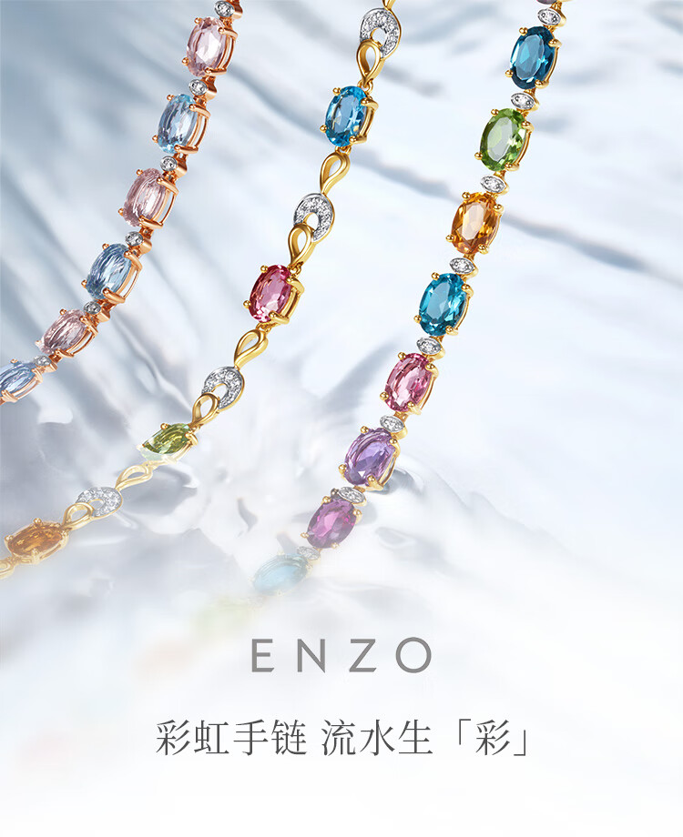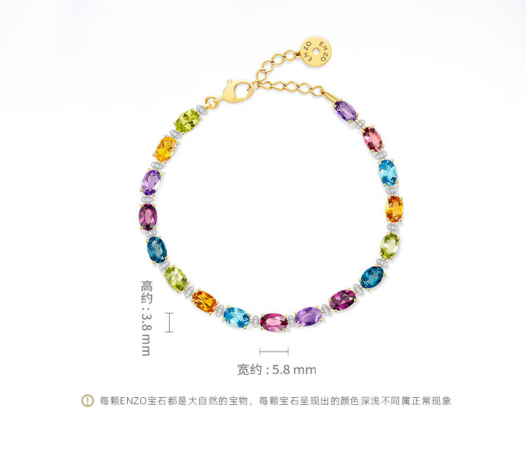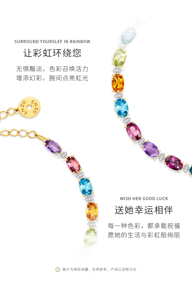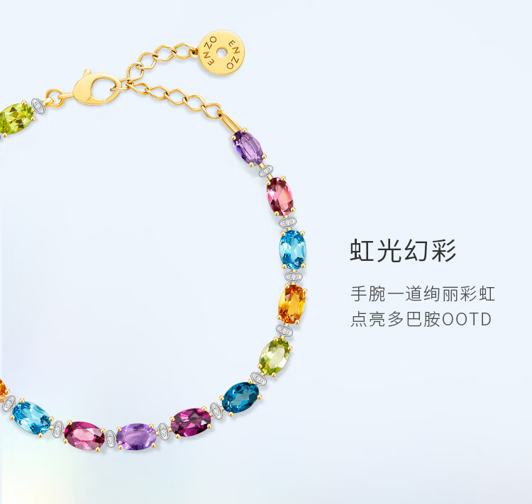 Chow Tai Fook ENZO Rainbow Pledge 18K gold set with colorful gemstones and diamond bracelet EZV8785 17.5cm