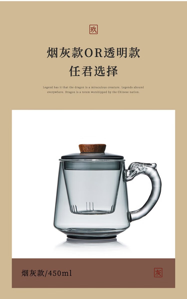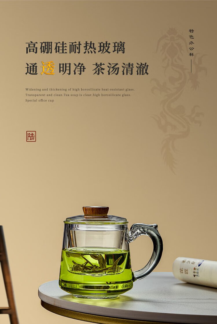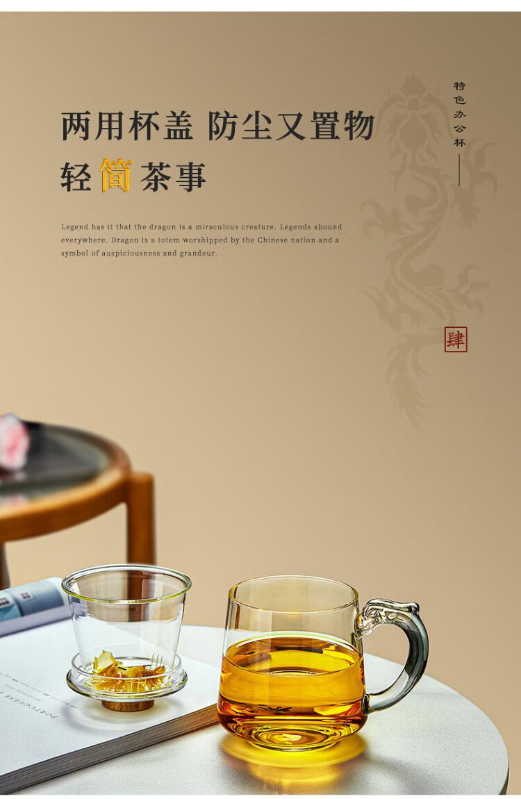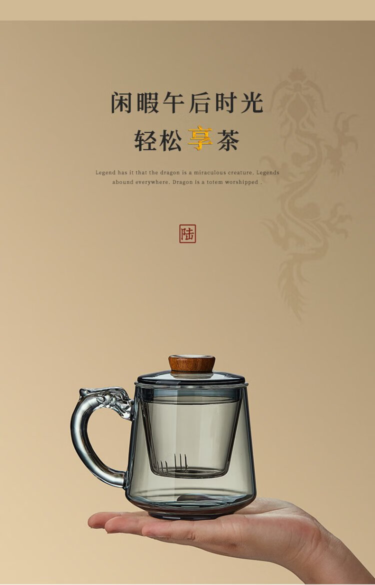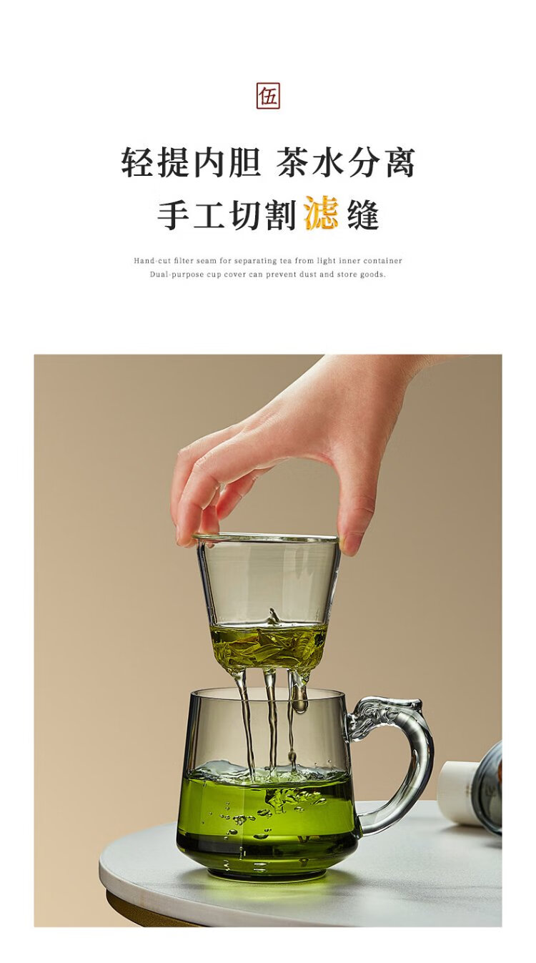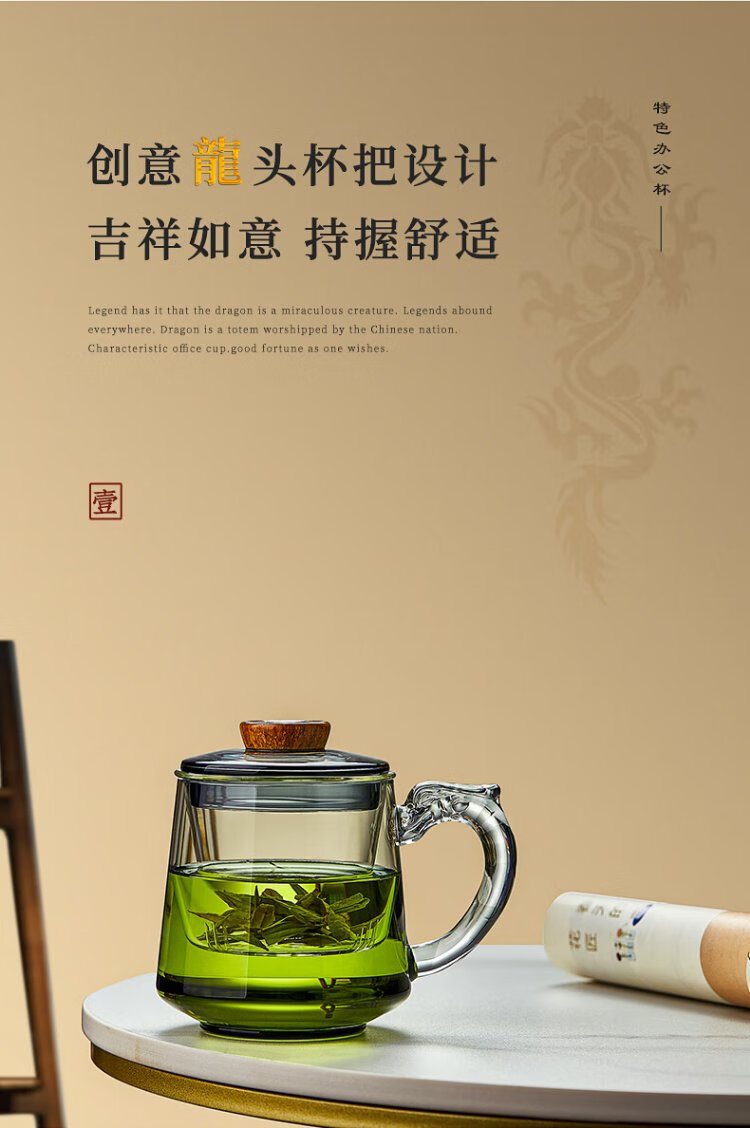 Yipot Tea Dragon Cup Tea Cup Men's Special Tea Water Separation Glass Cup with Filter Tea Ceremony Cup Teacher's Day Gift