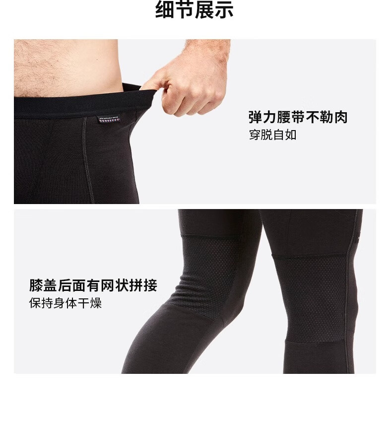 Decathlon suppresses odor, perspires and breathes Merino wool autumn and winter men's warm trousers MT500 sheep wool XL2485010