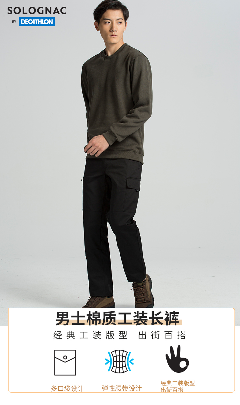 Decathlon camouflage pants men's overalls trousers loose and versatile SOL black L 1272201